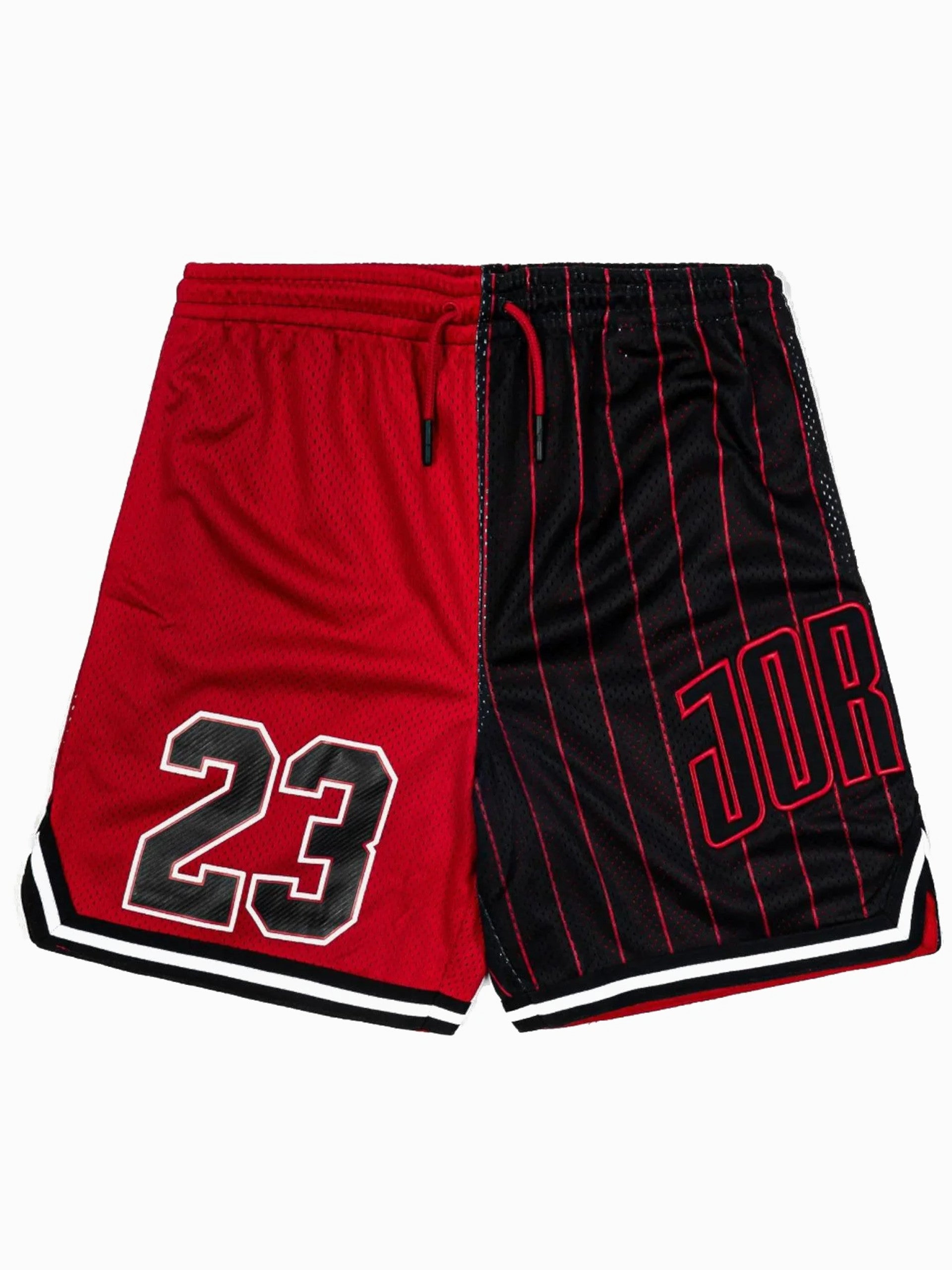 Pantaloncini Jordan basket neri e rossi da bambino maxi patch 95D957. Questi bermuda Jordan bambino hanno la banda elastica sul punto vita regolabile con laccetti, due tasche laterali aperte e il maxi patch Jordan applicato sul davanti.