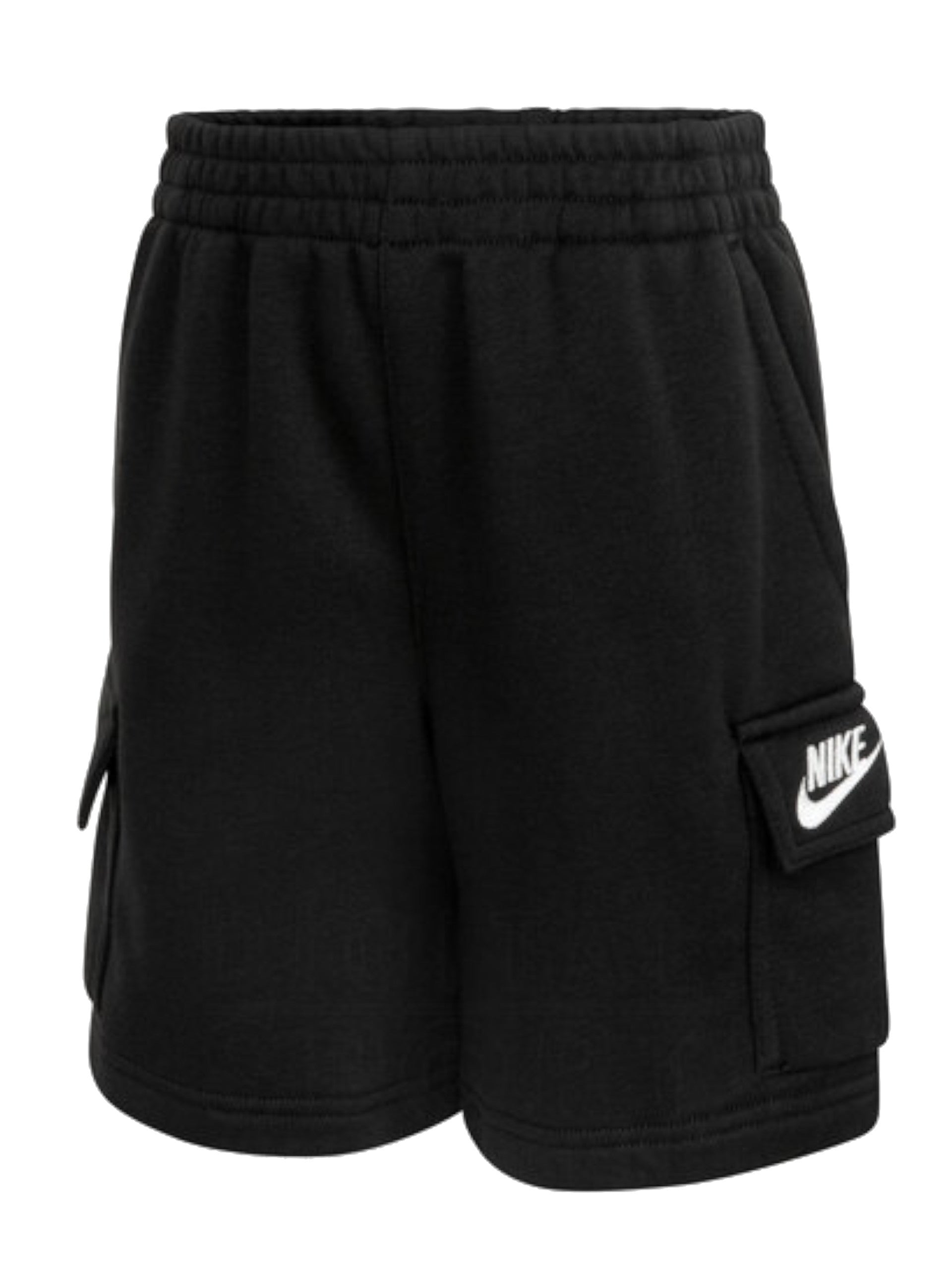 Pantaloncini Nike cargo da bambino con logo ricamato 86M212, realizzati in cotone. Questi bermuda Nike hanno la banda elastica sul punto vita regolabile con laccetti, due tasche laterali aperte, due tasconi cargo e il logo Nike ricamato.