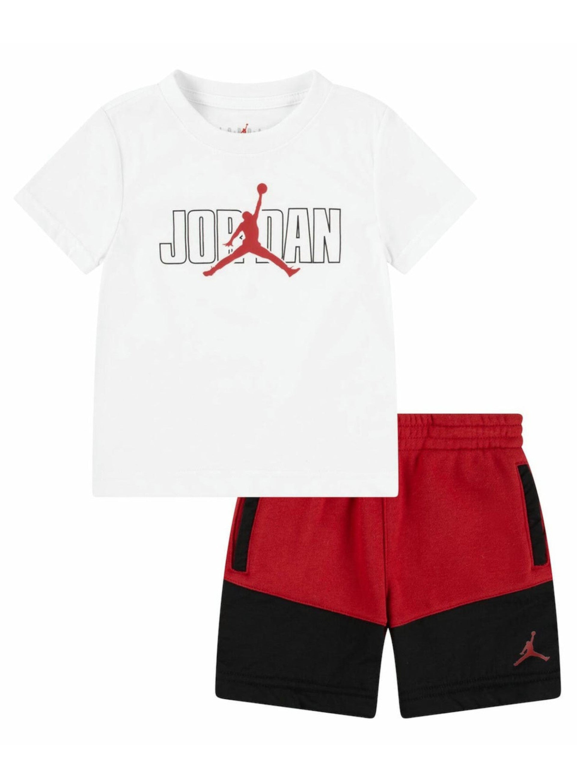 Completo Jordan bianco e rosso da bambino con bermuda 85D767