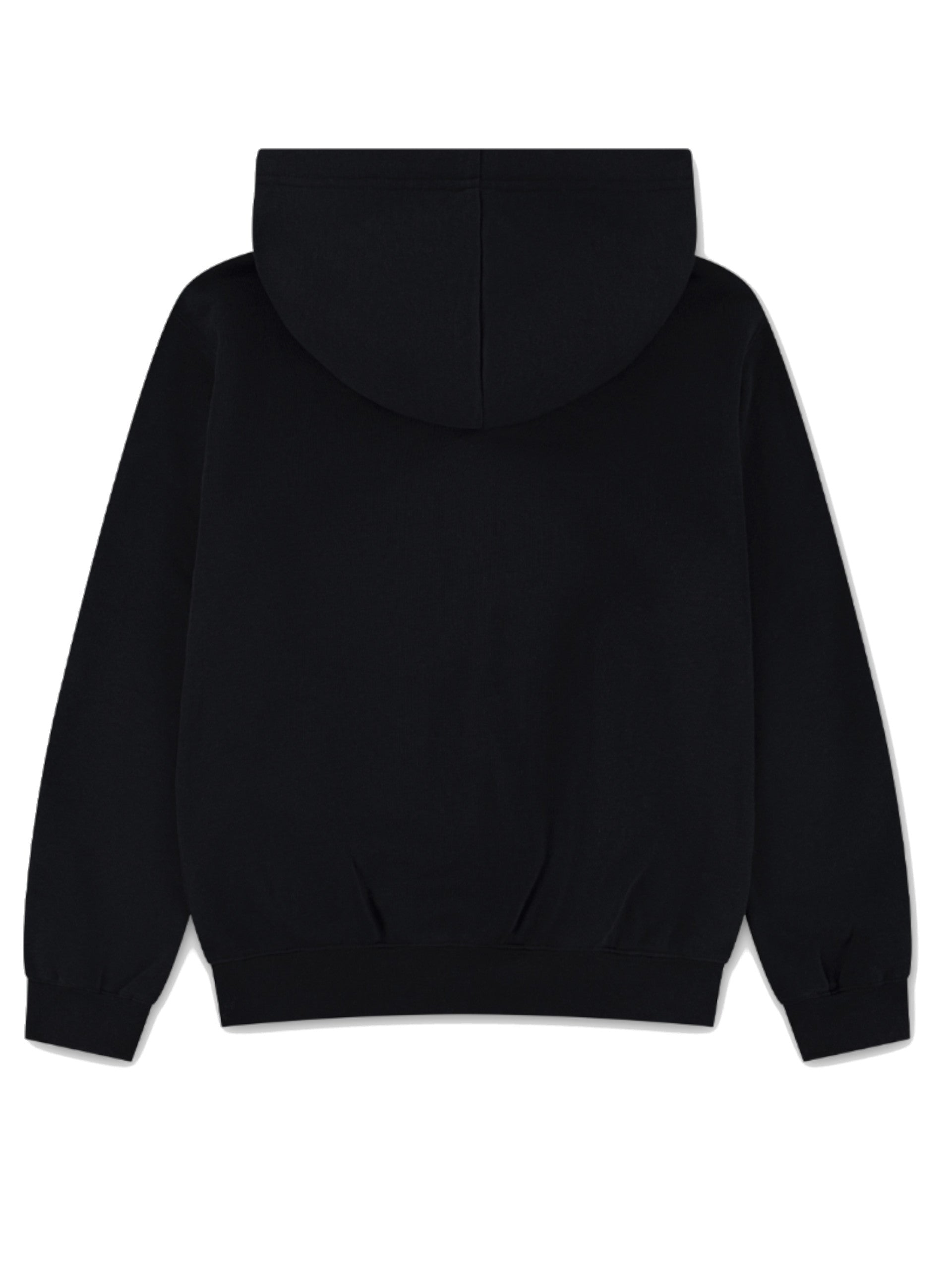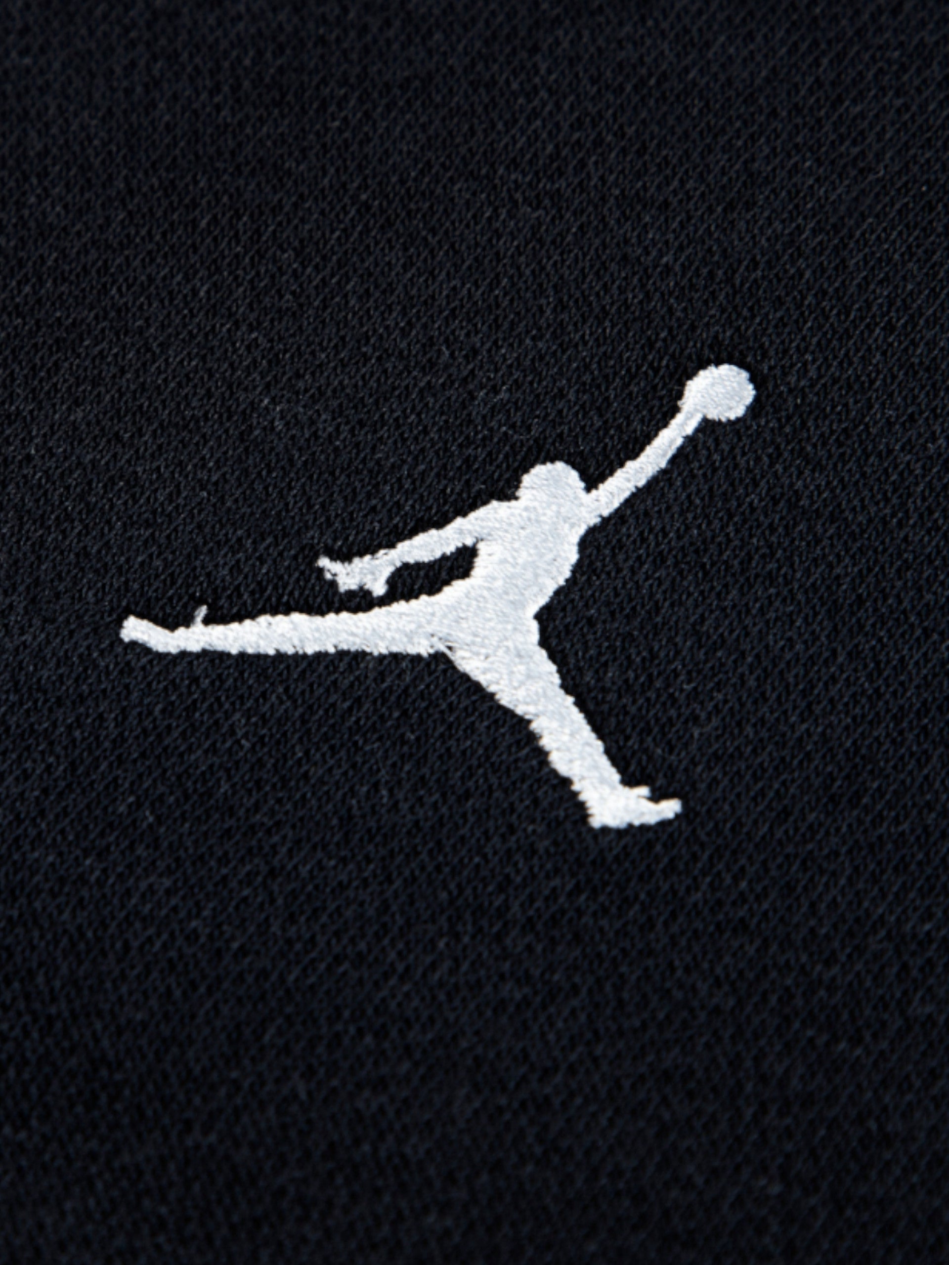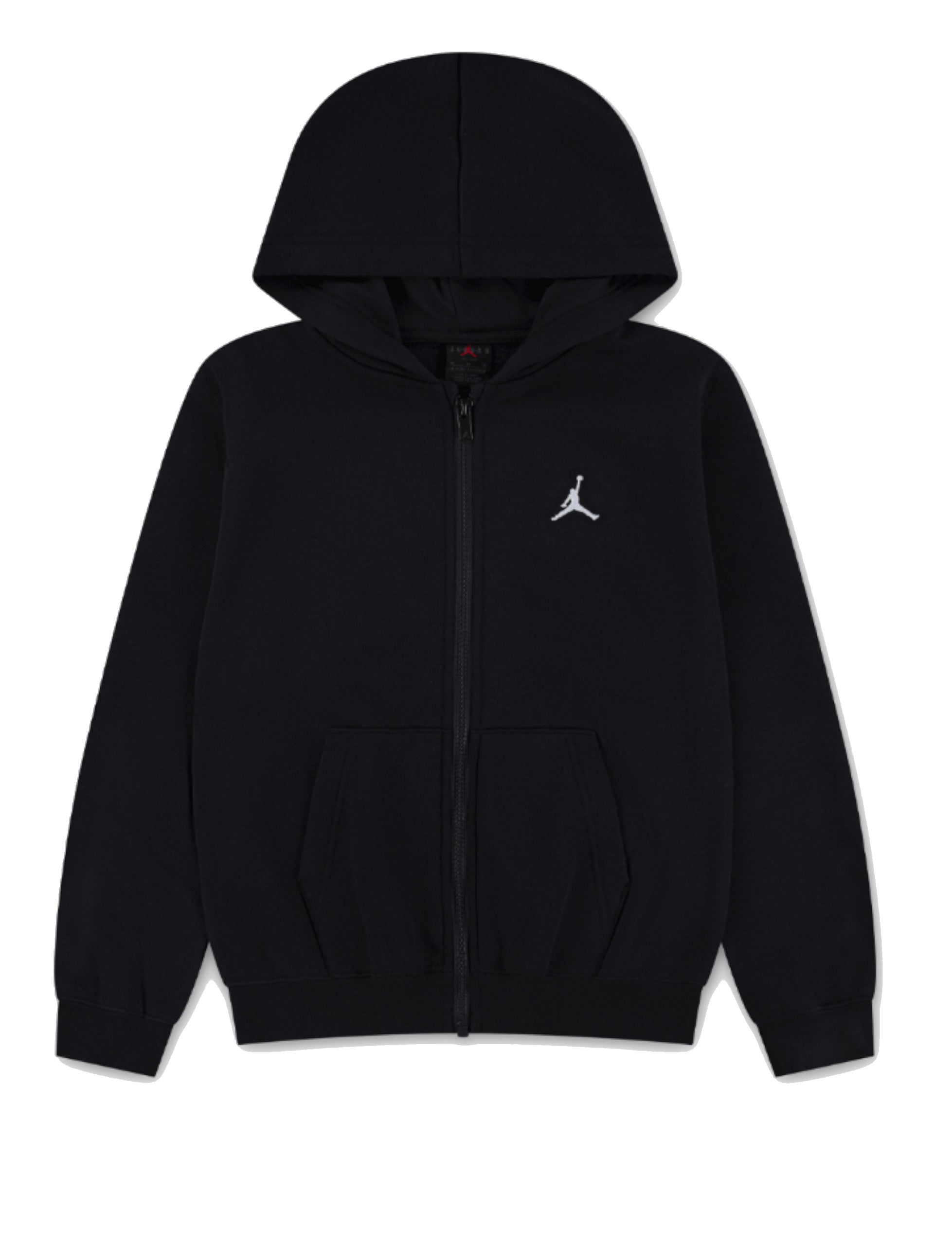 Felpa Jordan nera da bambino Hoodie. Questa felpa da bambino, realizzata in cotone, è caratterizzata dal cappuccio fisso, chiusura centrale full zip, due tasche laterali aperte a marsupio, logo Jordan applicato a lato cuore, polsini e fondo a costine elasticizzati