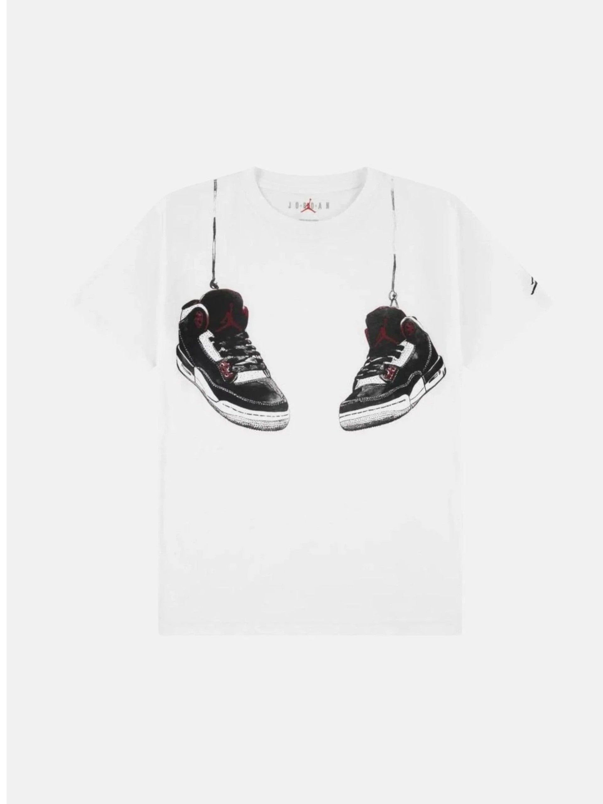 T-shirt Jordan bianca da bambino con stampa AJ3 Shoe Strings 95F483001