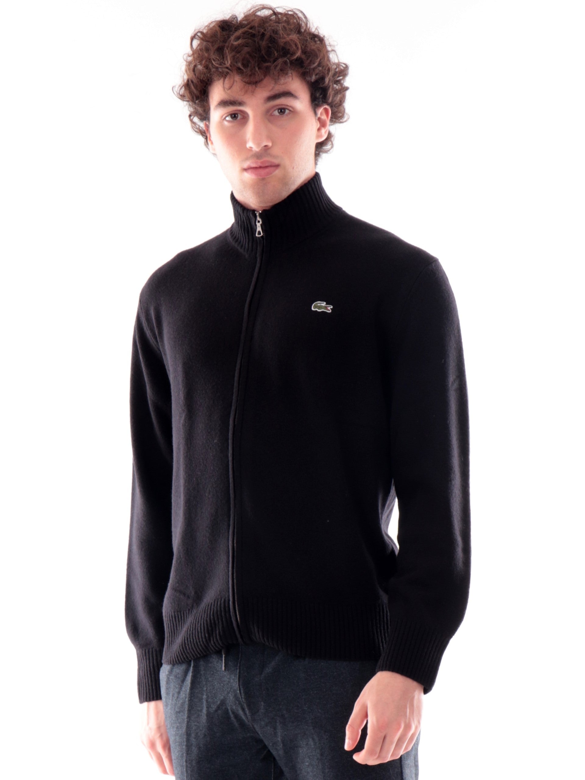 Maglione mezza zip Lacoste nero da uomo AH5181031