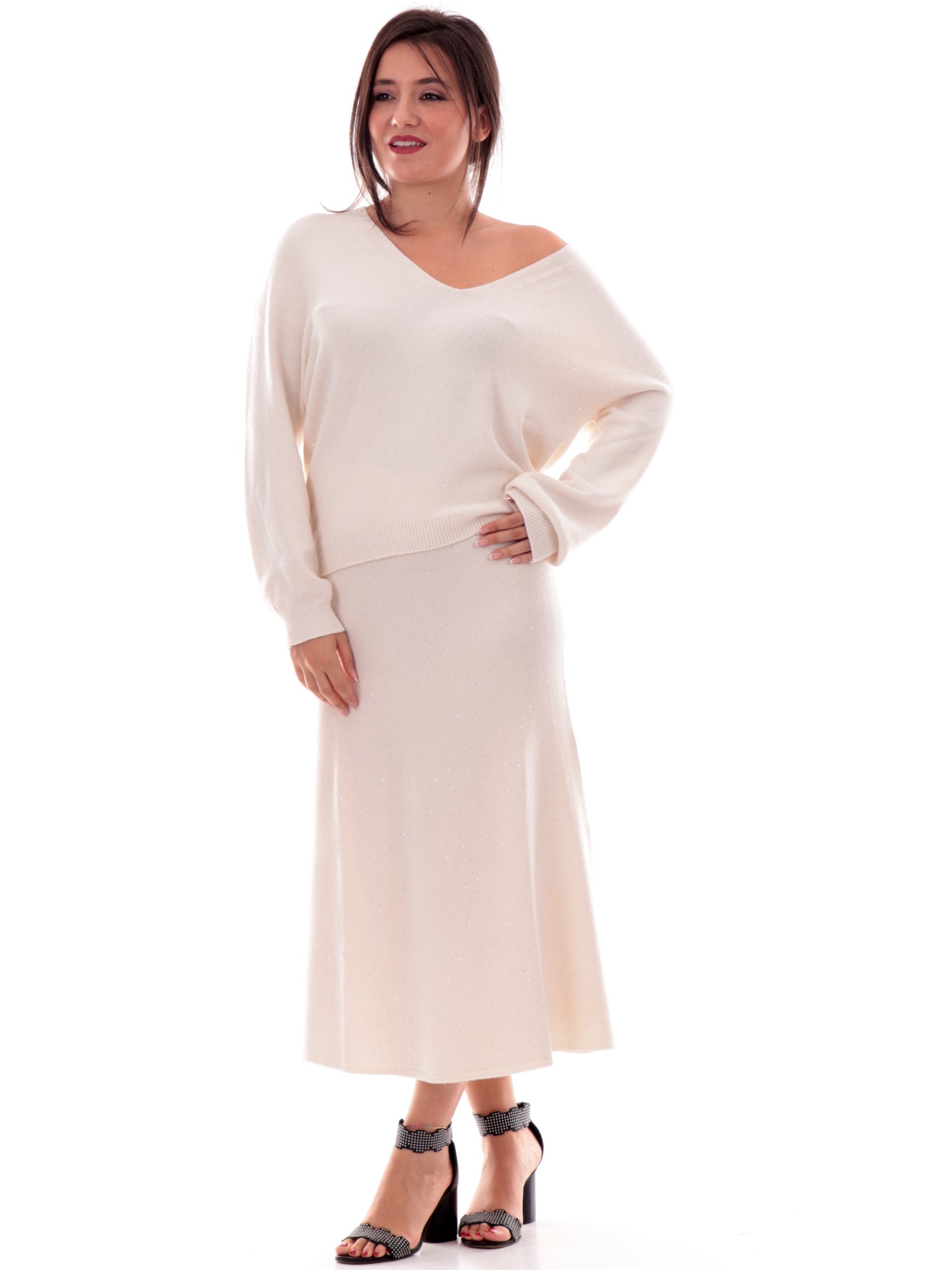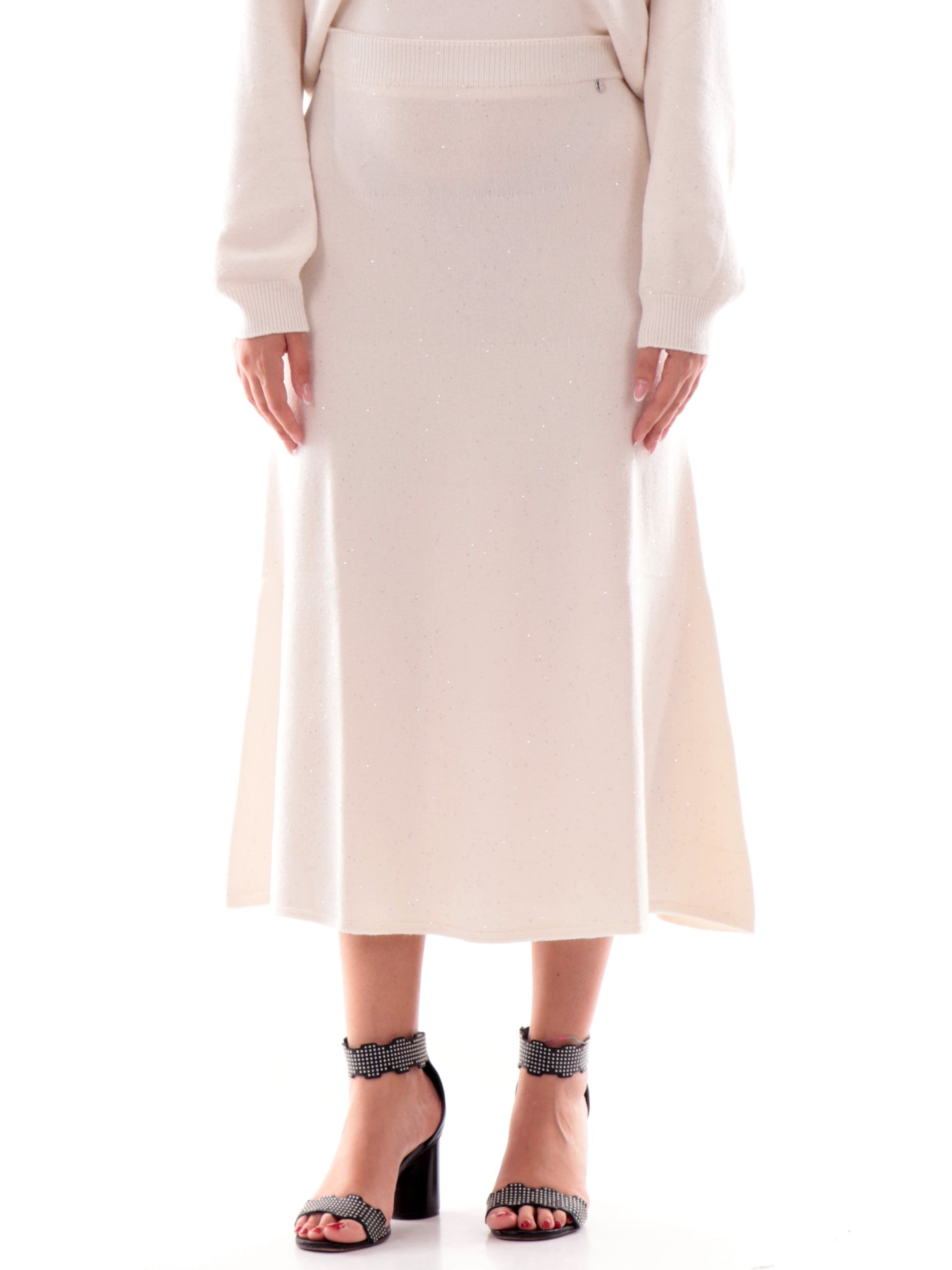 Gonna Liu Jo bianca in maglia da donna Longuet con paillettes MF5295MA27R