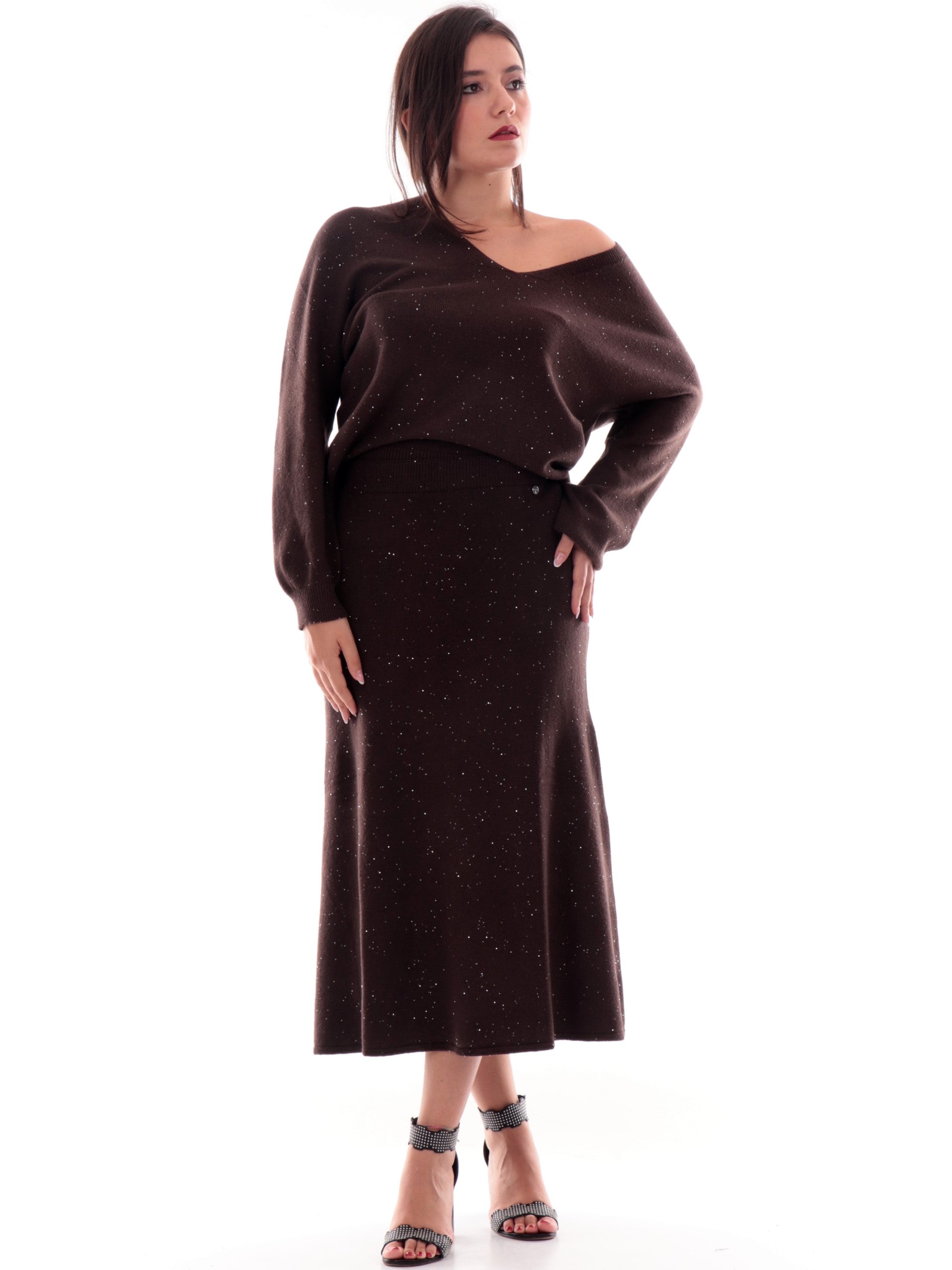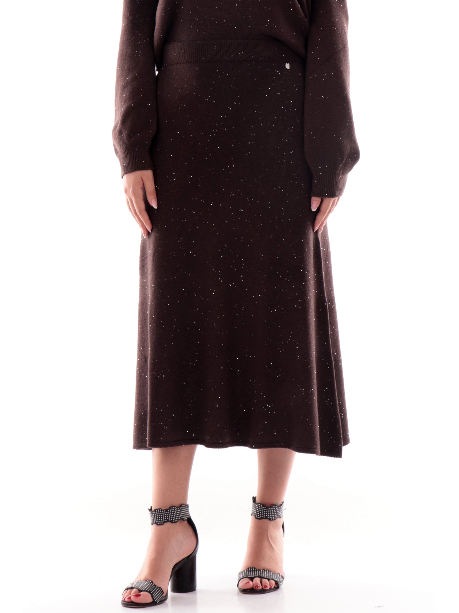 Gonna Liu Jo marrone in maglia da donna Longuet con paillettes MF5295MA27R