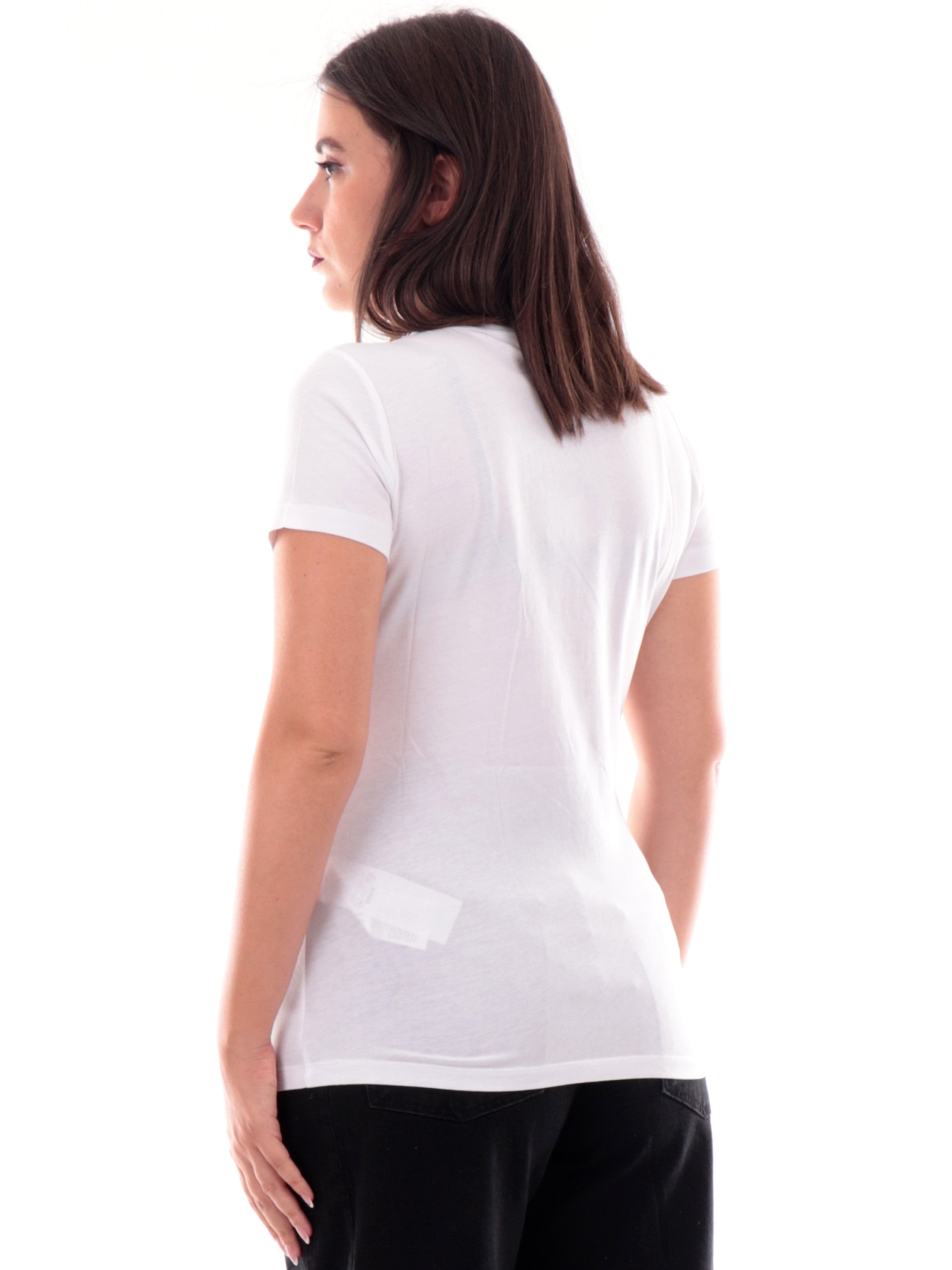 T-shirt Liu jo Bianca da donna realizzata in morbido cotone elasticizzato con logo argento e nero strass. Questa maglia Liu Jo donna è una basic tee perfetta da abbinare come vuoi.