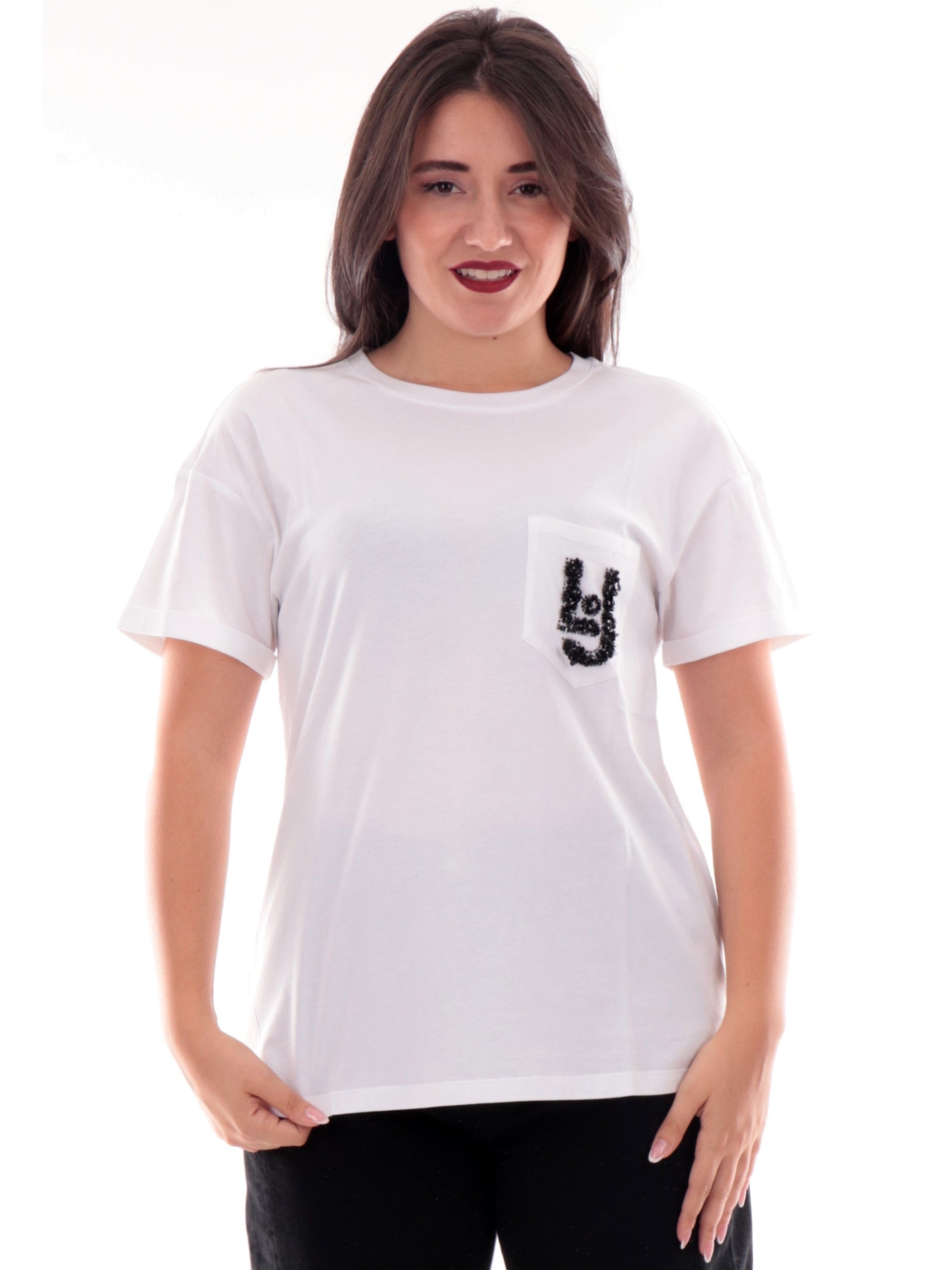 Maglia Liu jo bianca da donna con taschino UF5257JS904M978