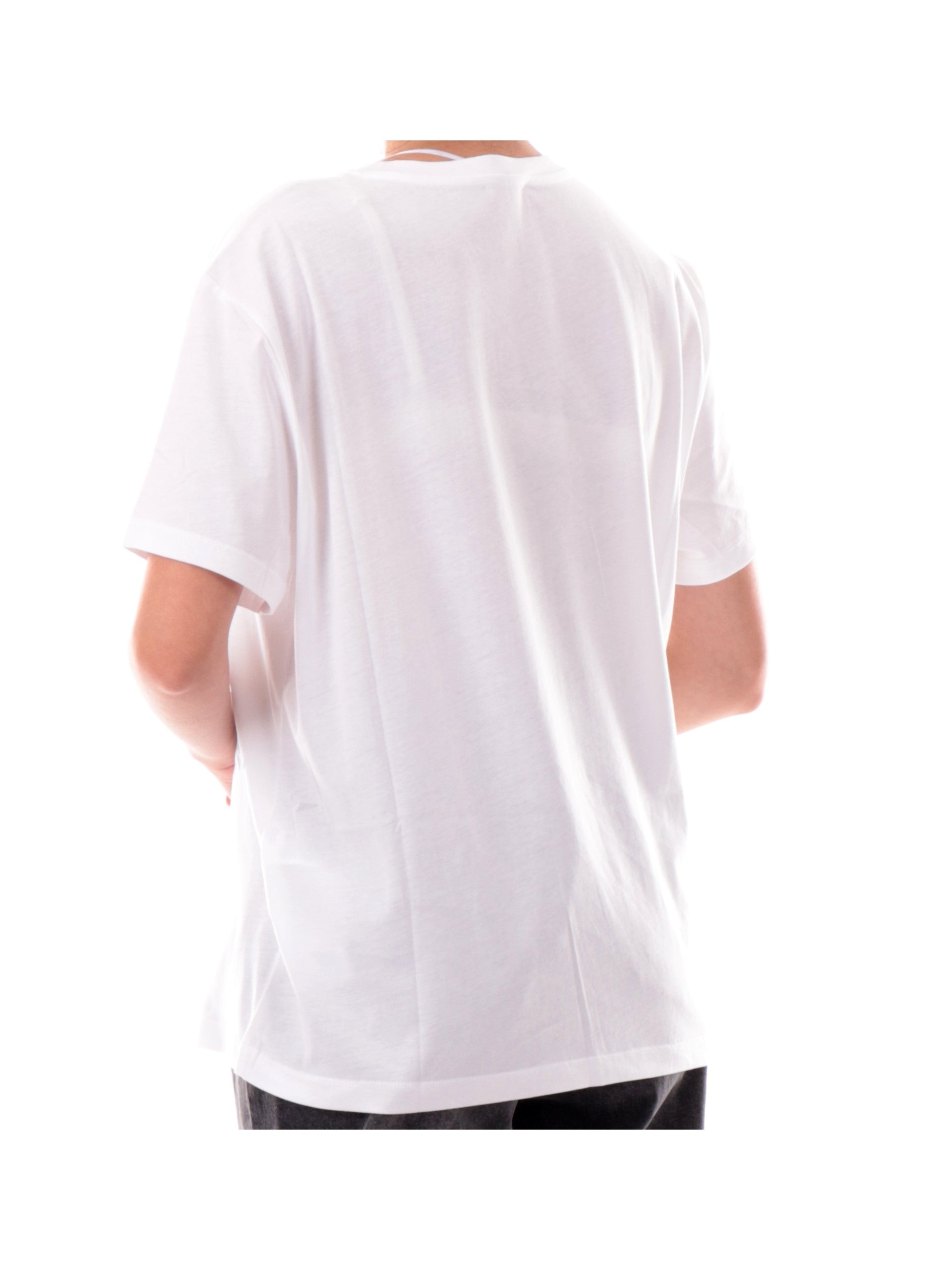 Maglia Liu Jo bianca da donna girocollo stampa strass e paillettes MF5345JS923, realizzata in 100% puro cotone. Questa t-shirt Liu Jo bianca girocollo ha le maniche corte e la stampa del brand sul davanti con strass e paillettes.