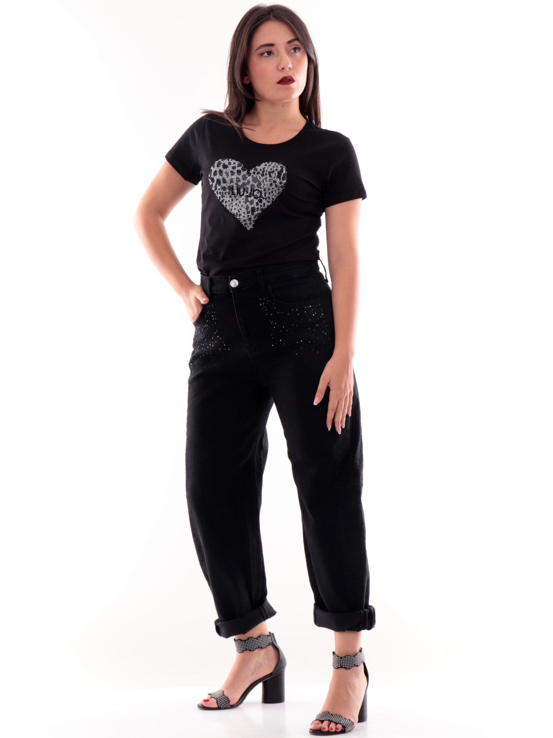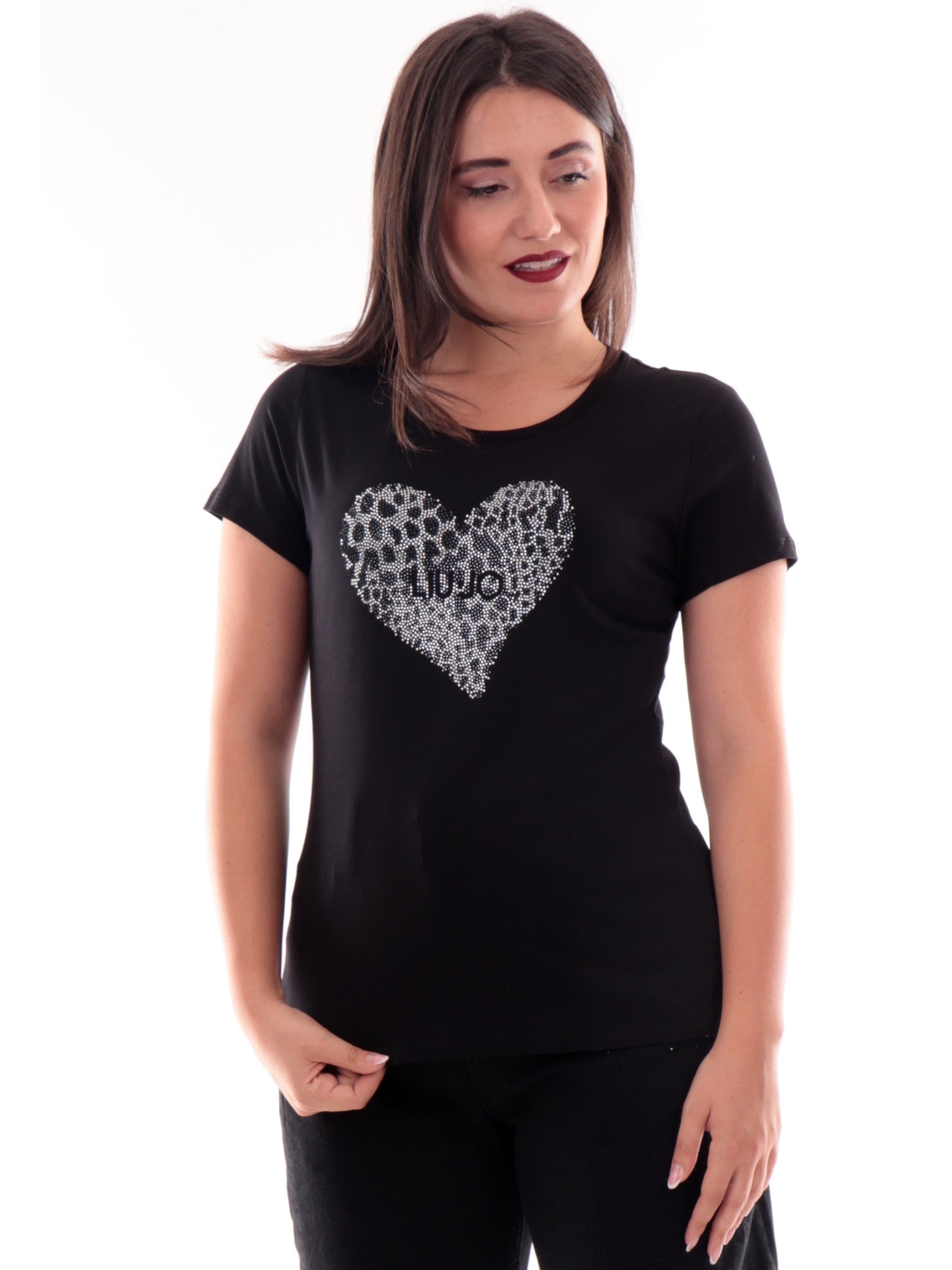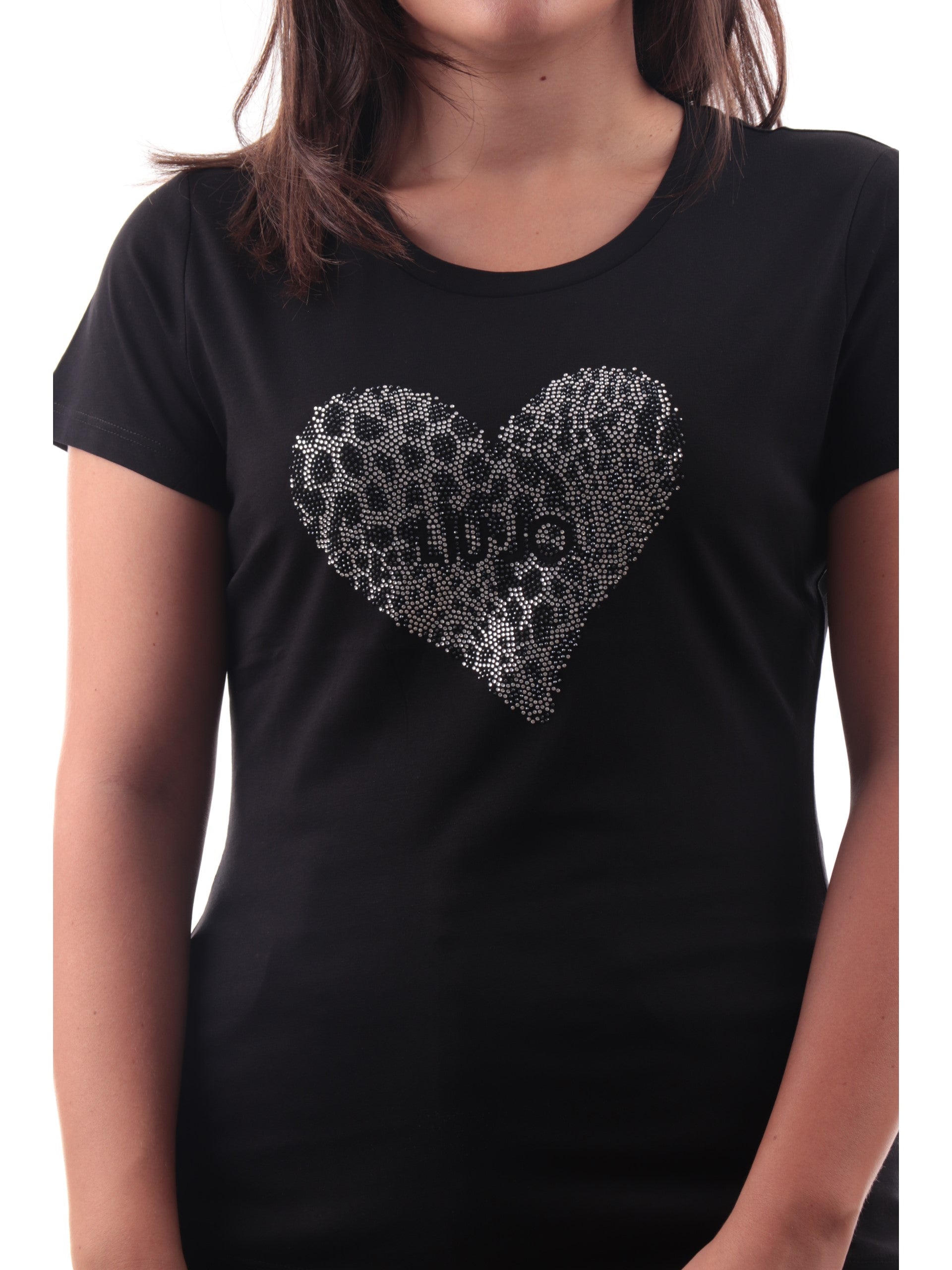 Maglia donna nera Liu Jo con cuore leopardato strass UF5264JS923M9938