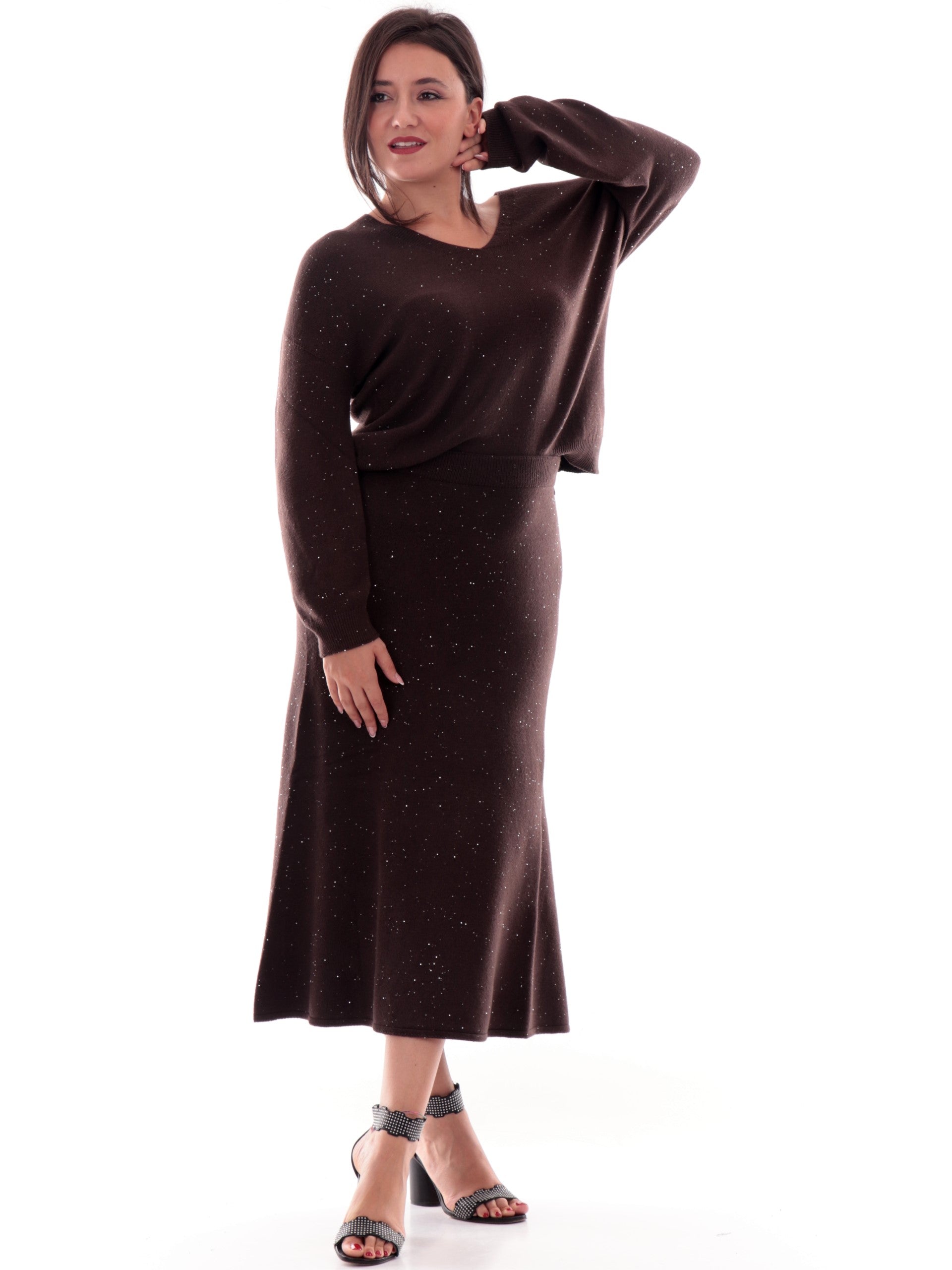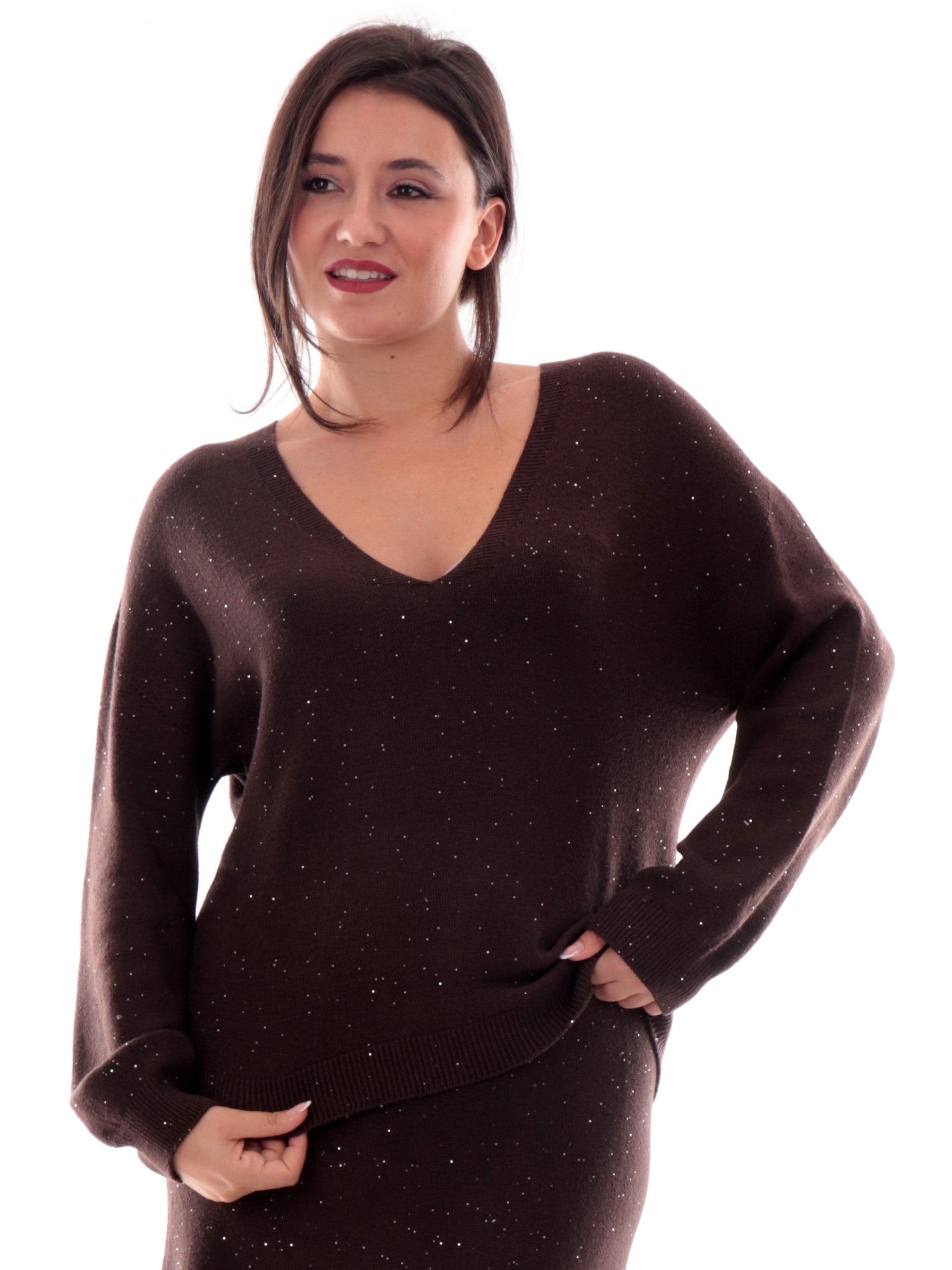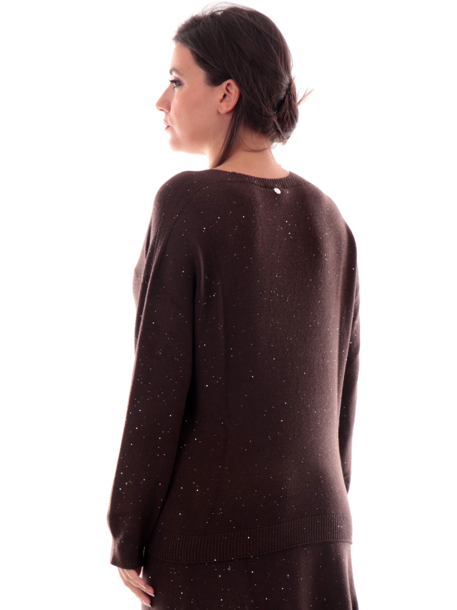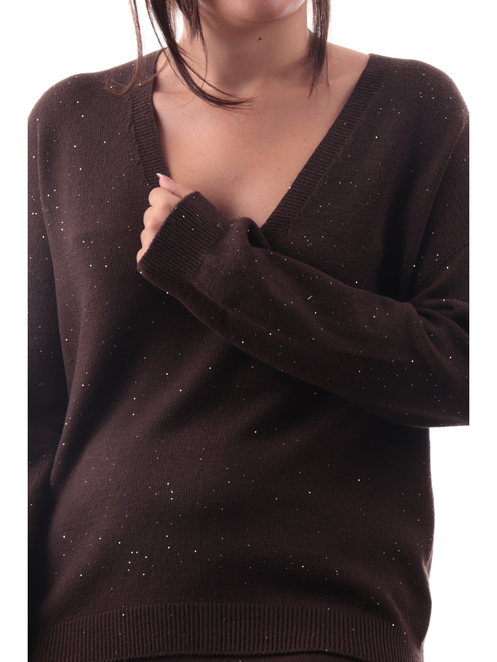 Maglione Liu Jo scollo a V marrone da donna con paillettes MF5233MA27R