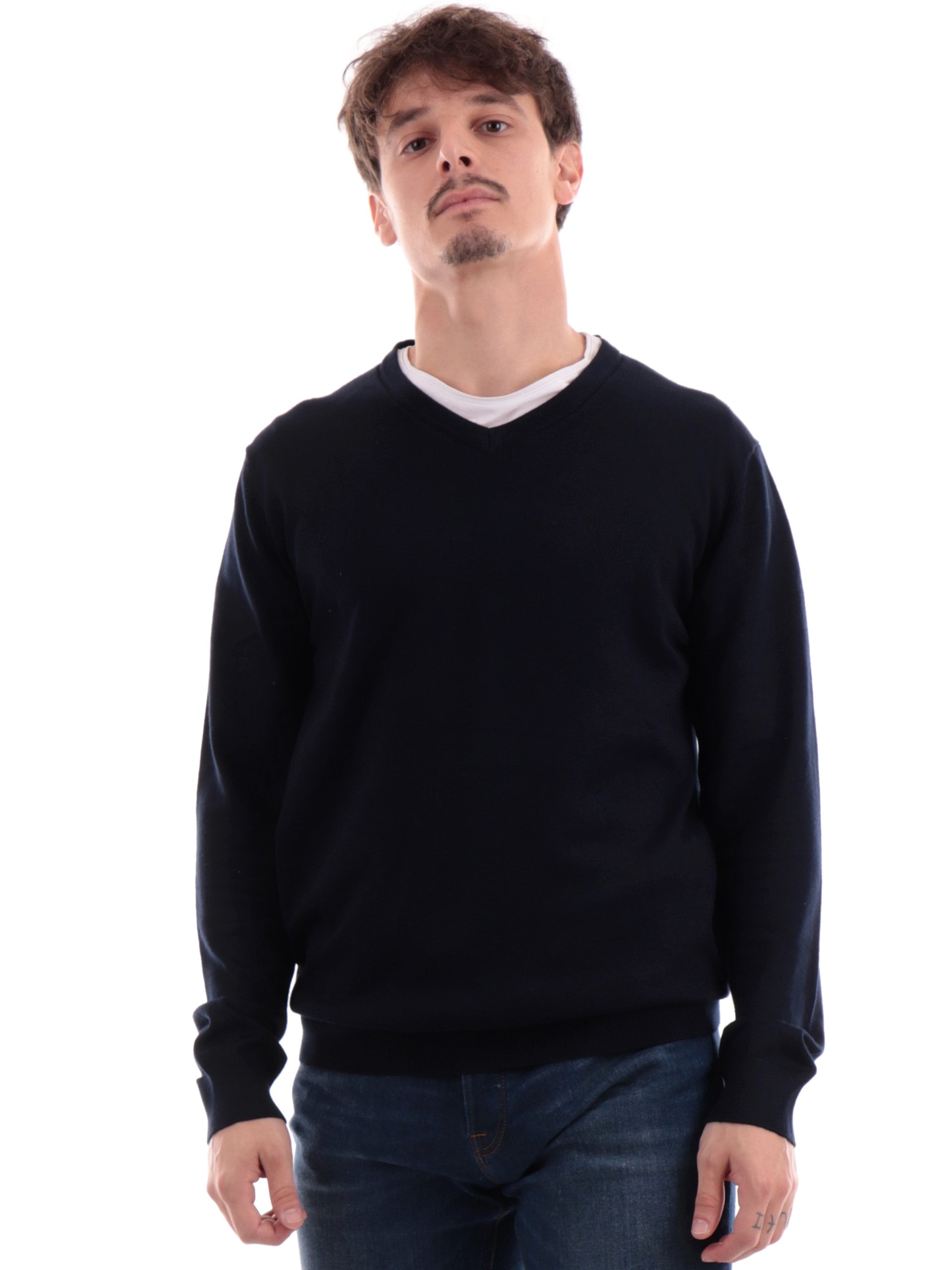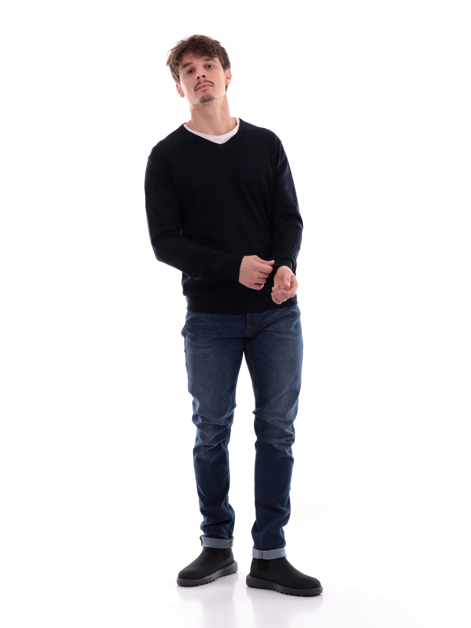 Maglione Markup Blu da Uomo con scollo a V realizzato in morbida viscosa . Questa maglia uomo blu è utilizzabile sia con una t-shirt che con una camicia grazie alle linee semplici ed essenziali rientra nei capi basic da avere nell armadio.
