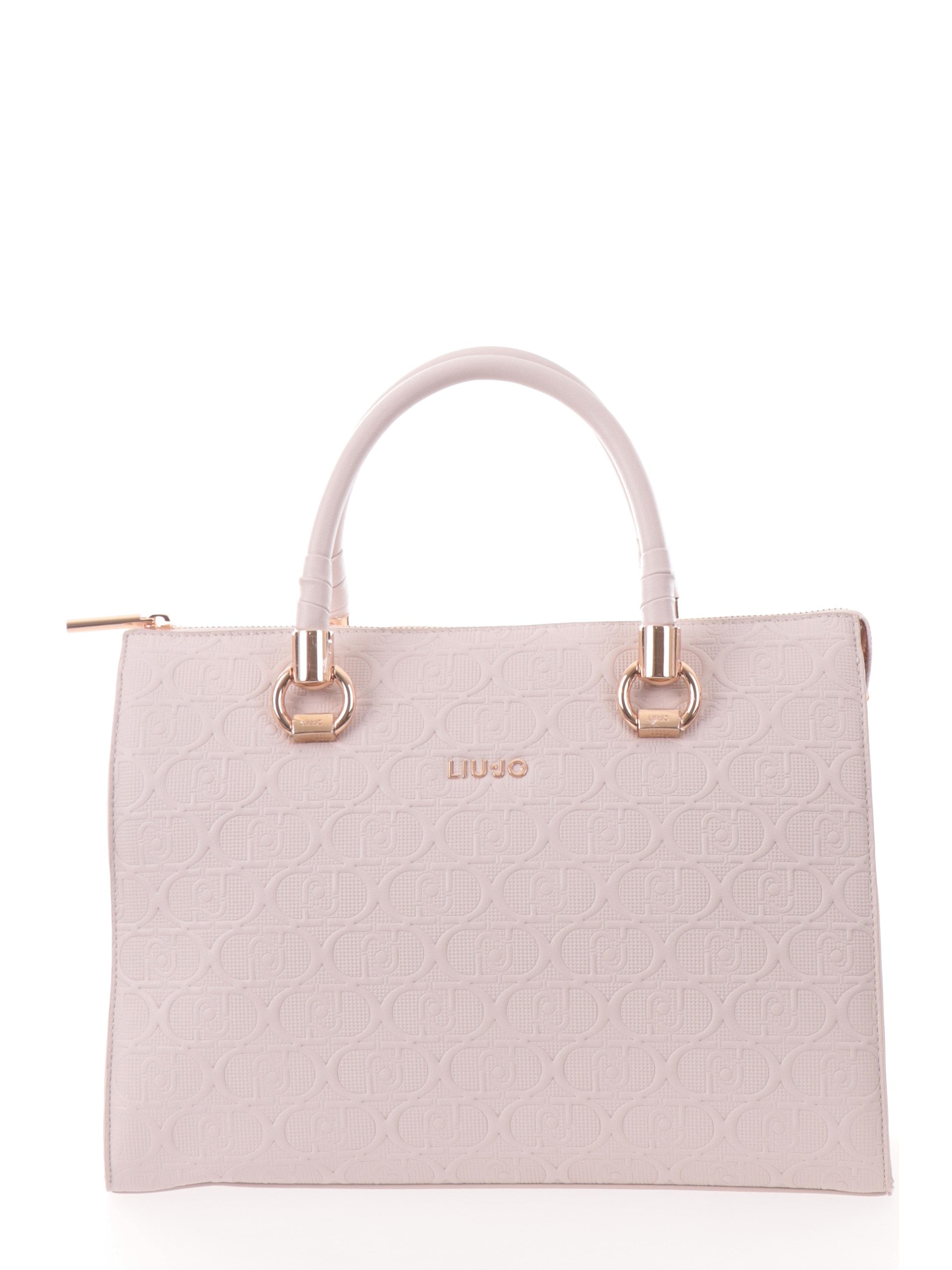 Borsa Liu Jo bianca con tracolla Ecs M Satchel AF4319E0538. Questa borsa donna Liu Jo ha due manici fissi, la tracolla removibile e regolabile, il salvaspalla, la chiusura full zip centrale e la trama logo all over applicata tono su tono. All'interno di questa medium shopping Liu Jo troviamo un unico grande scomparto con due tasche interne (una aperta ed una con zip).