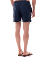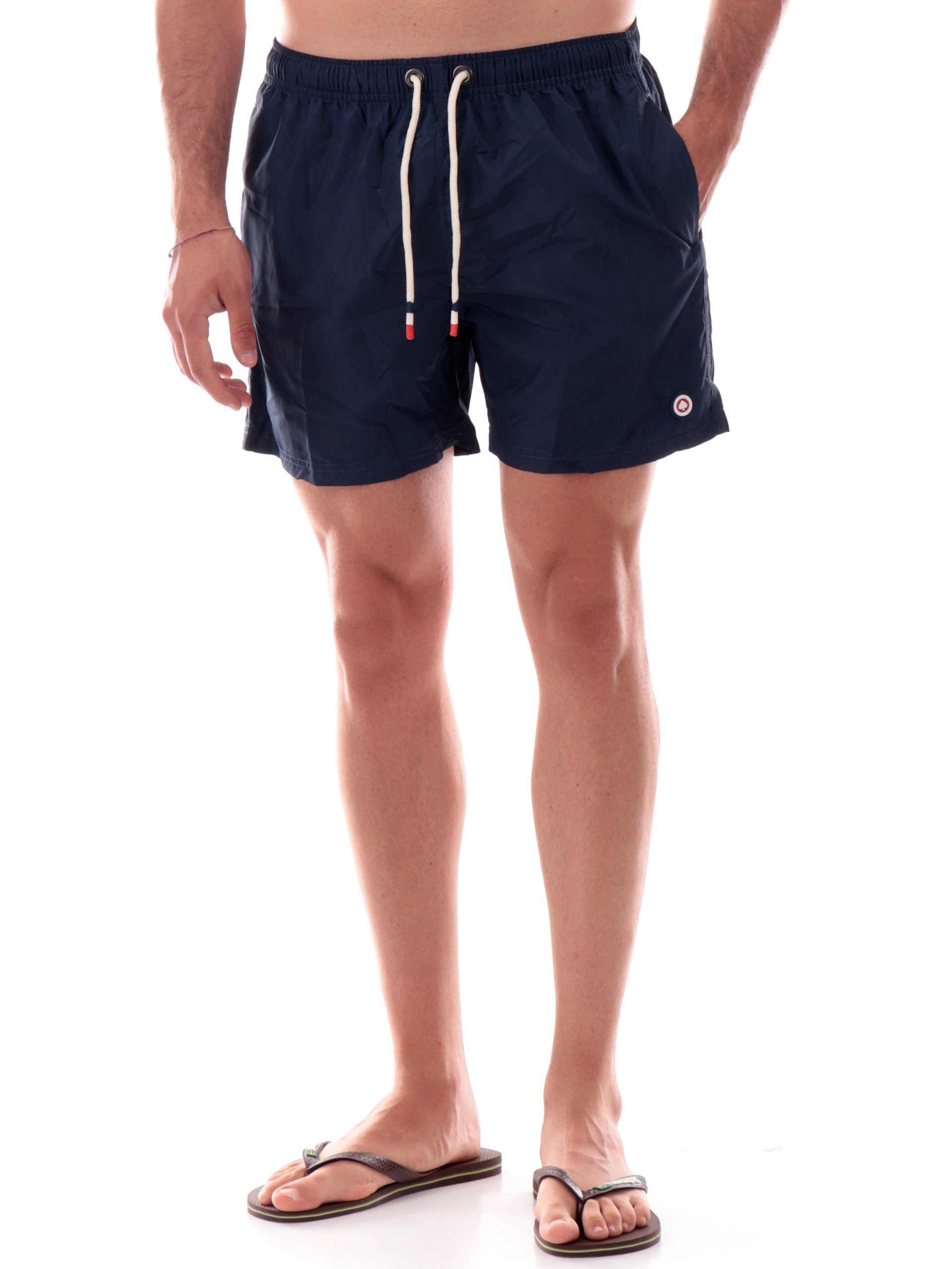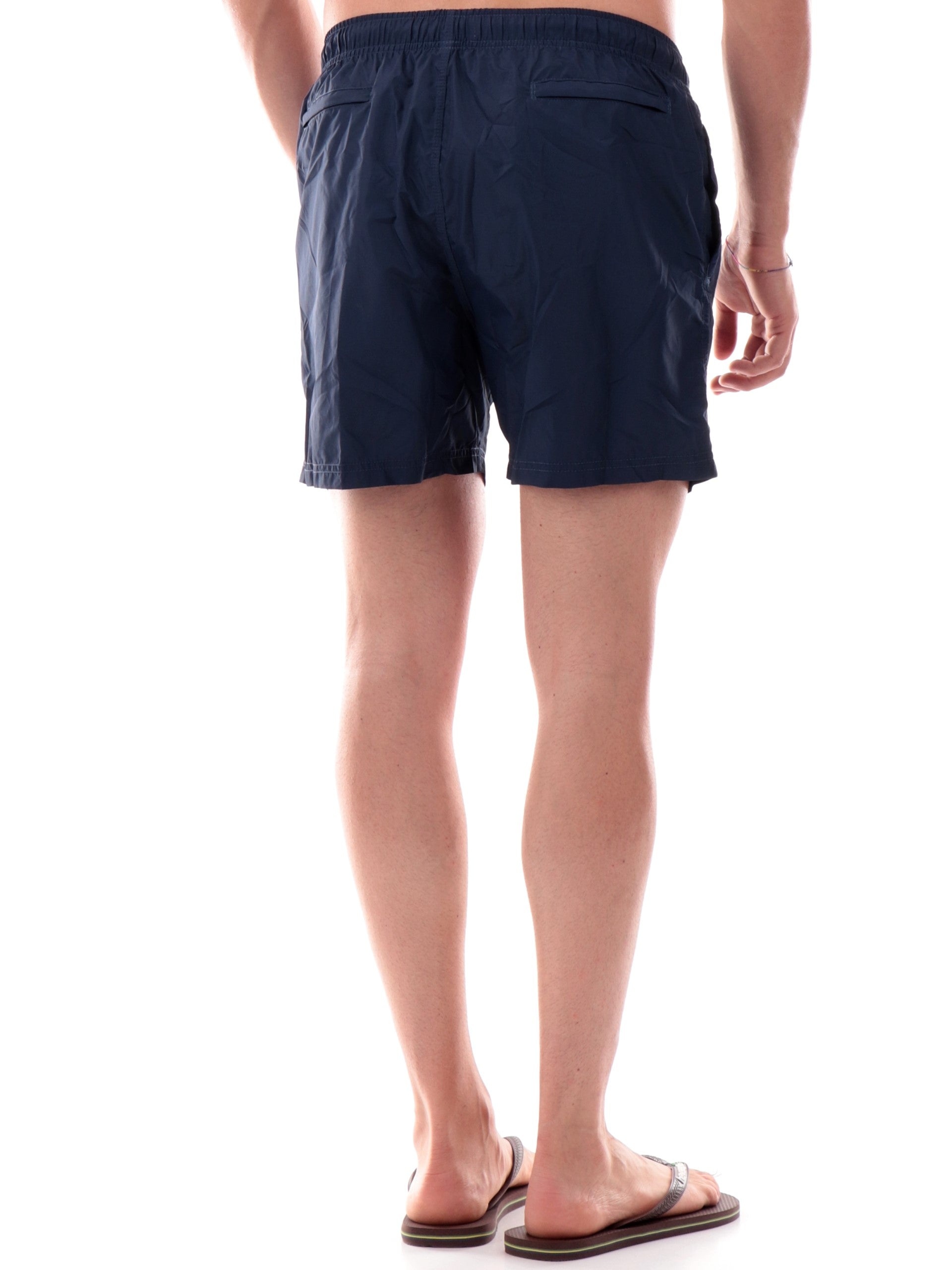 Costume mare Modfitters blu da uomo con patch COSTUME, realizzato in tessuto in grado di asciugarsi in pochissimi minuti. Questo costume Modfitters blu ha la banda elastica sul punto vita regolabile con laccetti, due tasche laterali aperte, una tasca posteriore con zip e il patch Modfitters applicato sul fondo.