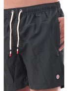 Costume mare Modfitters verde militare da uomo con patch COSTUME, realizzato in tessuto in grado di asciugarsi in pochissimi minuti. Questo costume Modfitters verde ha la banda elastica sul punto vita regolabile con laccetti, due tasche laterali aperte, una tasca posteriore con zip e il patch Modfitters applicato sul fondo.