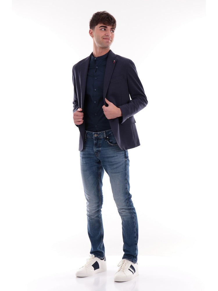 Elegante Herrenjacke in Mulish-Blau mit rotem Horn RUIGKS900