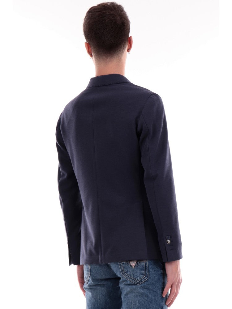 RUIGKS900 blaue Mulish-Herrenjacke aus weichem Stoff. Diese elegante blaue Mulish-Jacke hat einen traditionellen Kragen, einen Doppelknopfverschluss, eine offene Leistentasche, zwei Seitentaschen mit Klappen und lange Ärmel mit Knöpfen.