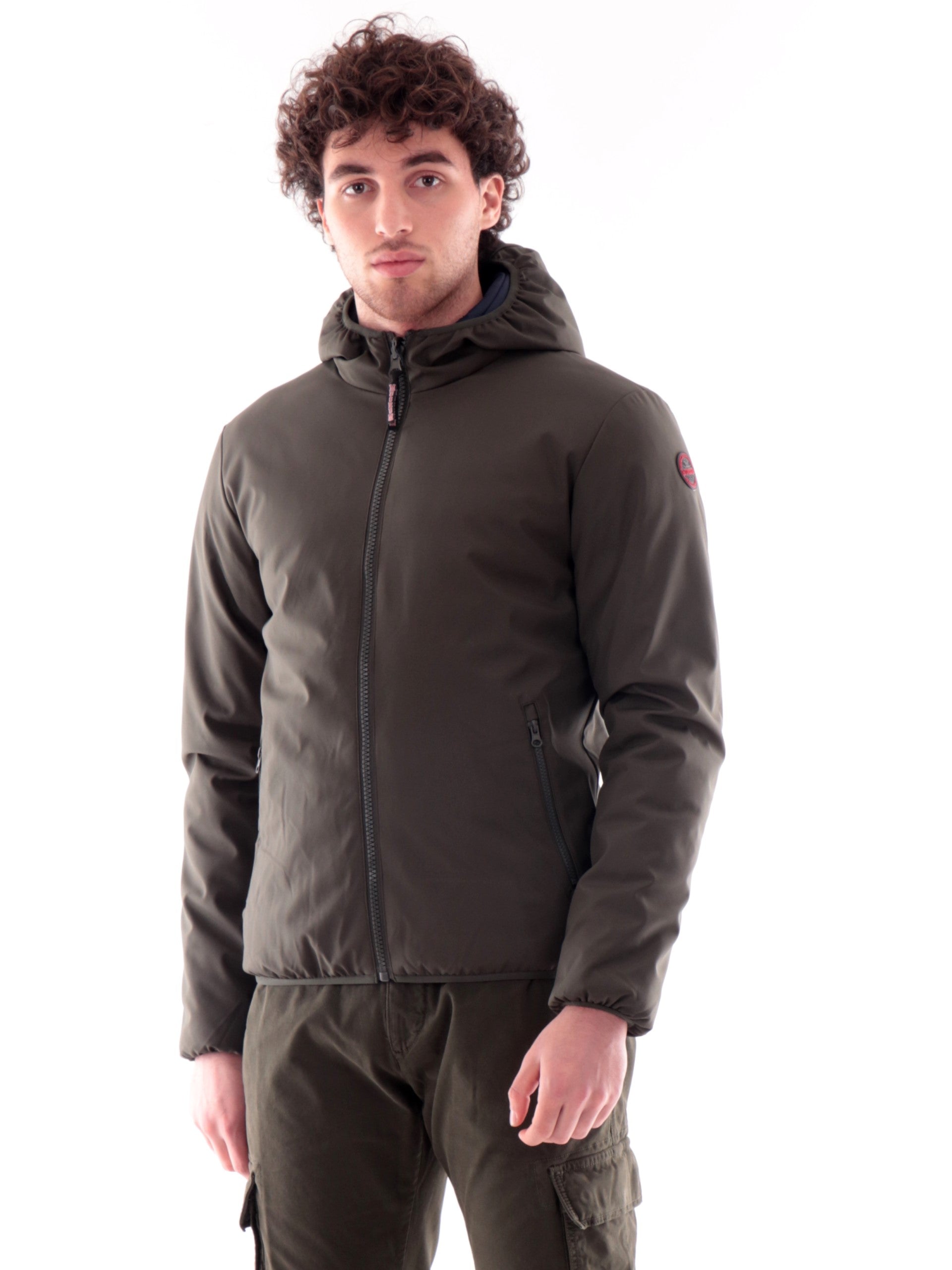 Piumino Museum reversibile verde e blu uomo Alban. Questo giubbotto reversibile realizzato da un tessuto caldo ed avvolgente al tatto perfetto per i primi freddi invernali, è caratterizzata dal cappuccio fisso, la chiusura full zip, due tasche laterali con zip e polsini elasticizzati. Questa giacca da un lato abbiamo un tessuto liscio e opaco a tinta unita verde, trapuntato a tinta unita blu dall'altro. Grazie alla sua reversibilità può essere indossata in diverse circostanze adattandosi ad ogni stile e occasione.