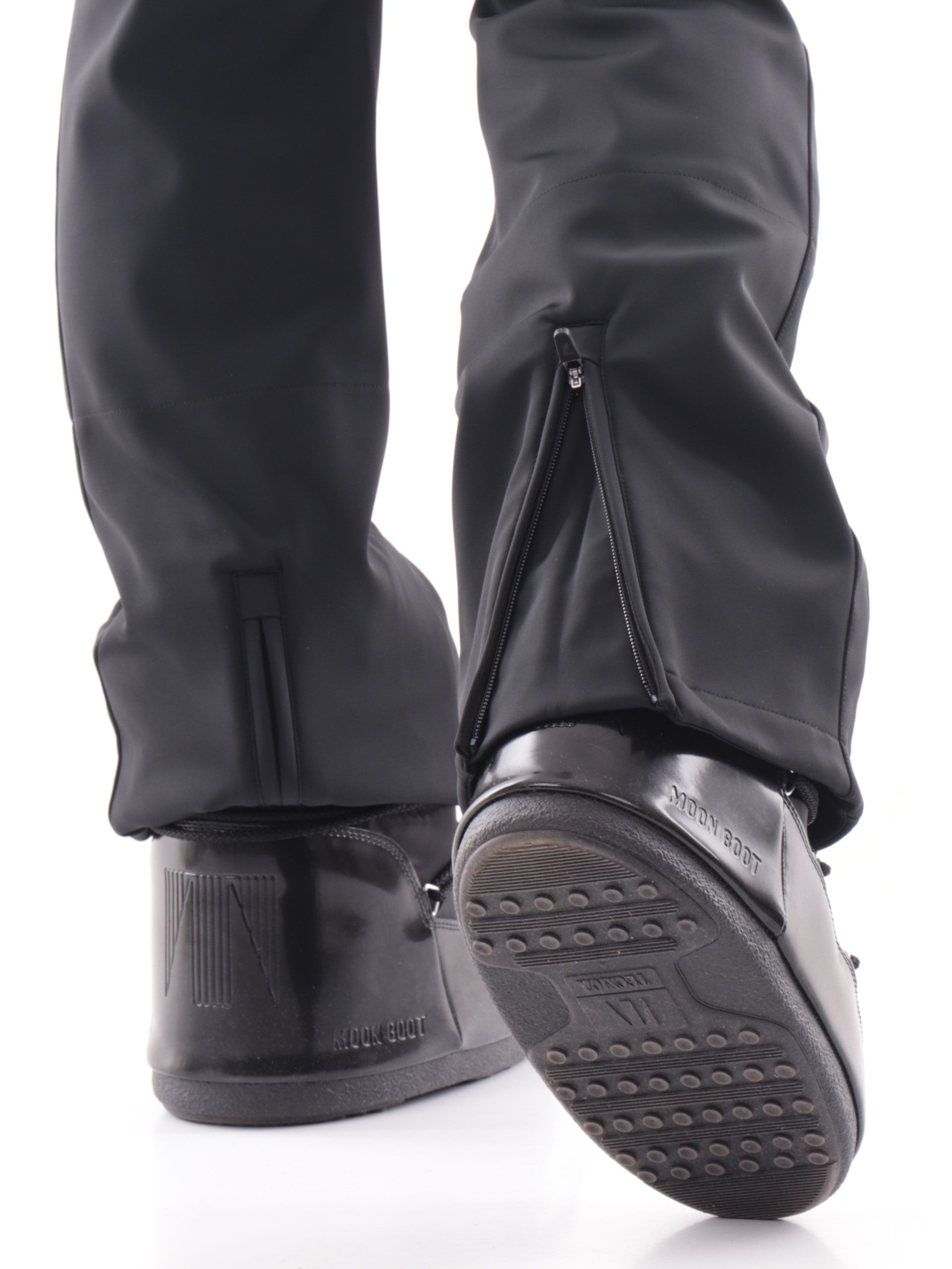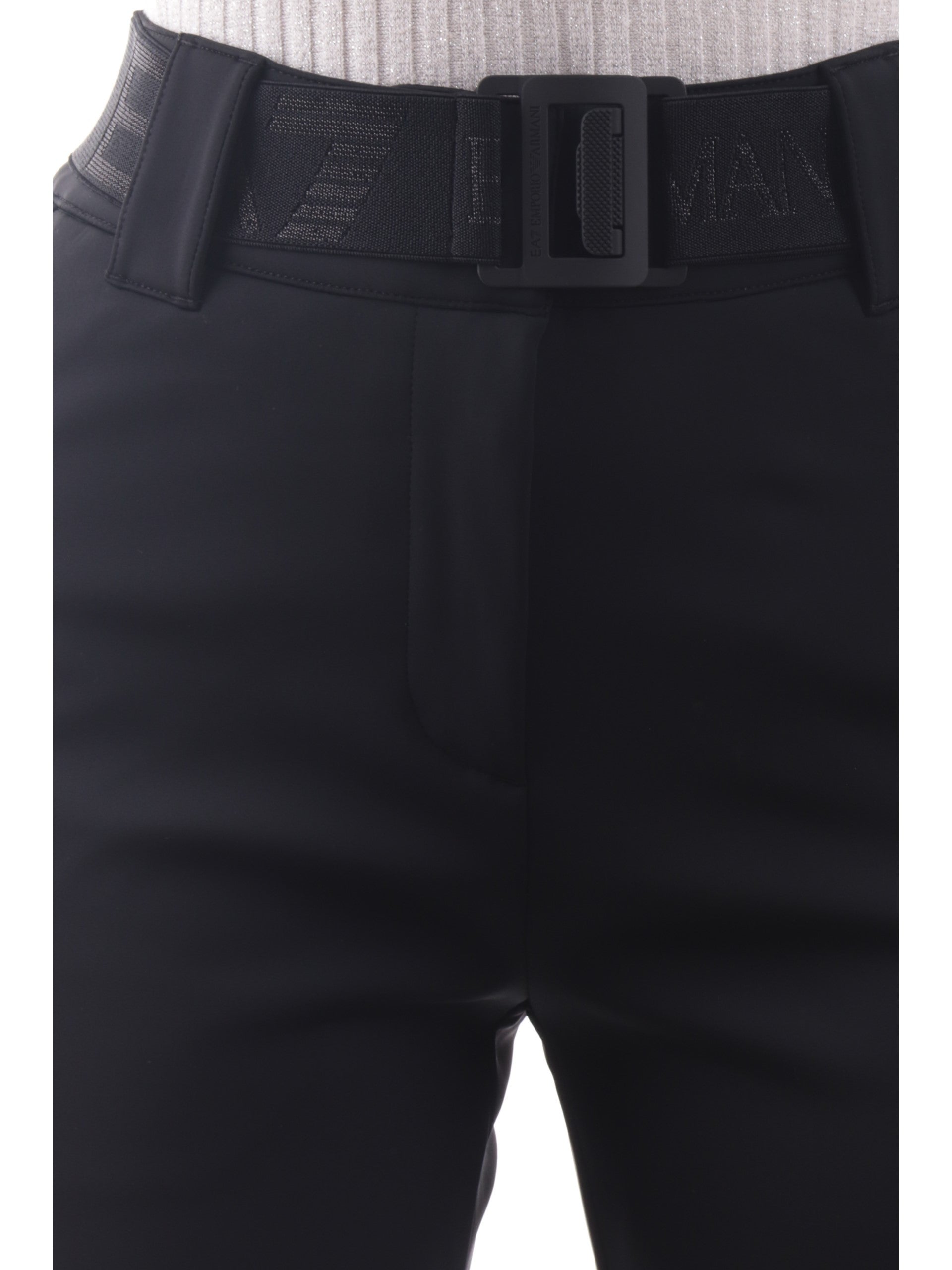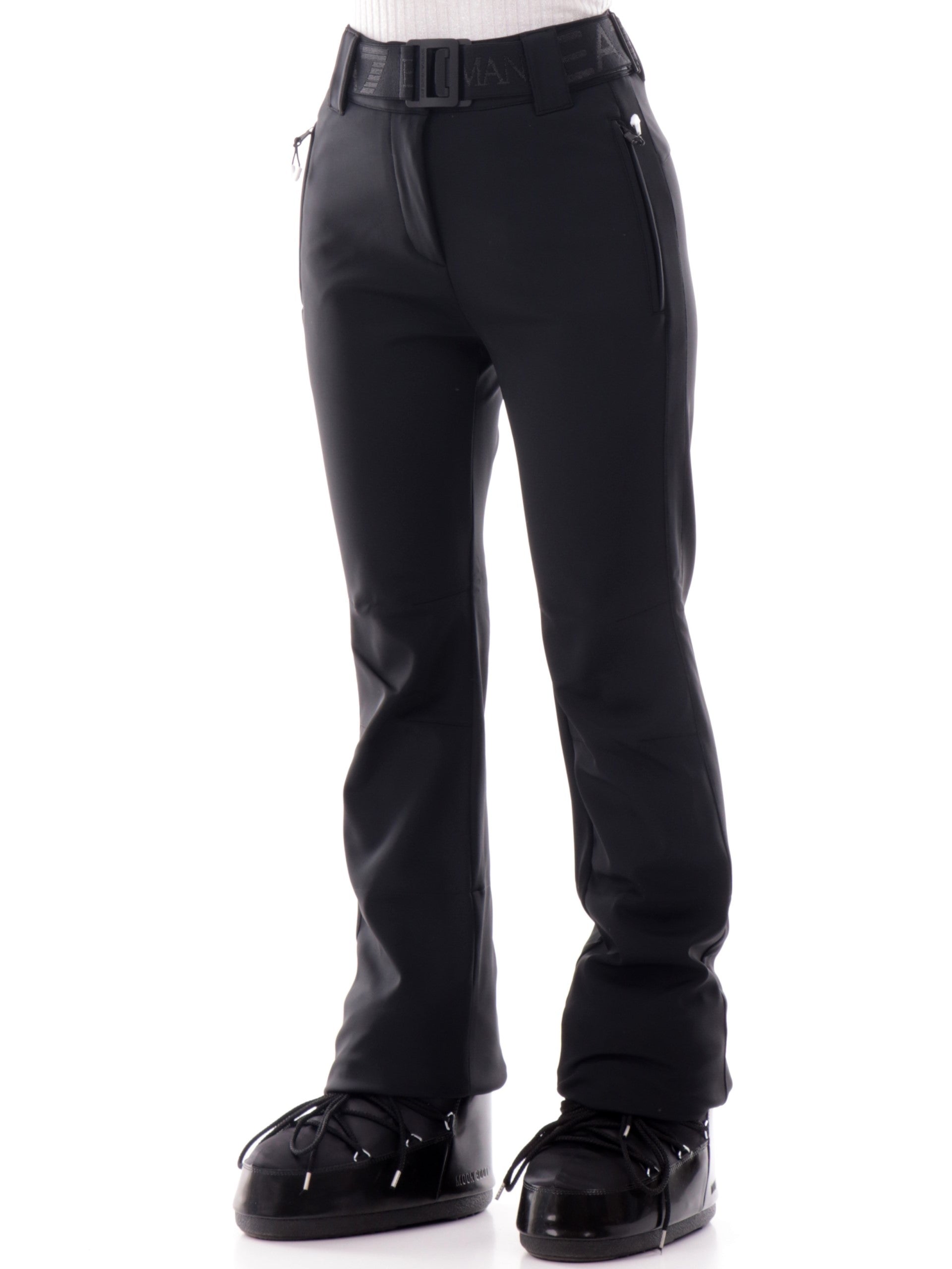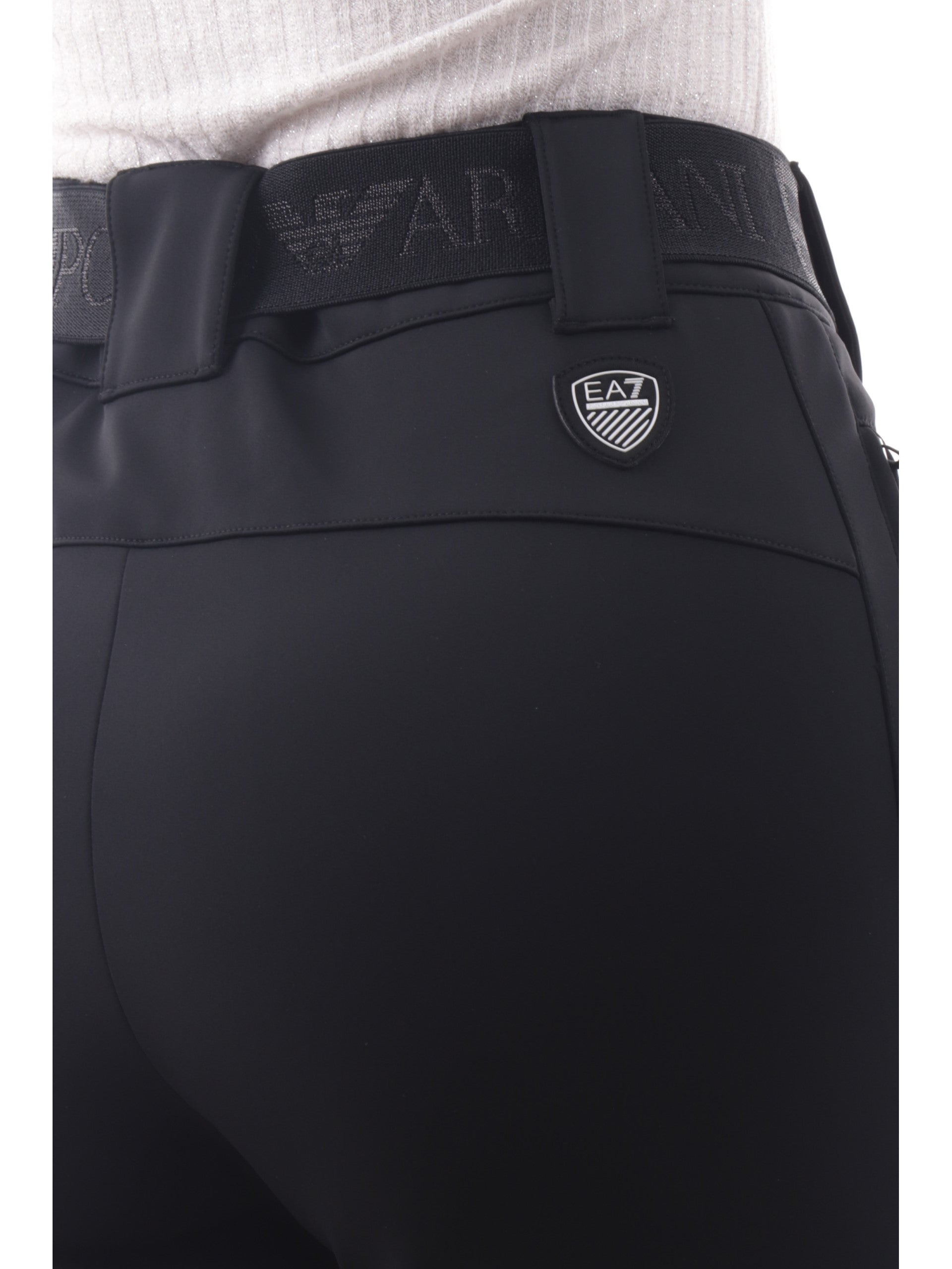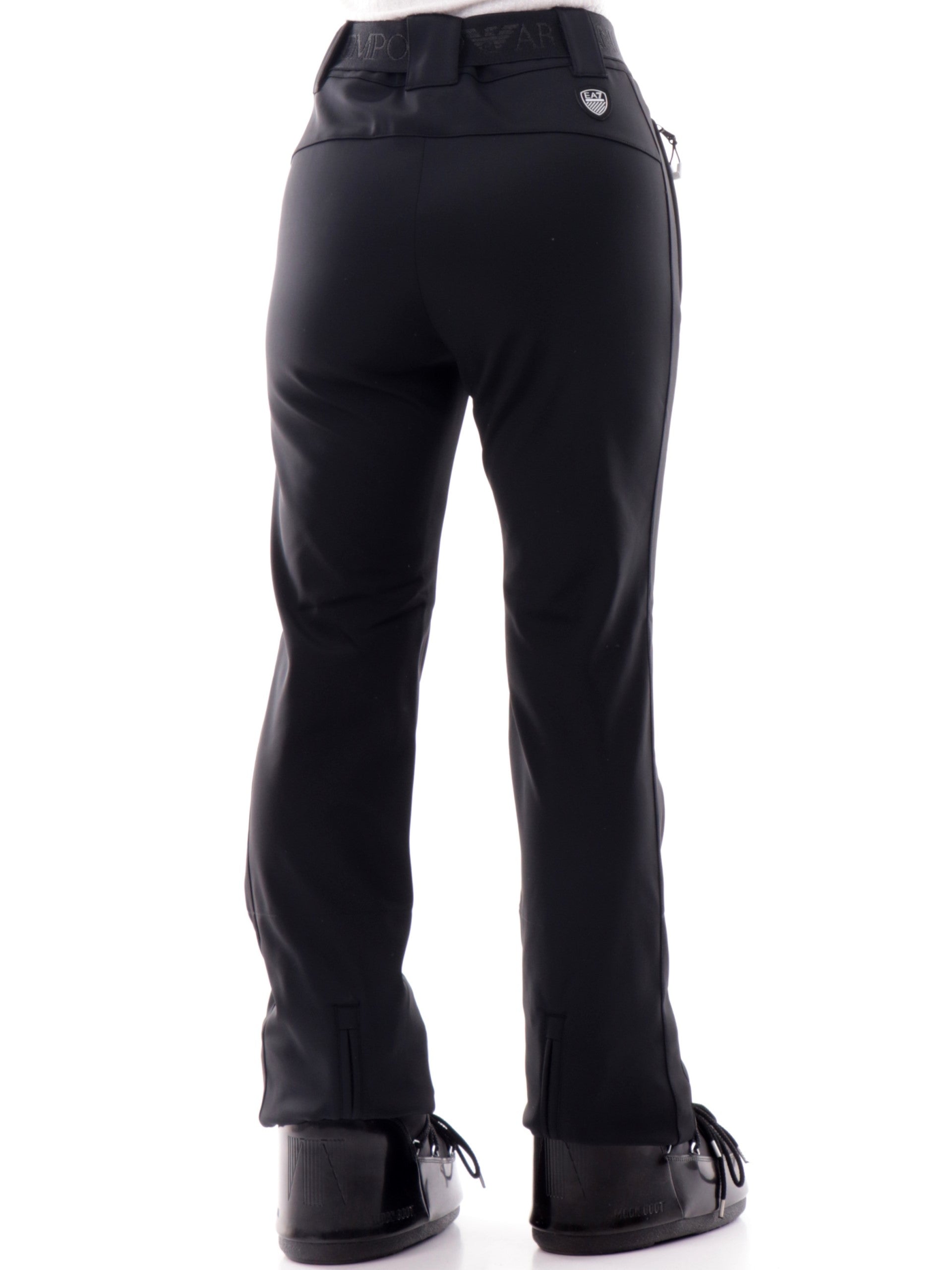 Pantaloni da sci da donna neri EA7 realizzati in tessuto con tecnologia softshell altamente performante ed elasticizzato. Il modello presenta una cintura in nastro logato, ginocchia preformate, ghetta interna e zip al fondo per facilitare la calzata degli scarponi, dettagli stilistici funzionali che assicurano il massimo comfort discesa dopo discesa.