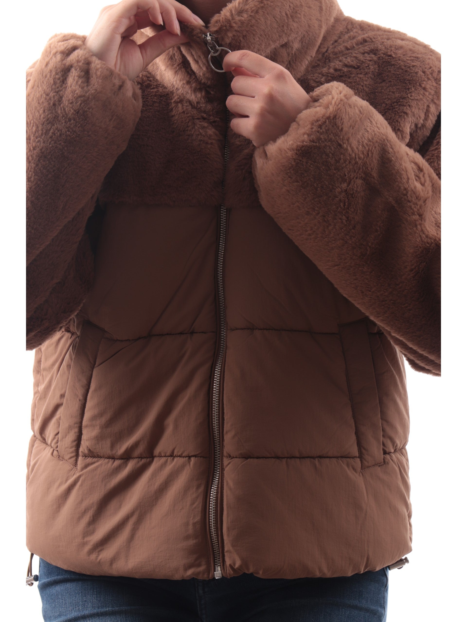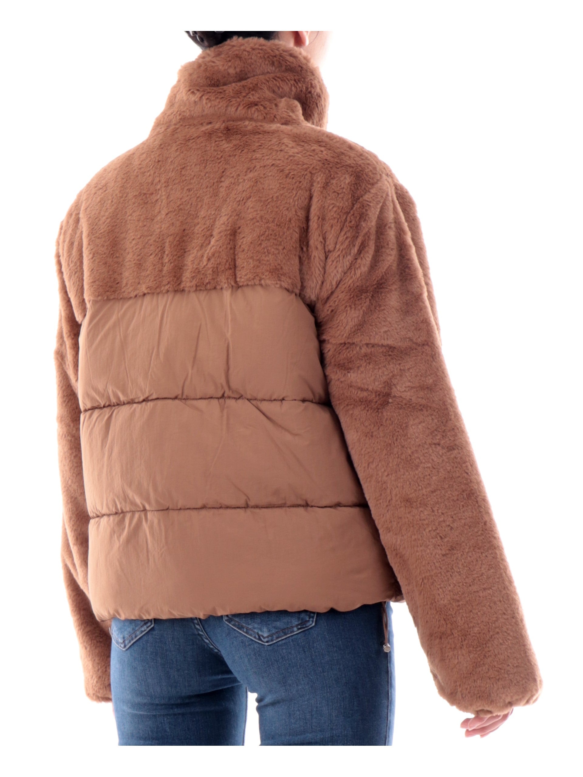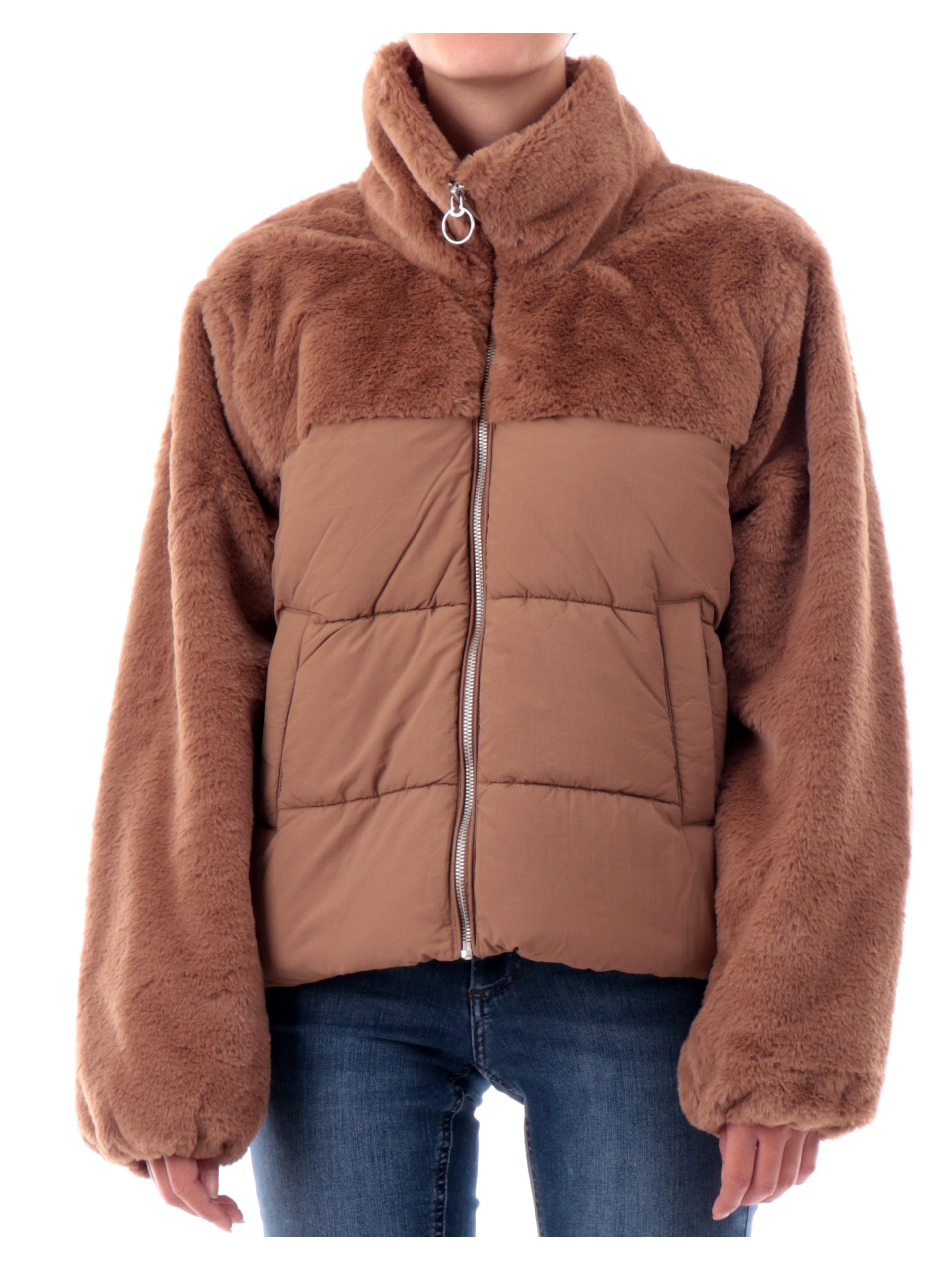 Piumino con pelliccia ecologica Only beige cognac da donna 15292945. Questa giacca Only marrone ha la parte inferiore realizzata in piumino , la chiusura con cerniera, due tasche laterali con bottoneautomatico e fondo regolare.