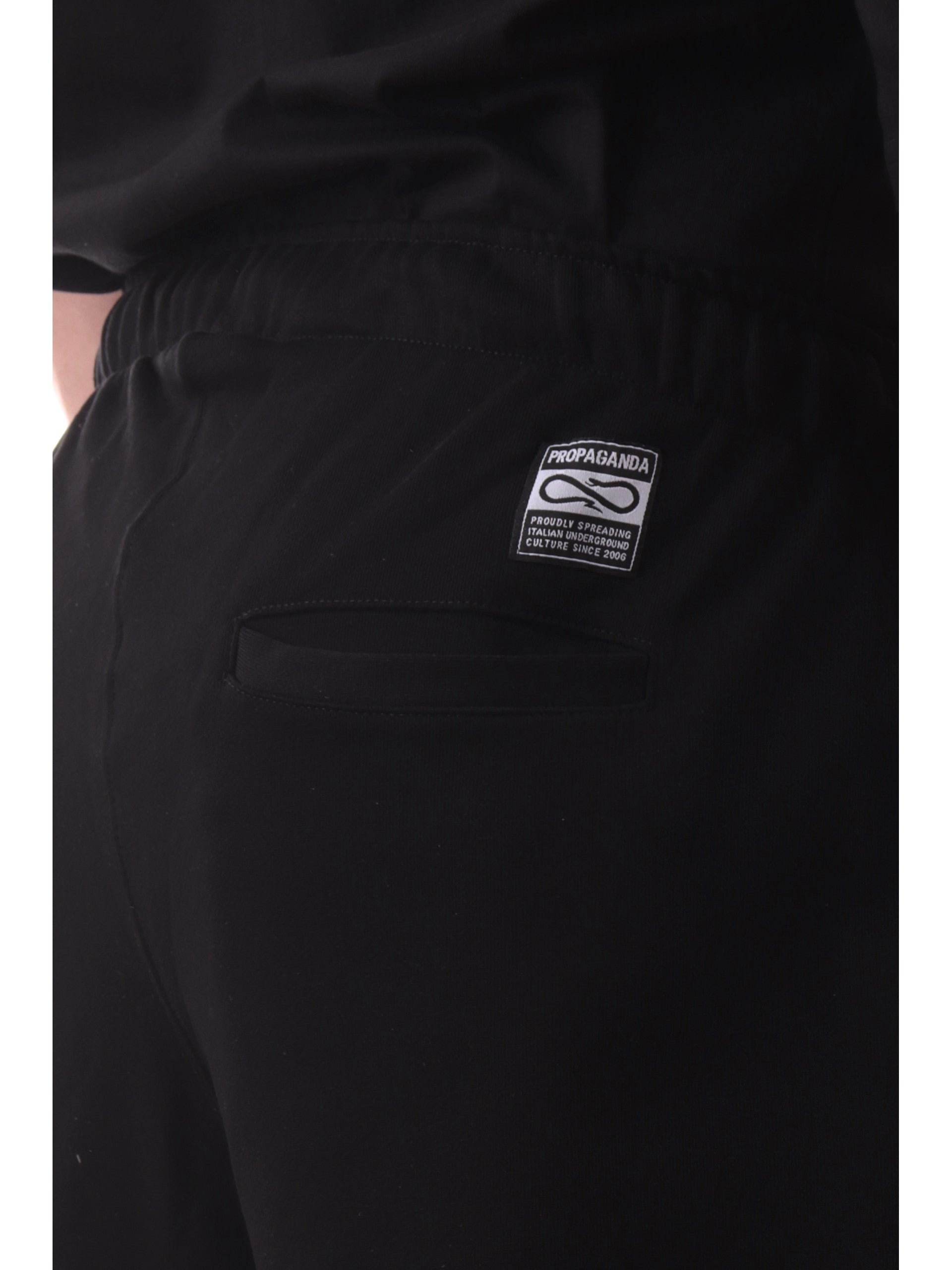 Bermuda Propaganda uomo neri realizzati in cotone con logo blu elettrico laterale. Questi pantaloncini Propaganda uomo neri sono caratterizzati da fit morbido con elastico in vita e tasche.