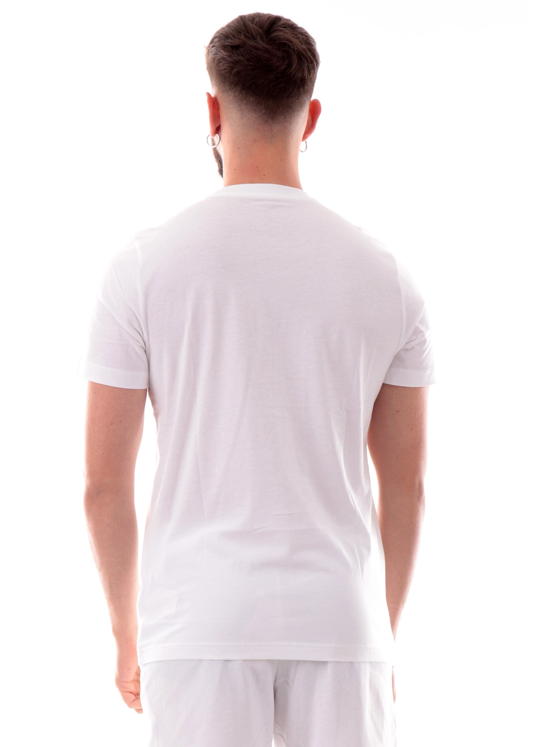 Maglia Puma bianca da uomo maxi logo a contrasto 688913, realizzata in 100% puro cotone. Questa t-shirt Puma bianca girocollo ha le maniche corte, la composizione in 100% cotone e il maxi logo sul davanti.