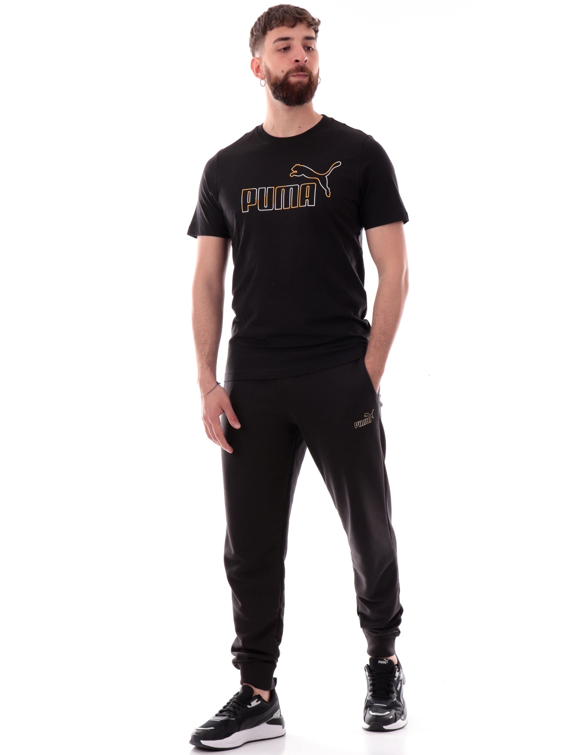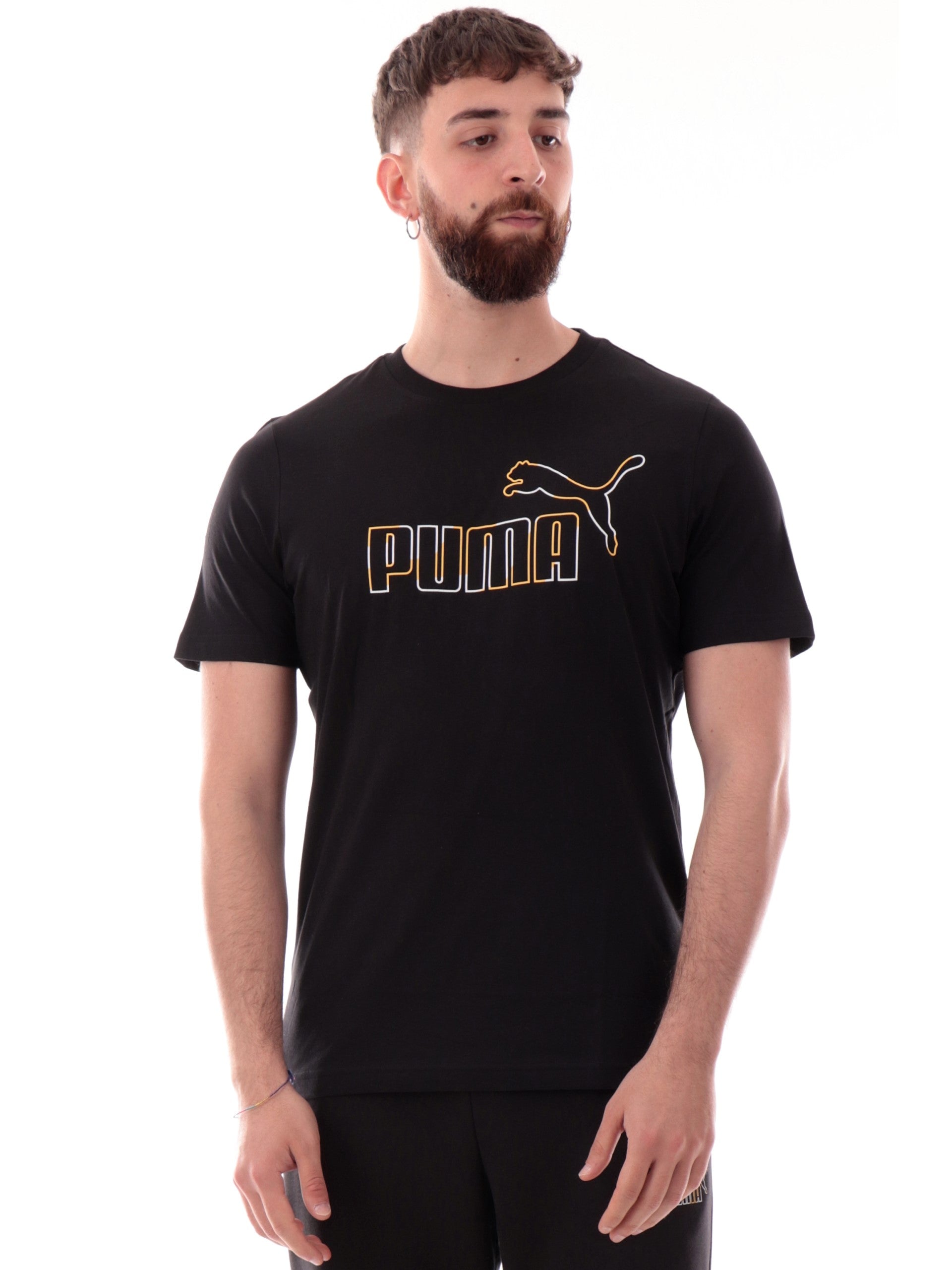 Maglia Puma nera da uomo maxi logo a contrasto 688913