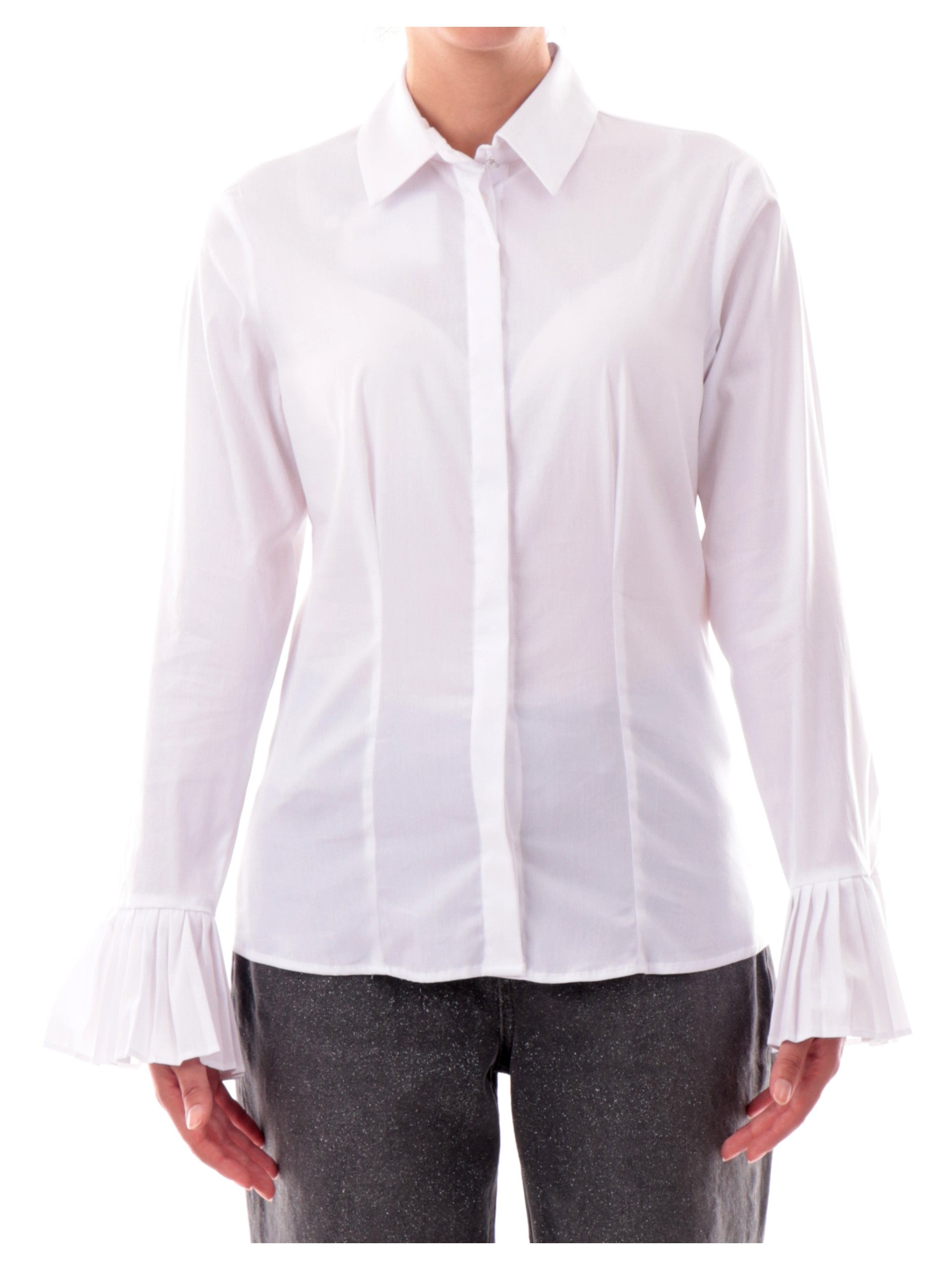 Camicia Liu Jo bianca da donna con polsini plissettati e bottone gioiello sul colletto . Questa camicia donna Liu Jo bianca è perfetta per dare un tocco di stile ai tuoi outfit.