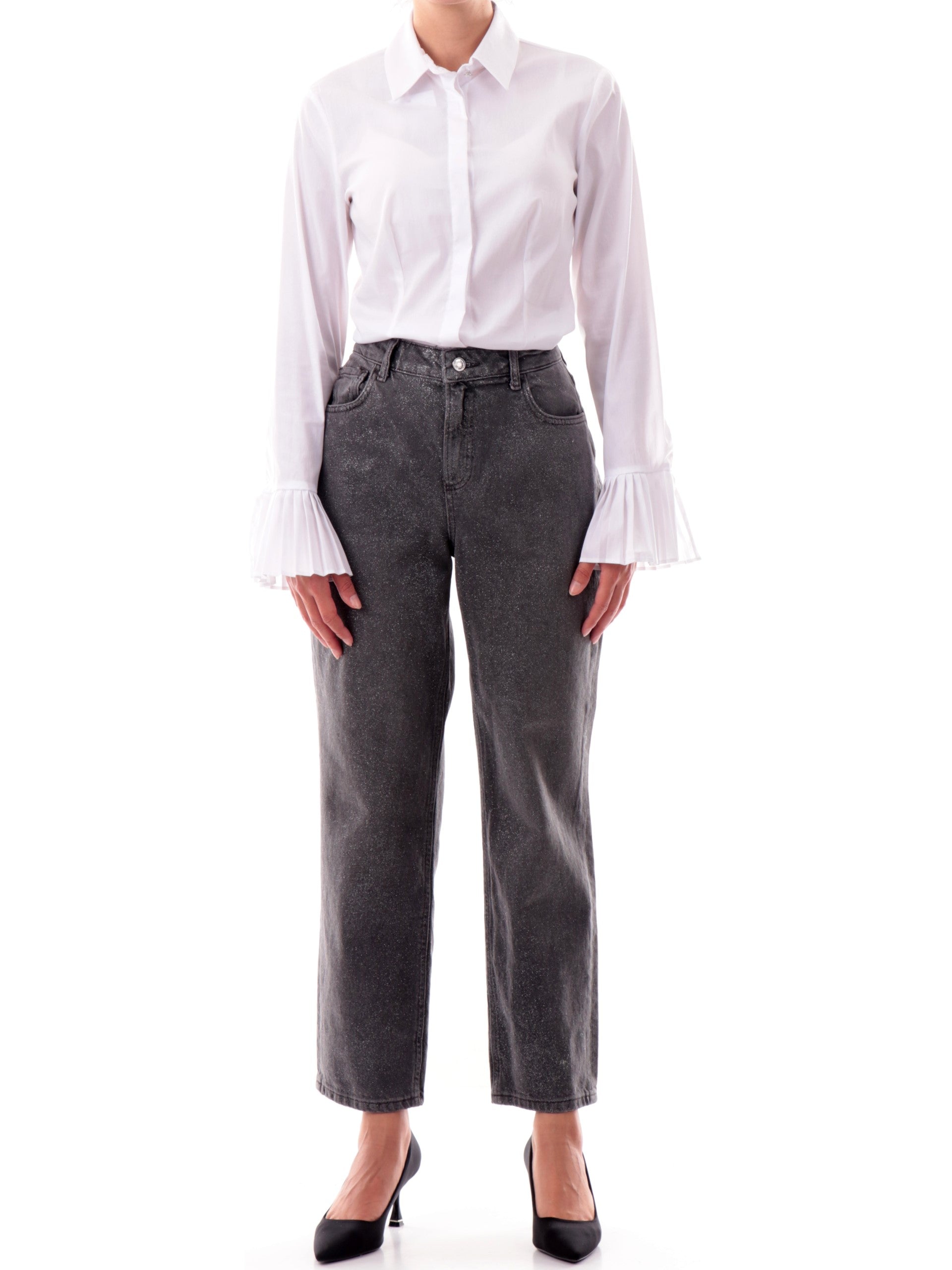 Camicia Liu Jo bianca da donna con polsini plissettati bottone gioiello