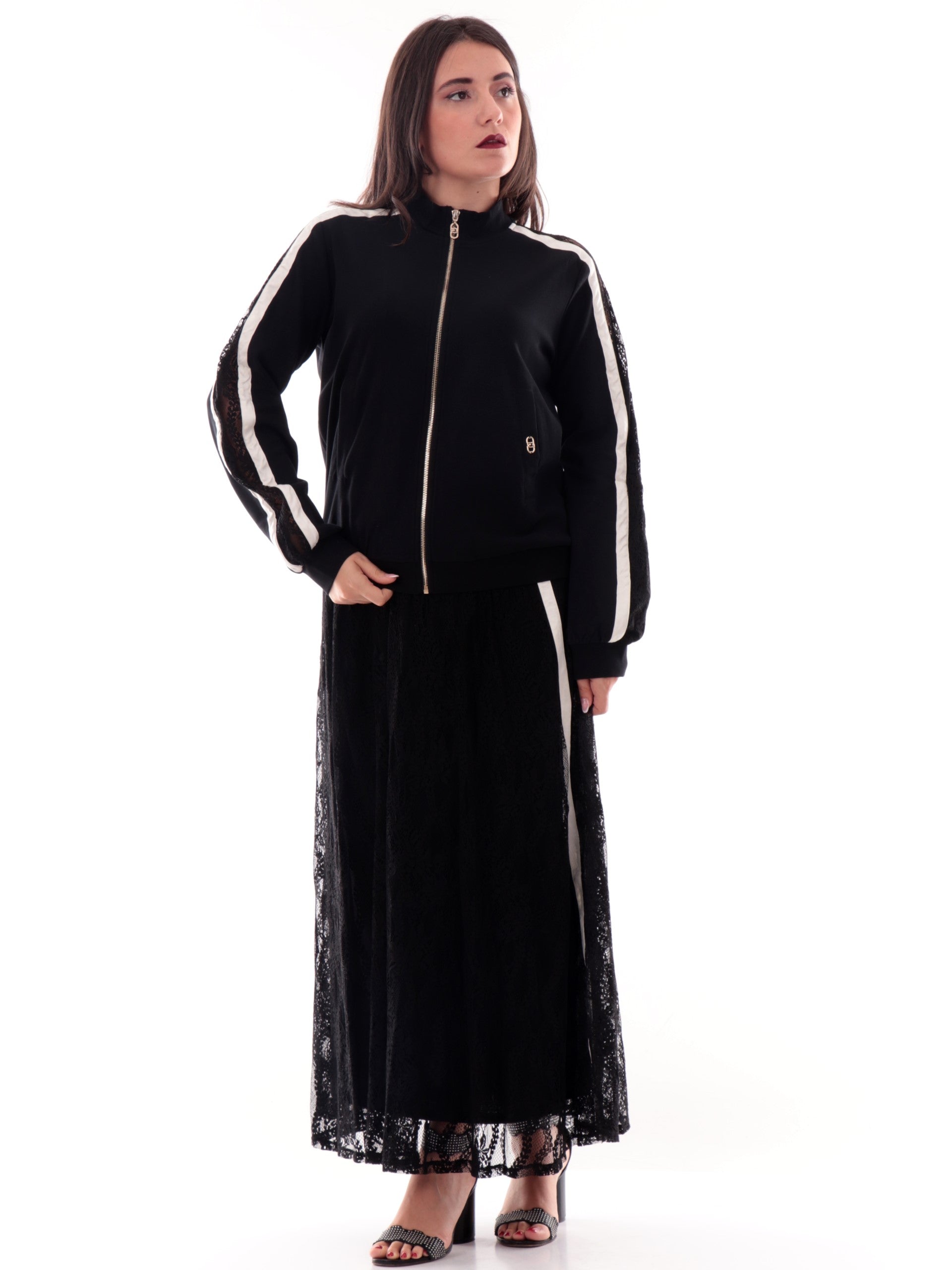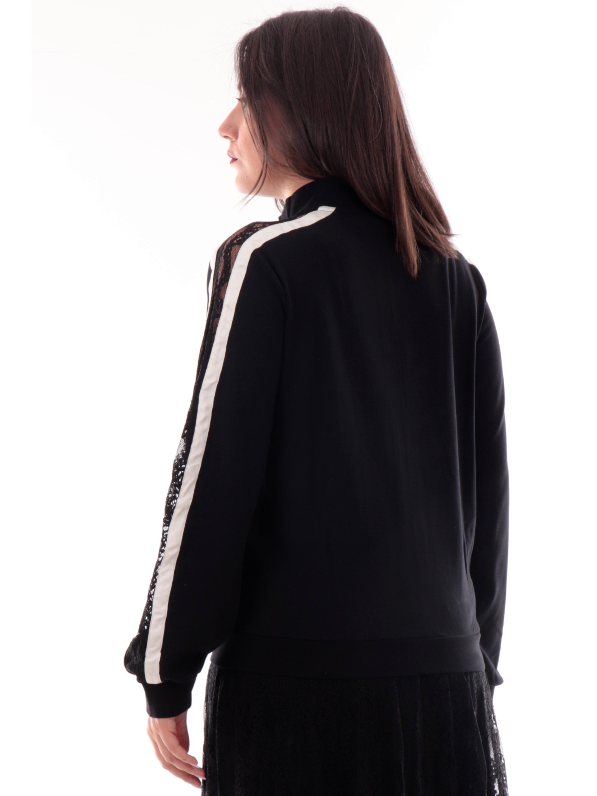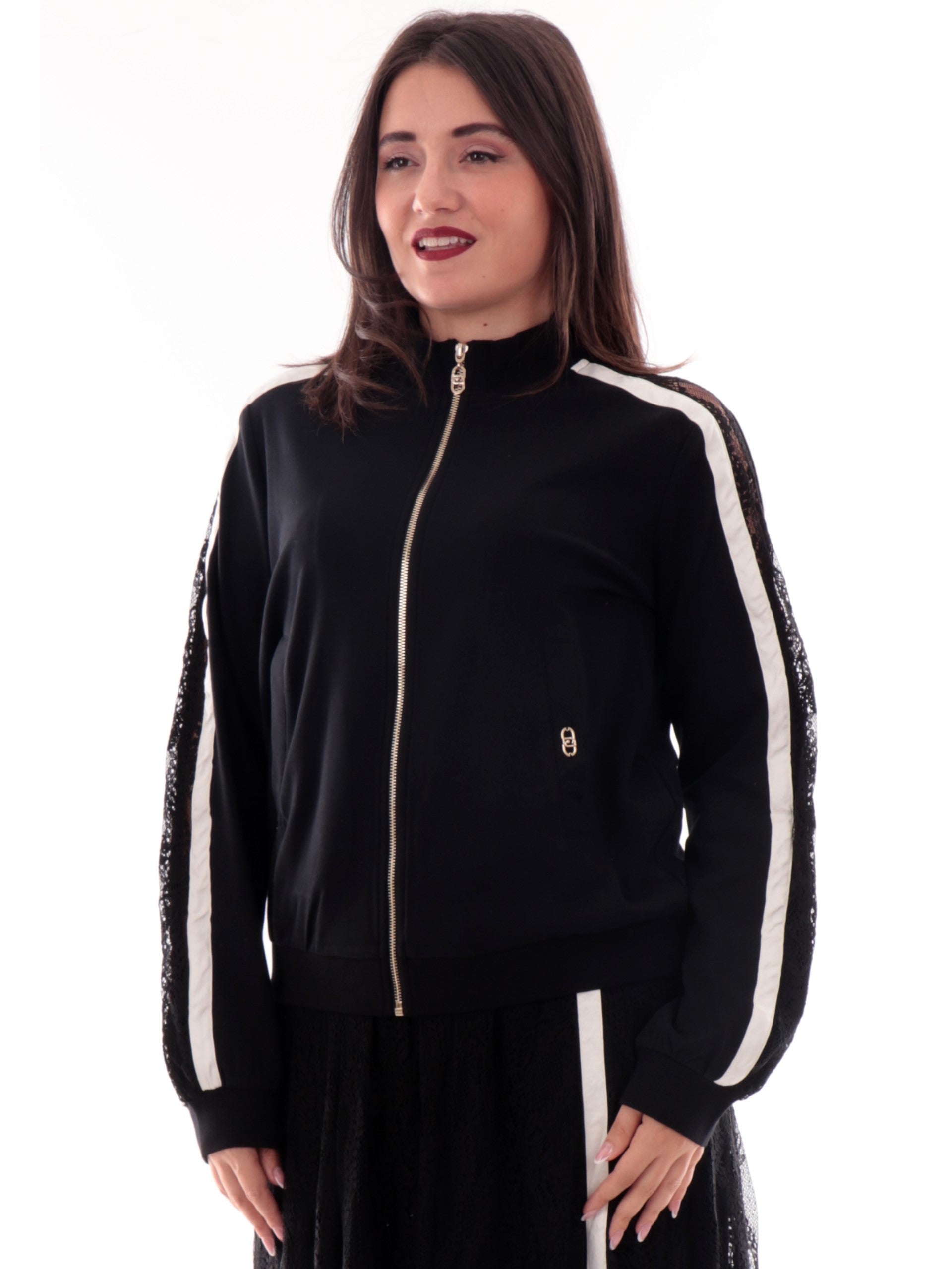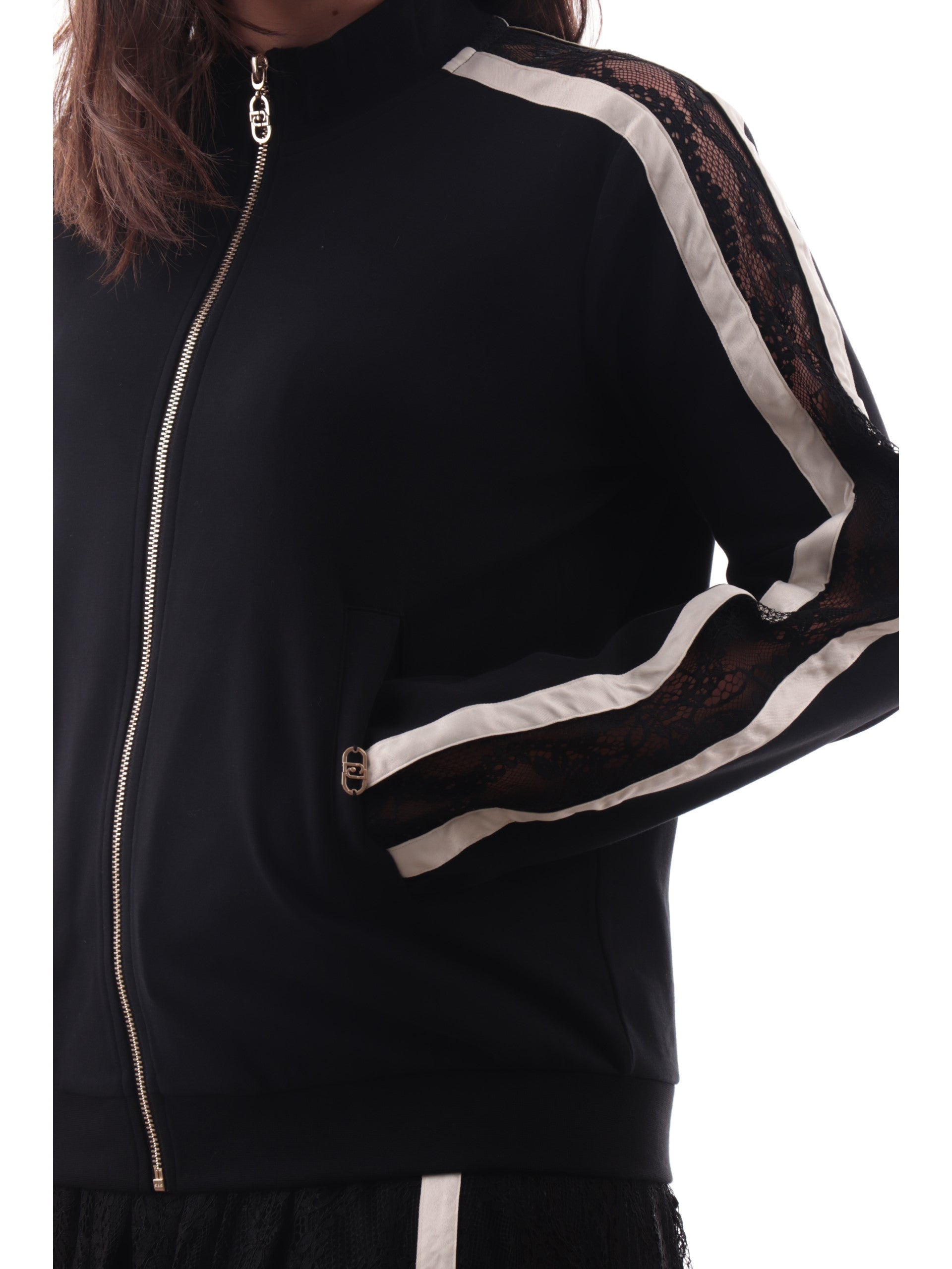 Felpa Liu Jo nera da donna con inserti in pizzo e cerniera TF5006J4523-03N6