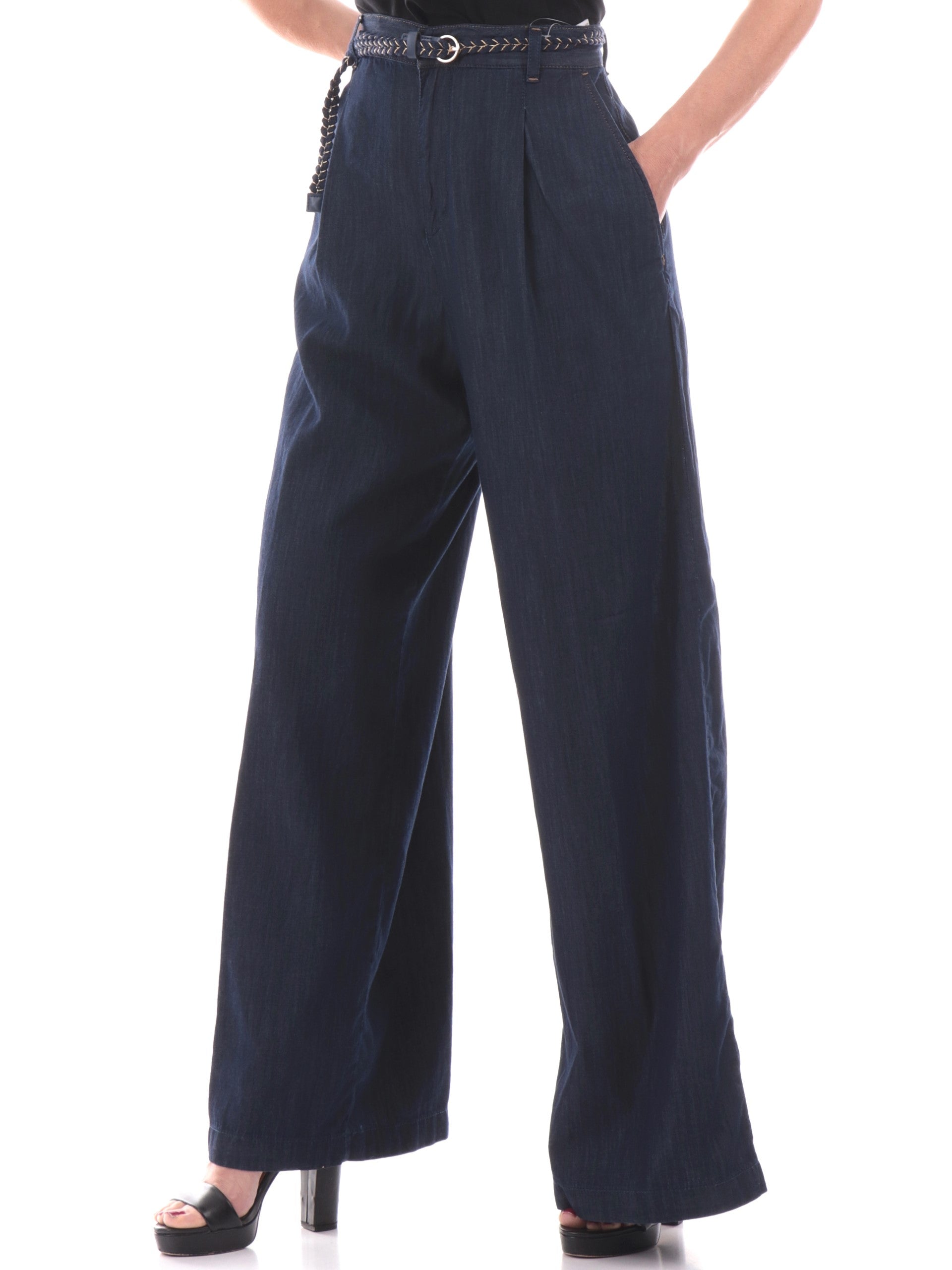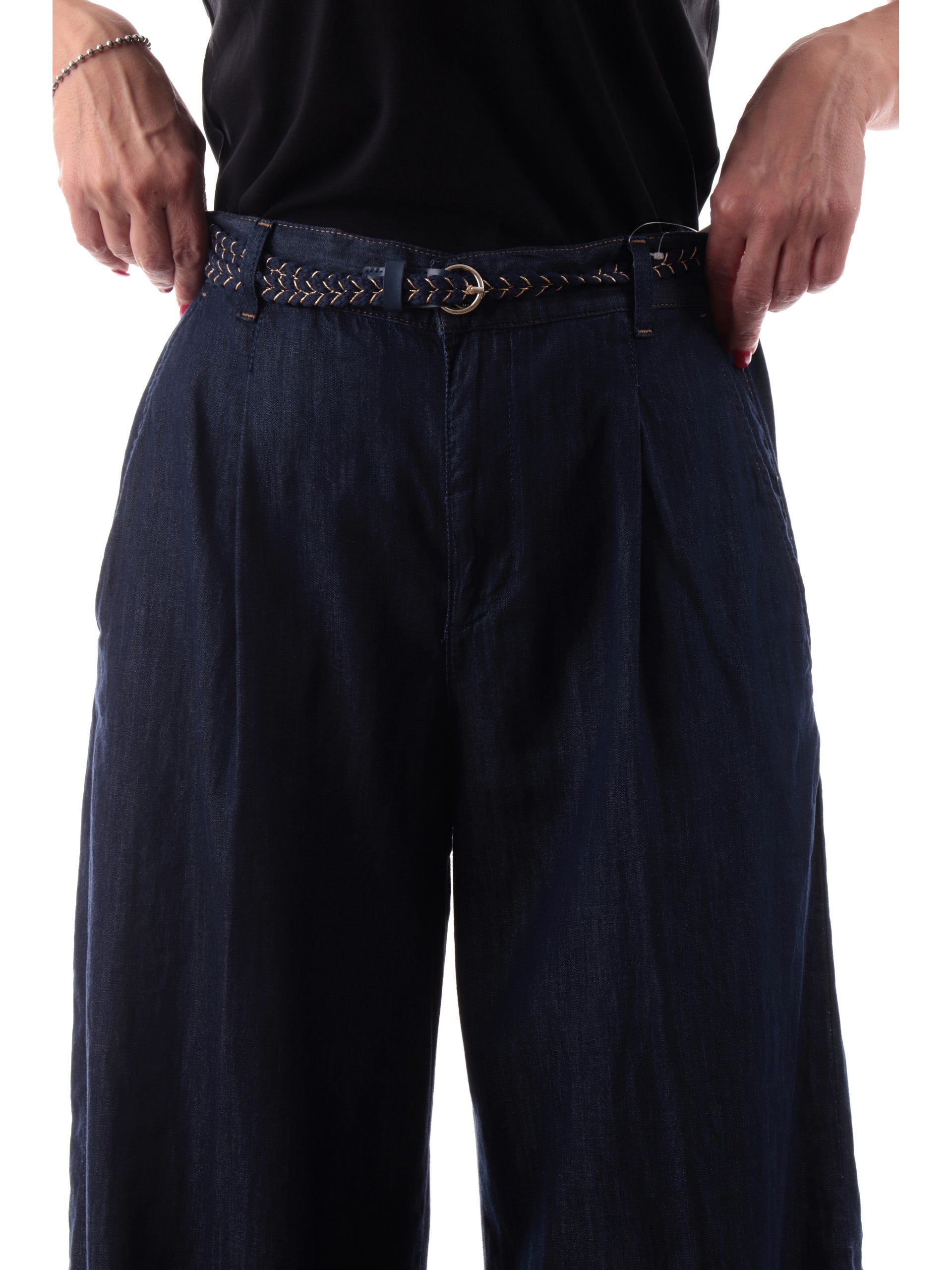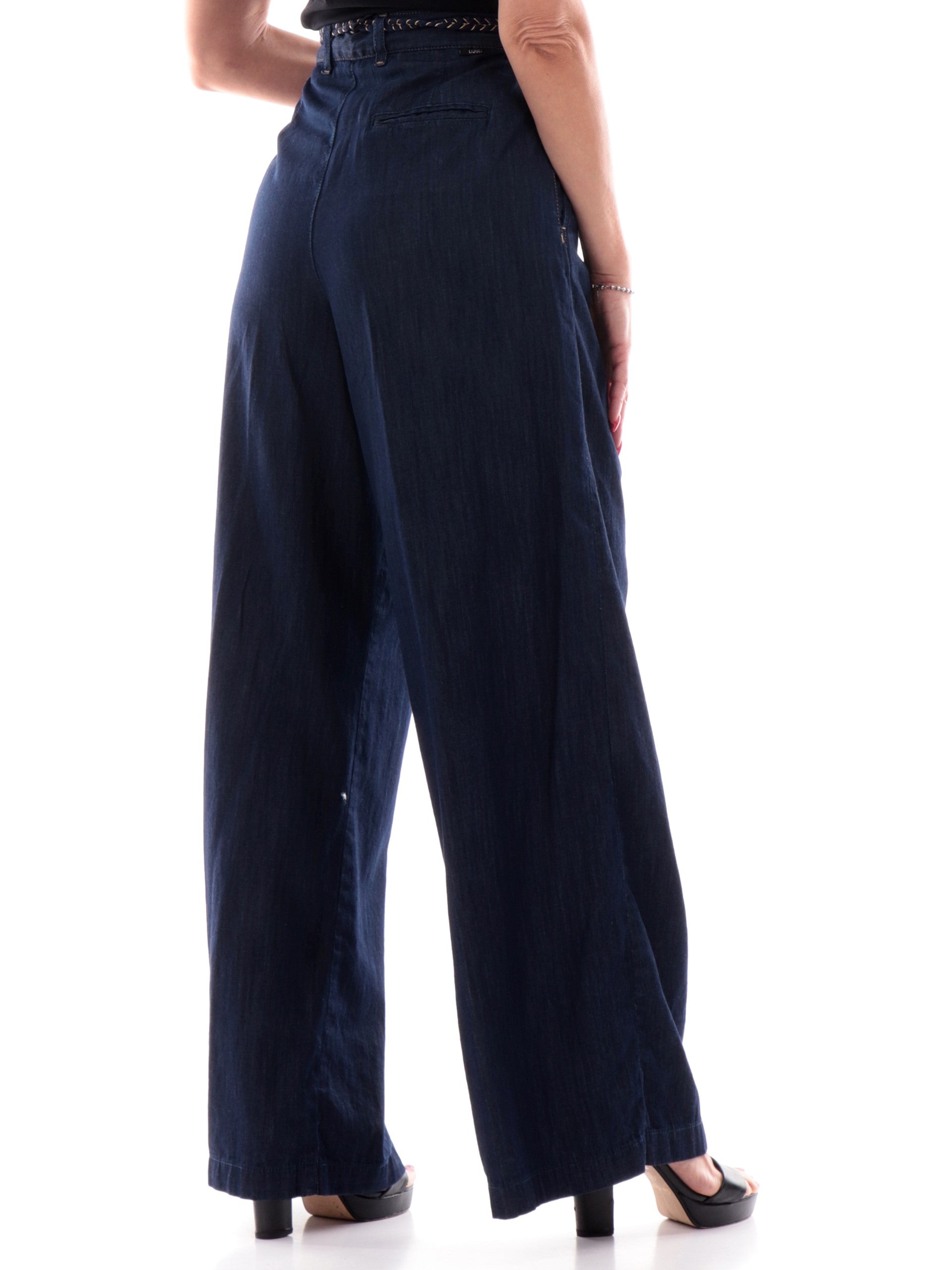 Jeans palazzo Liu Jo vita alta da donna vestibilità morbida UA5151D3202, realizzati in 100% puro cotone. Questi pantaloni palazzo Liu Jo hanno la chiusura con bottone più zip, la cintura logata rimovibile, due tasche laterali aperte con taglio obliquo, una tasca posteriore a filo e la vestibilità morbida.