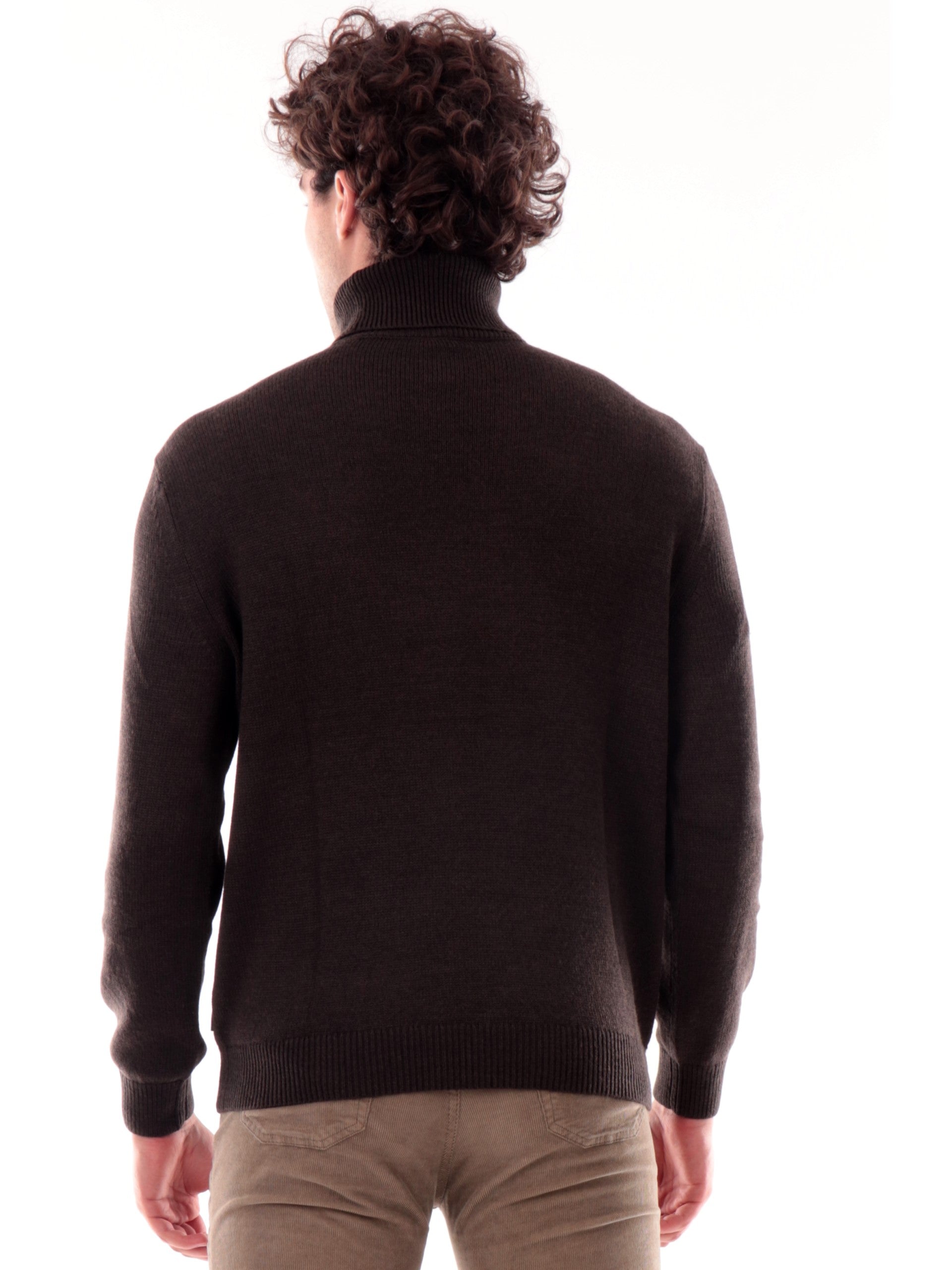 Maglione Armani Exchange AX marrone da uomo collo alto XM001917AF14008, realizzato in lana. Questo maglione AX marrone ha il collo alto, le maniche lunghe, polsini e fondo elasticizzati.