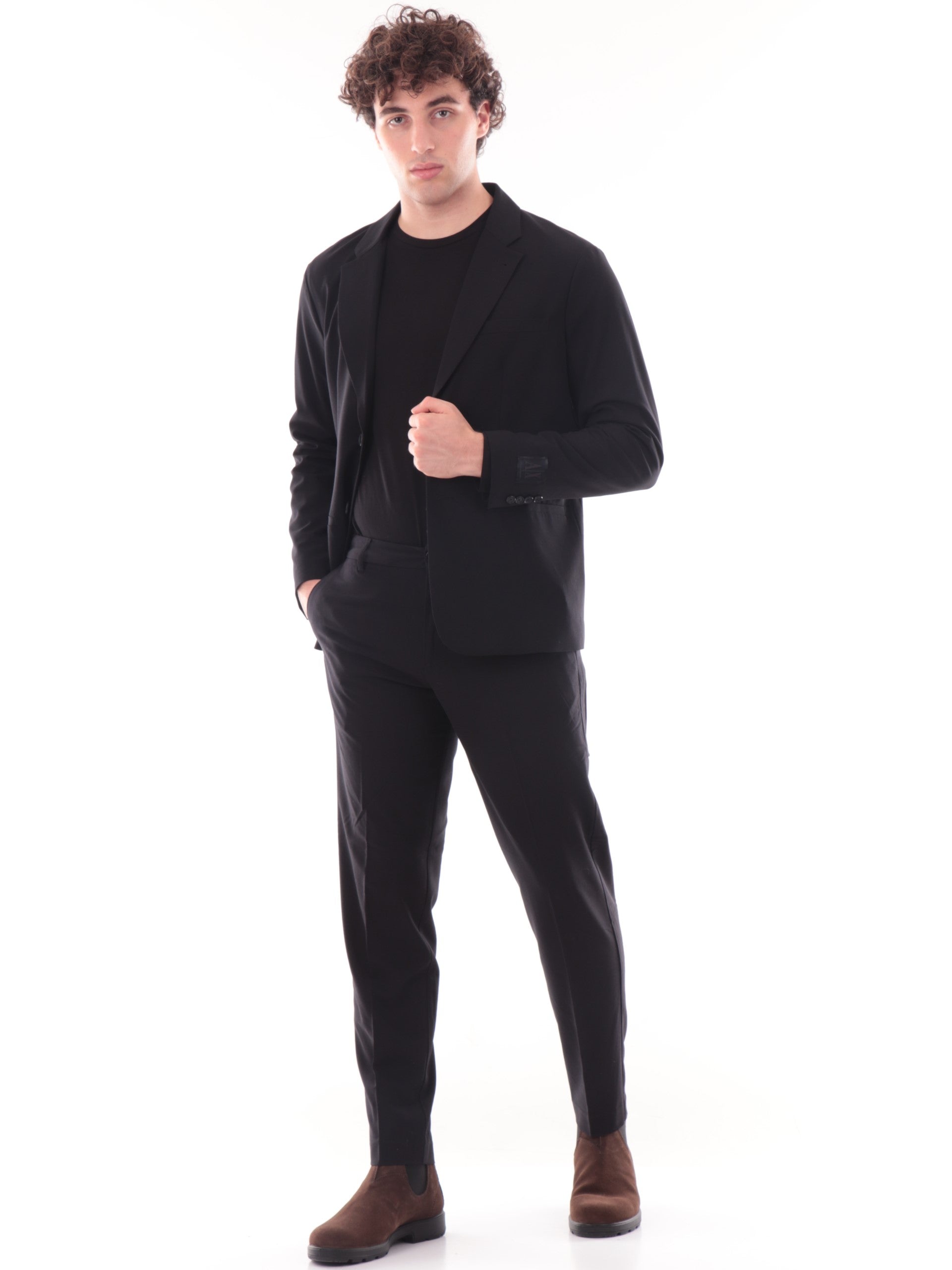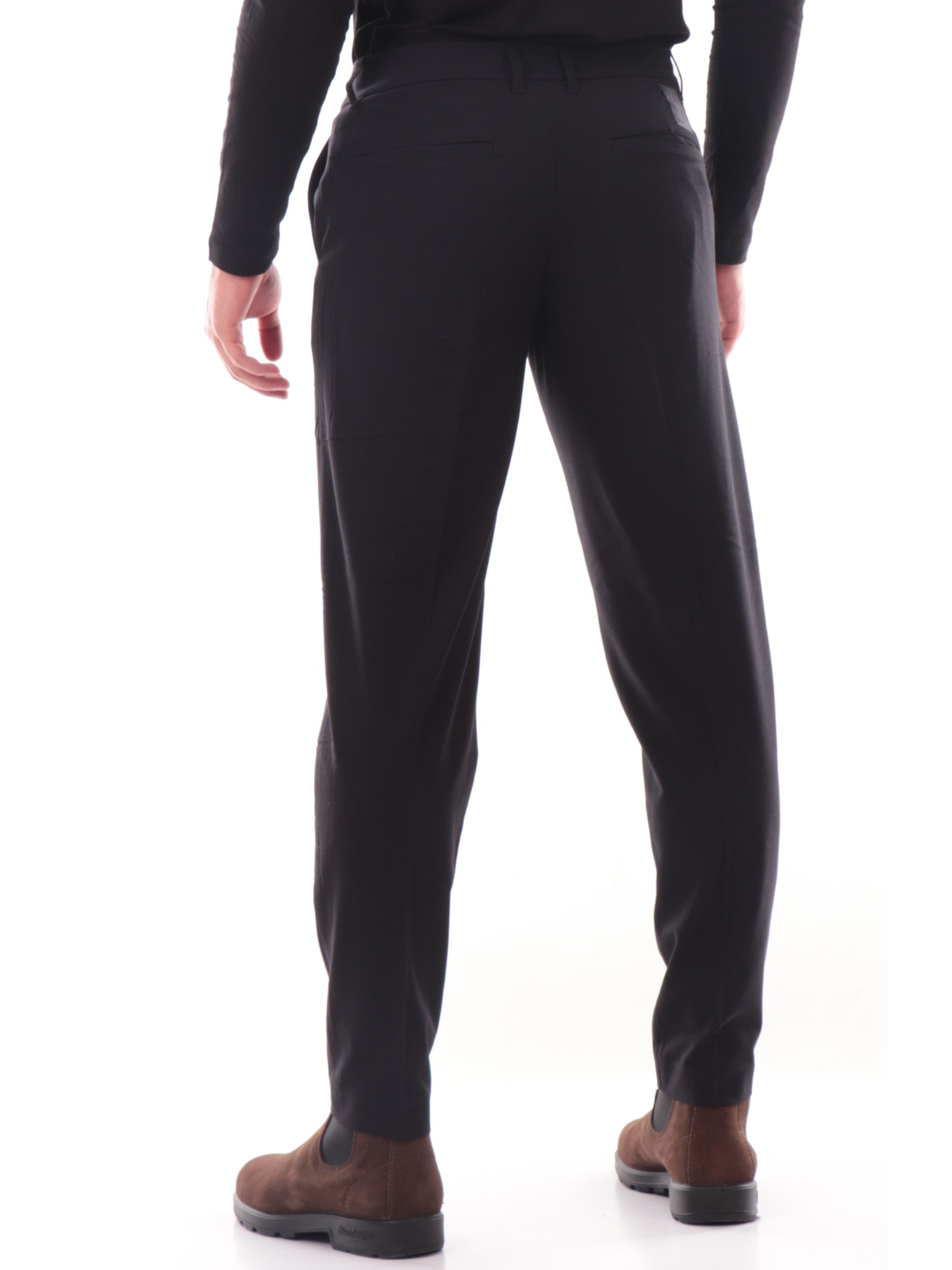 Pantaloni Armani Exchange AX neri da uomo eleganti XM0346AF10897. Questi pantaloni AX neri hanno la chiusura con bottone più zip, la predisposizione per indossare la cintura, due tasche laterali aperte con taglio obliquo, due tasche posteriori a filo con patch AX e le vestibilità regular.