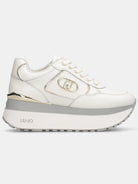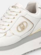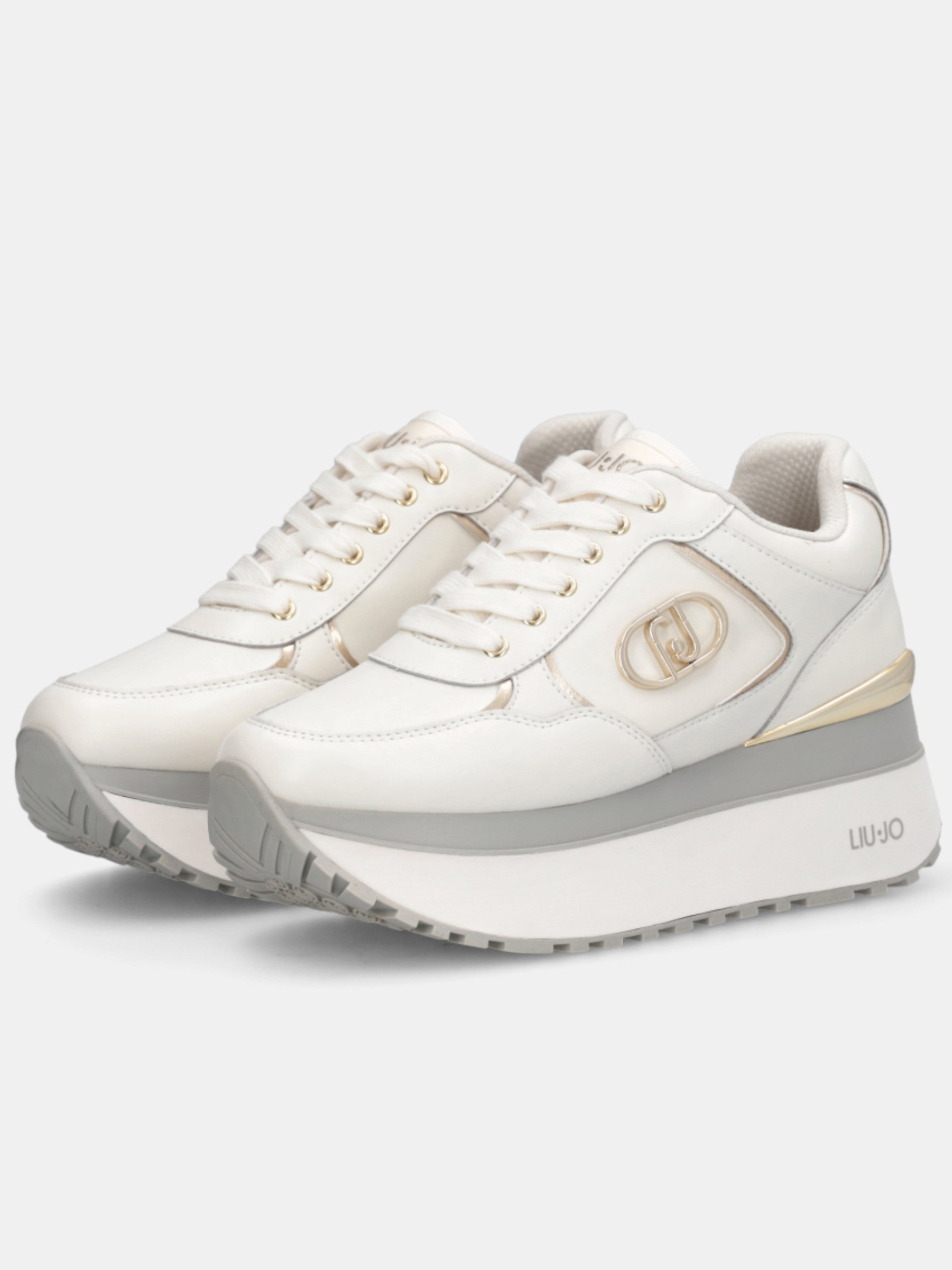 Scarpe Liu Jo panna Wonder Plus.Queste sneakers Liu Jo panna hanno la tomaia in pelle, la suola in gomma. Sul davanti troviamo la classica chiusura a lacci e il logo dorato. Caratterizzate da una comoda suola platform che garantisce il massimo comfort