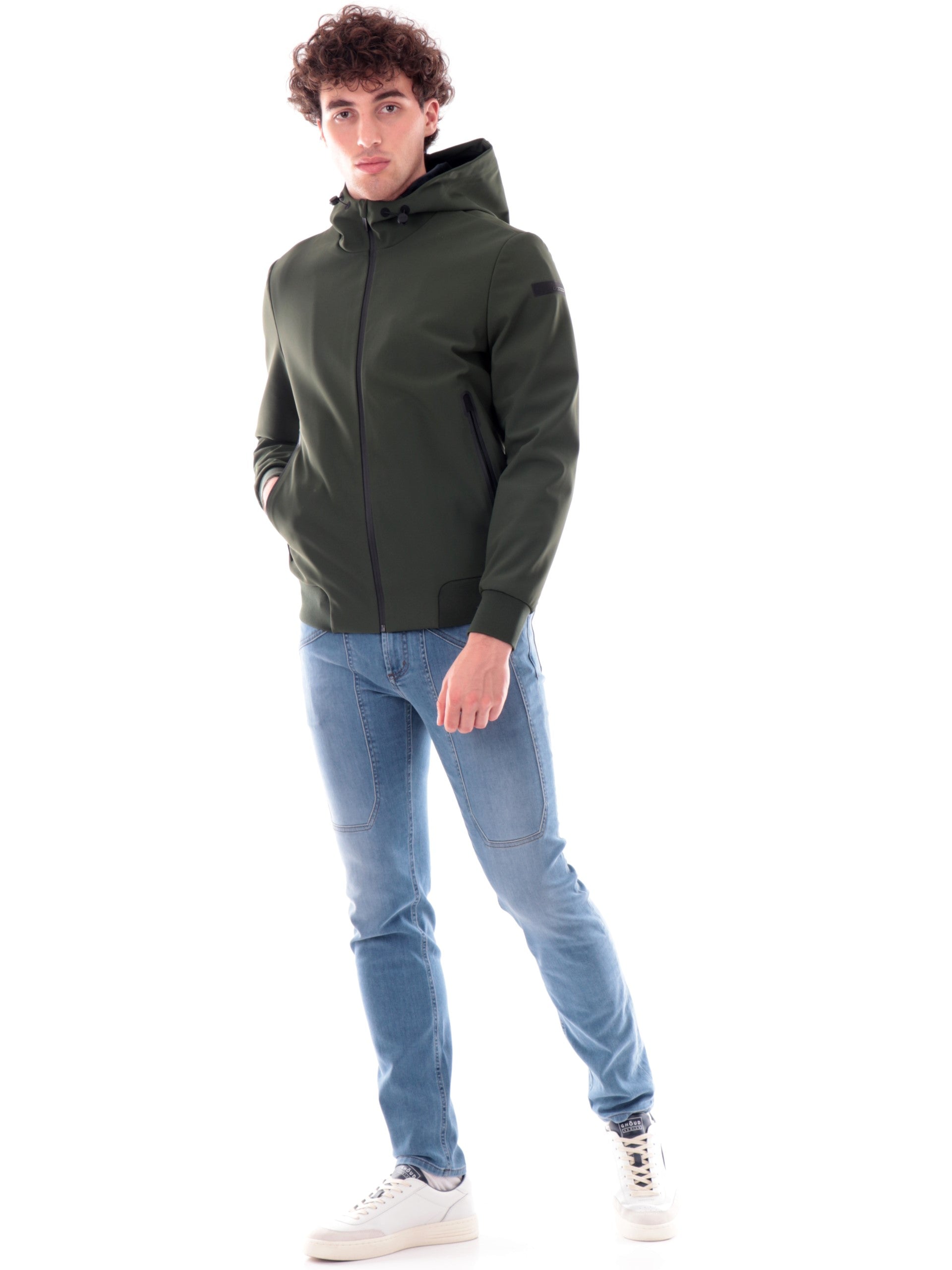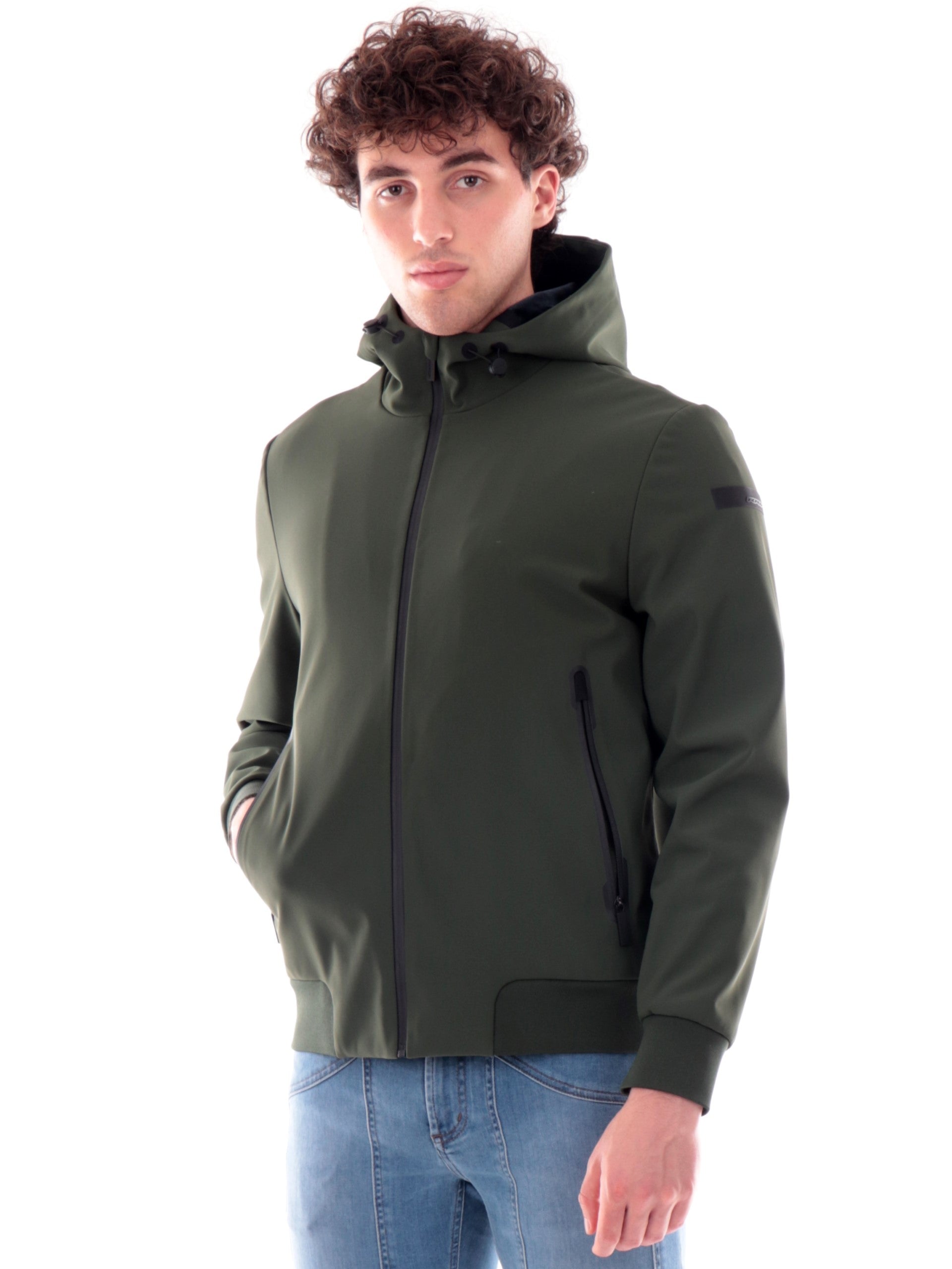 Giubbotto RRD verde da uomo con cappuccio fisso regolabile con coulisse W2504421