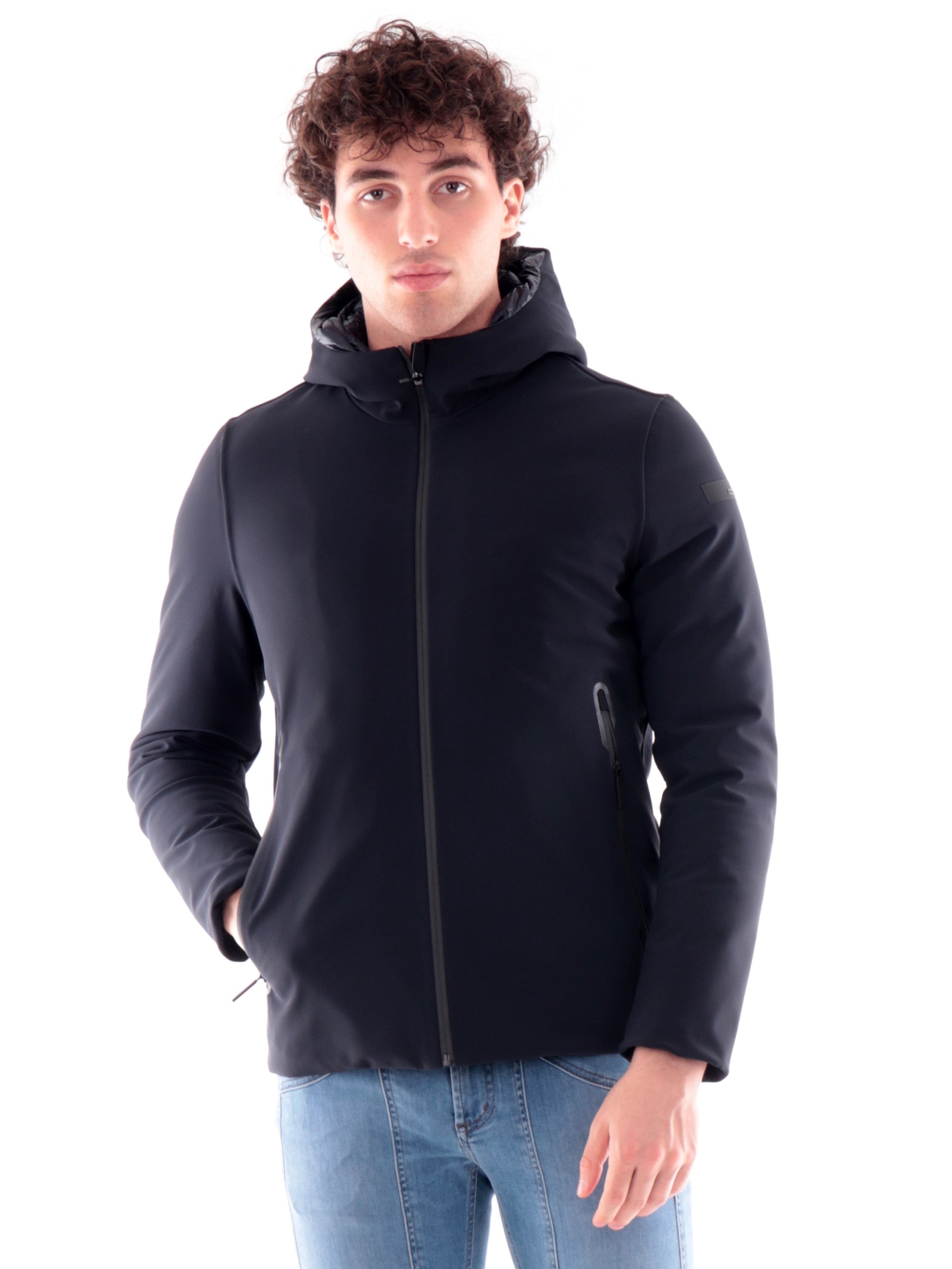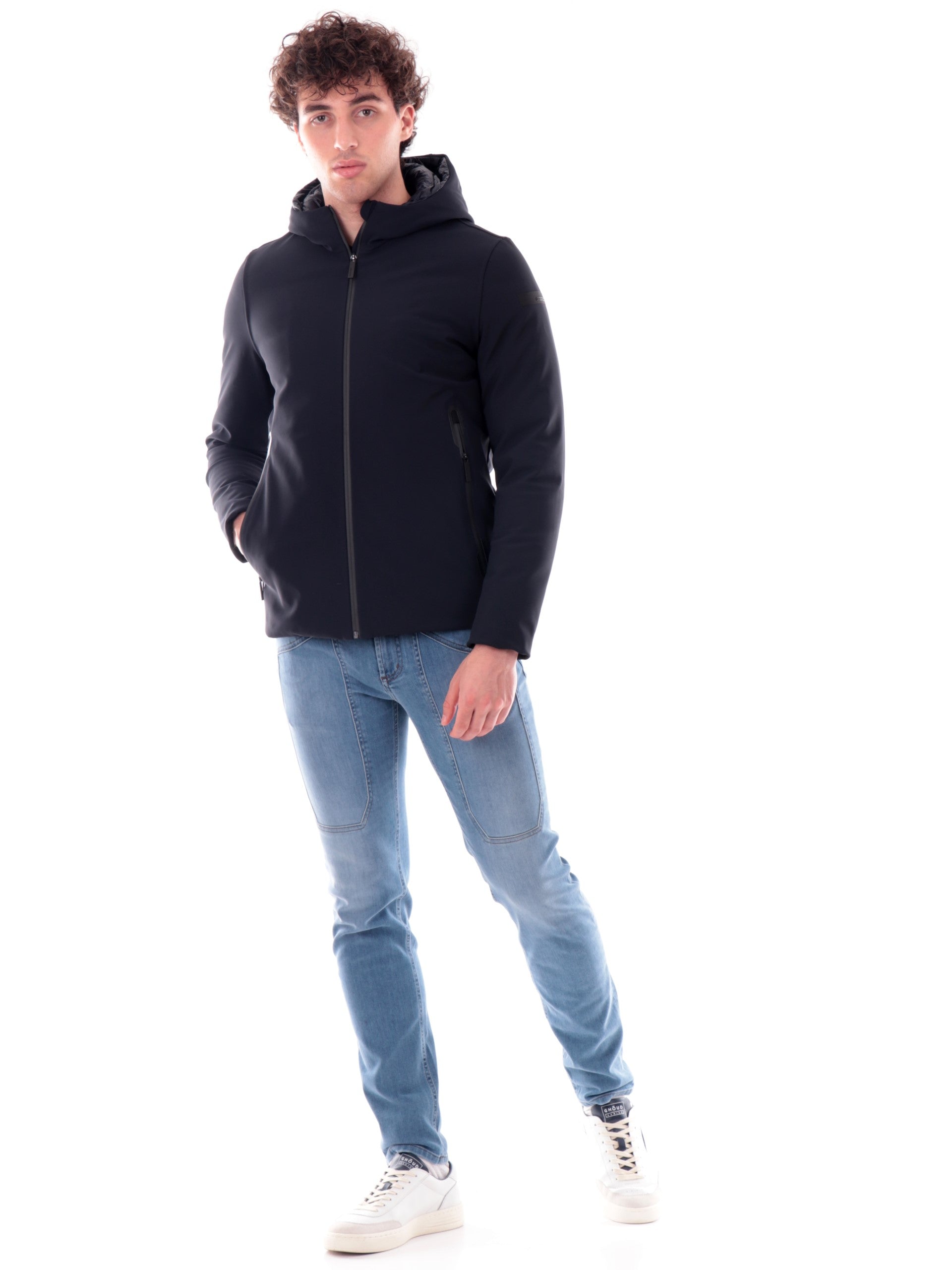 Giaccone RRD blu black da uomo Winter Storm. Questa giacca RRD blu da uomo è realizzata da un tessuto tecnico resistente all'acqua. Questo giubbotto RRD ha il cappuccio fisso, la chiusura full zip centrale, due tasche laterali con zip, una tasca interna con zip, il logo gommato del brand sulla manica sinistra, polsini e fondo regolari. Questo cappotto ha l'imbottitura in piuma naturale perfetto per la stagione invernale