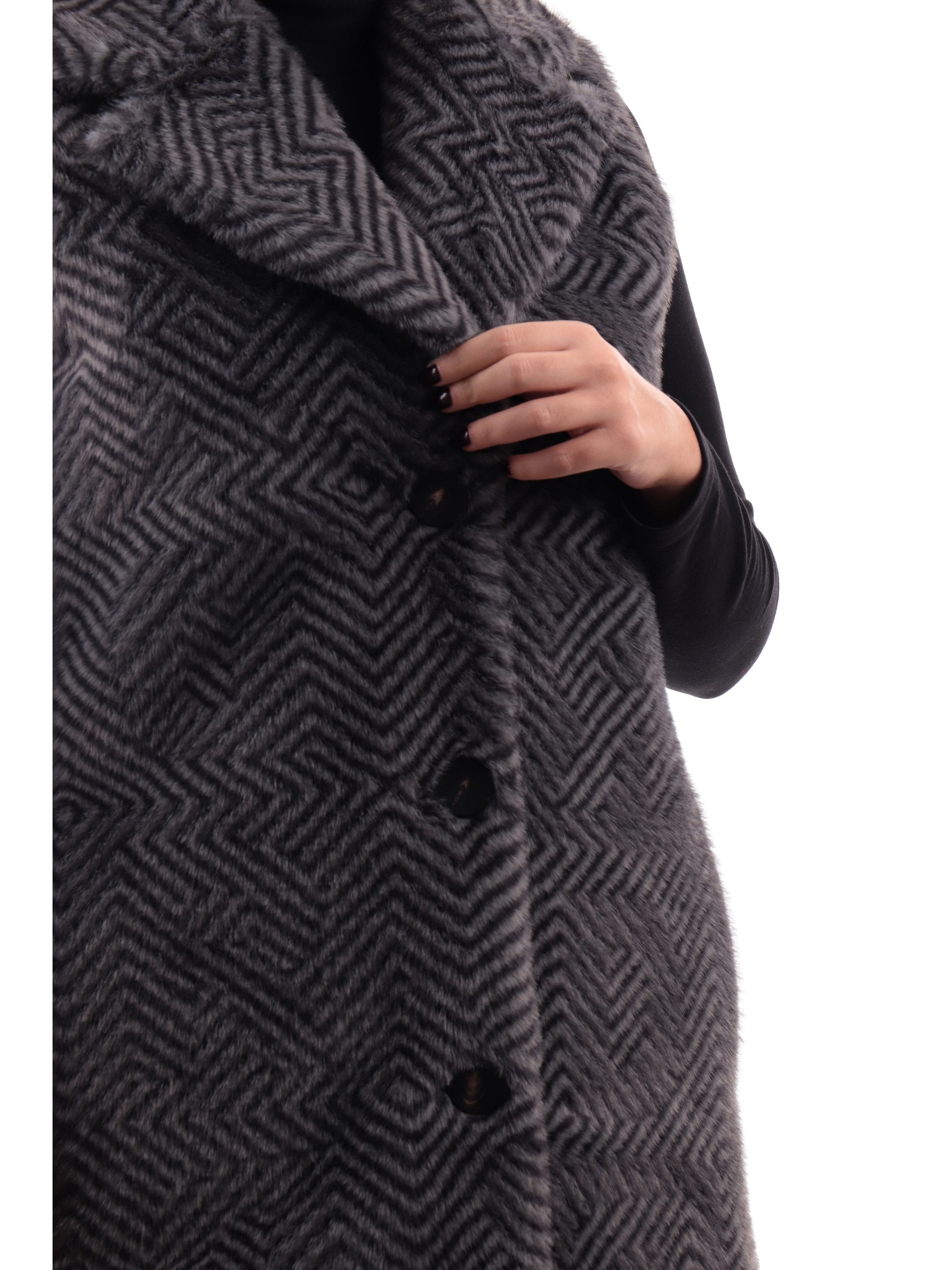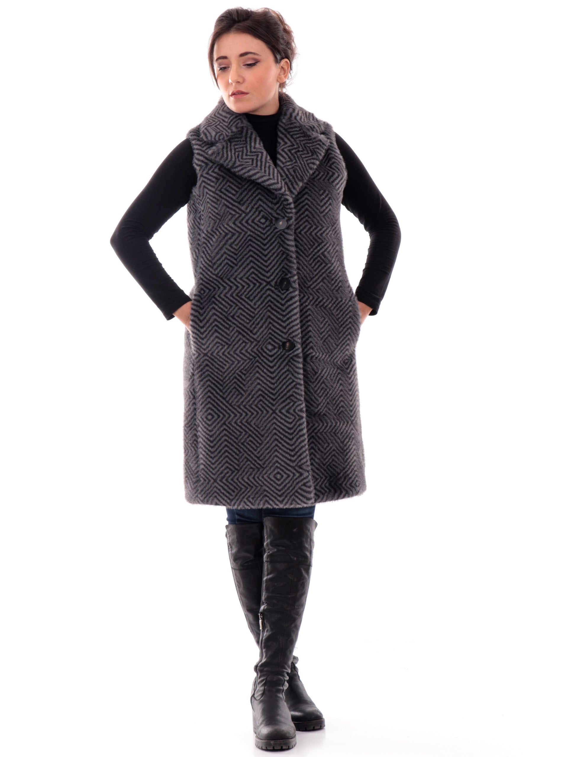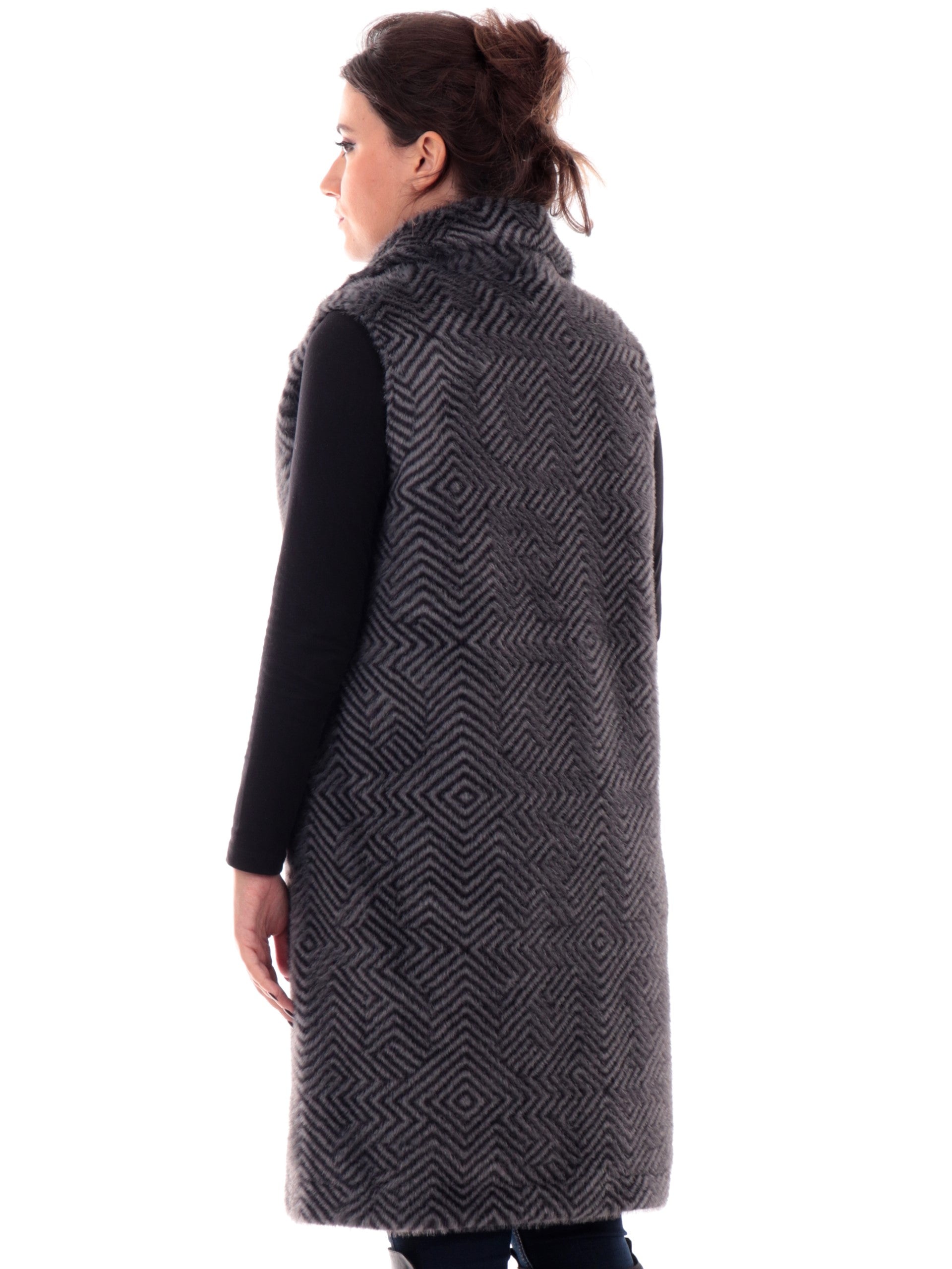 Gilet RRD donna Lungo Ecorazzo Zig zag grigio e nero W24516-13