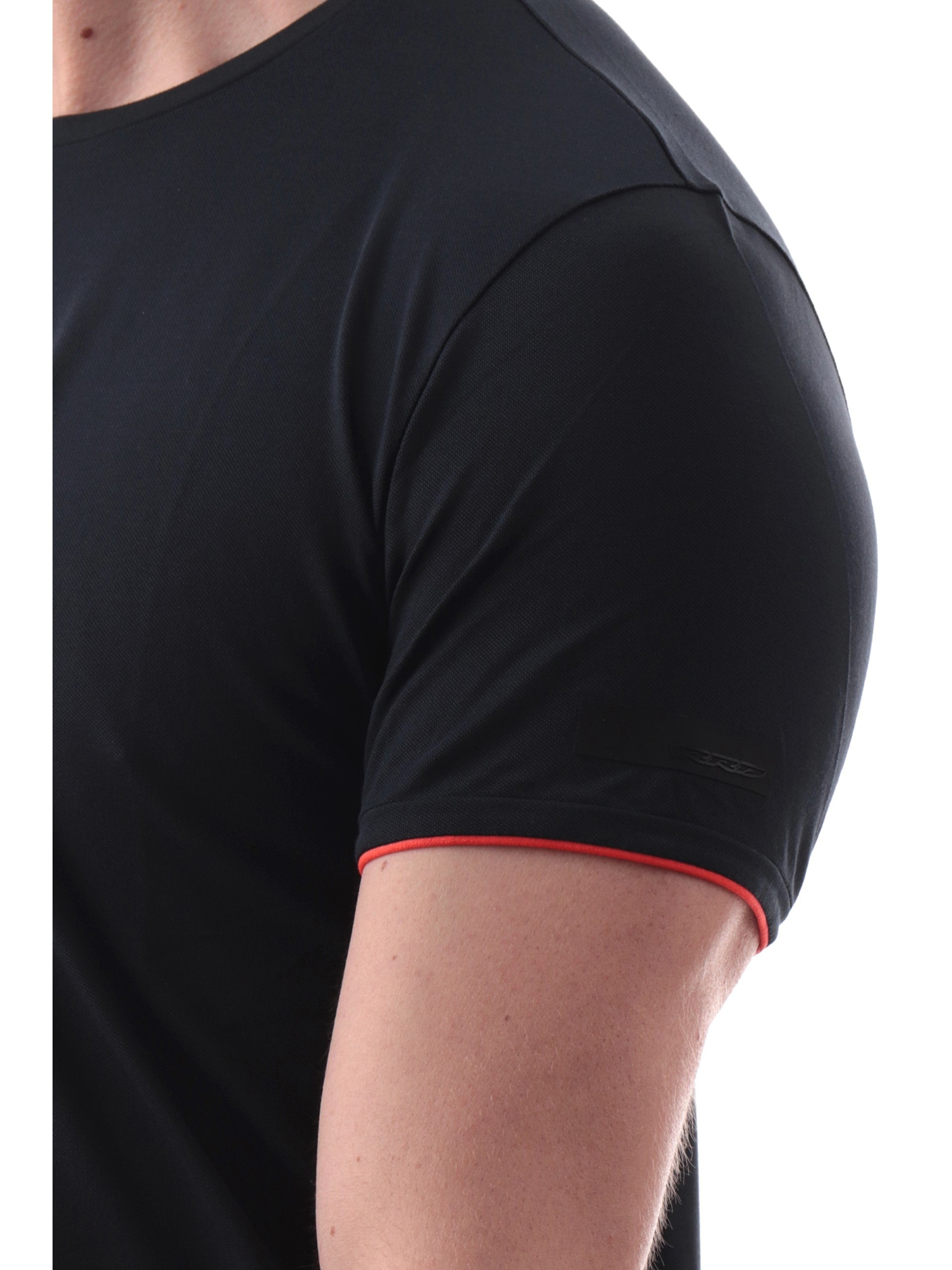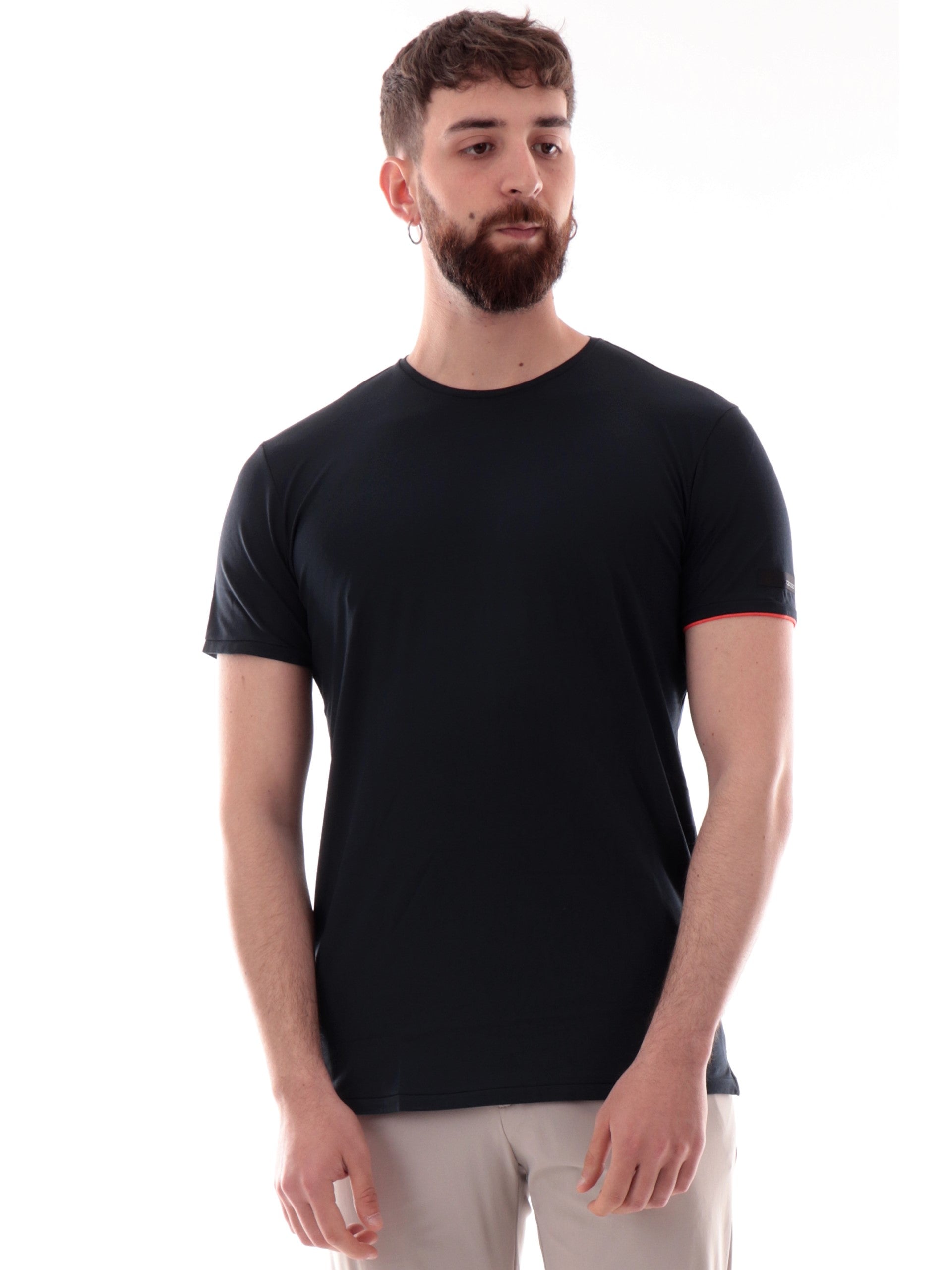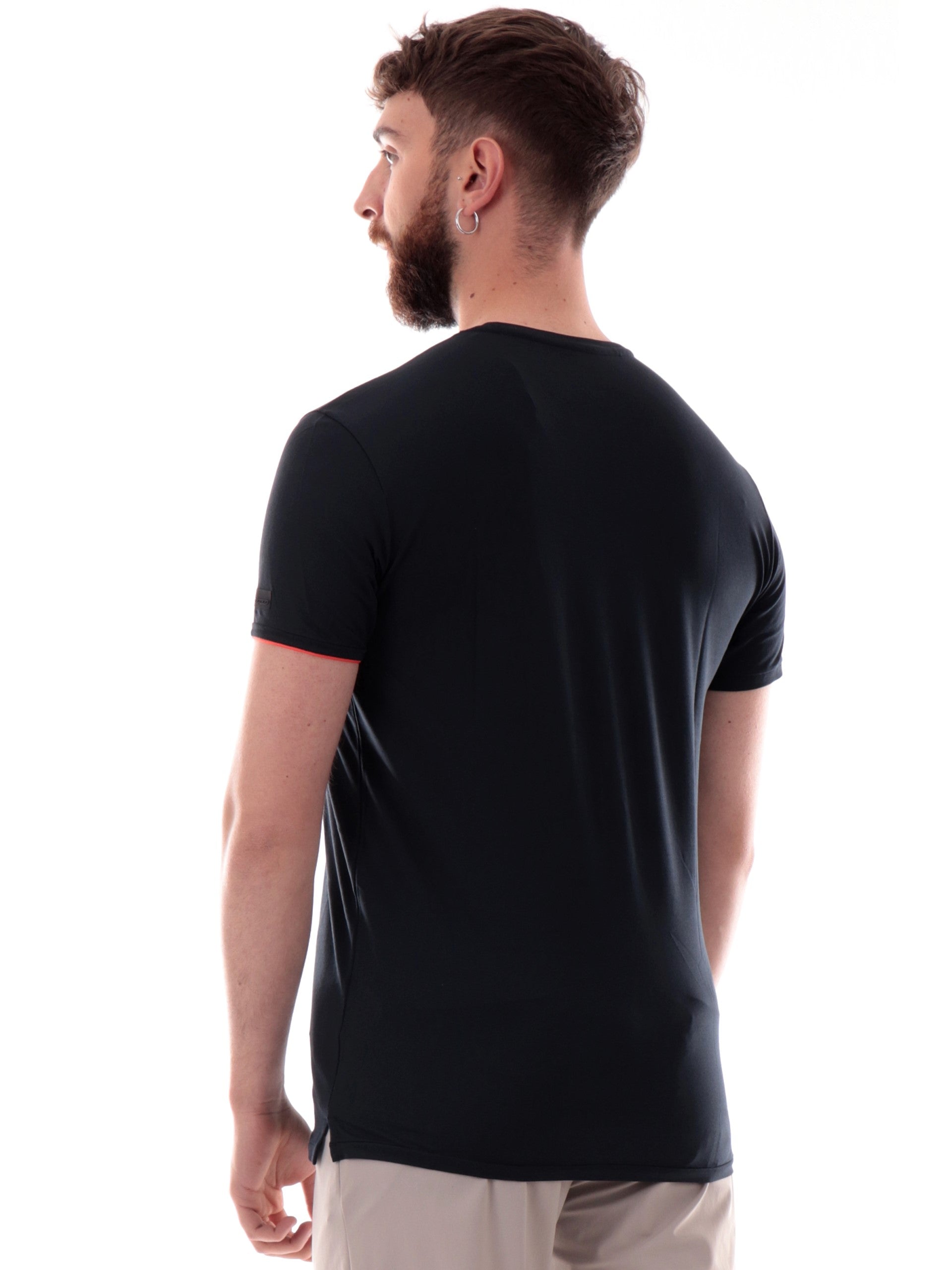 Maglia RRD nera Macro Shirty da uomo con patch sulla manica 25202, realizzata in tessuto tecnico. Questa t-shirt RRD nera girocollo ha le maniche corte, la vestibilità Slim e il patch RRD applicato sulla manica sinistra.