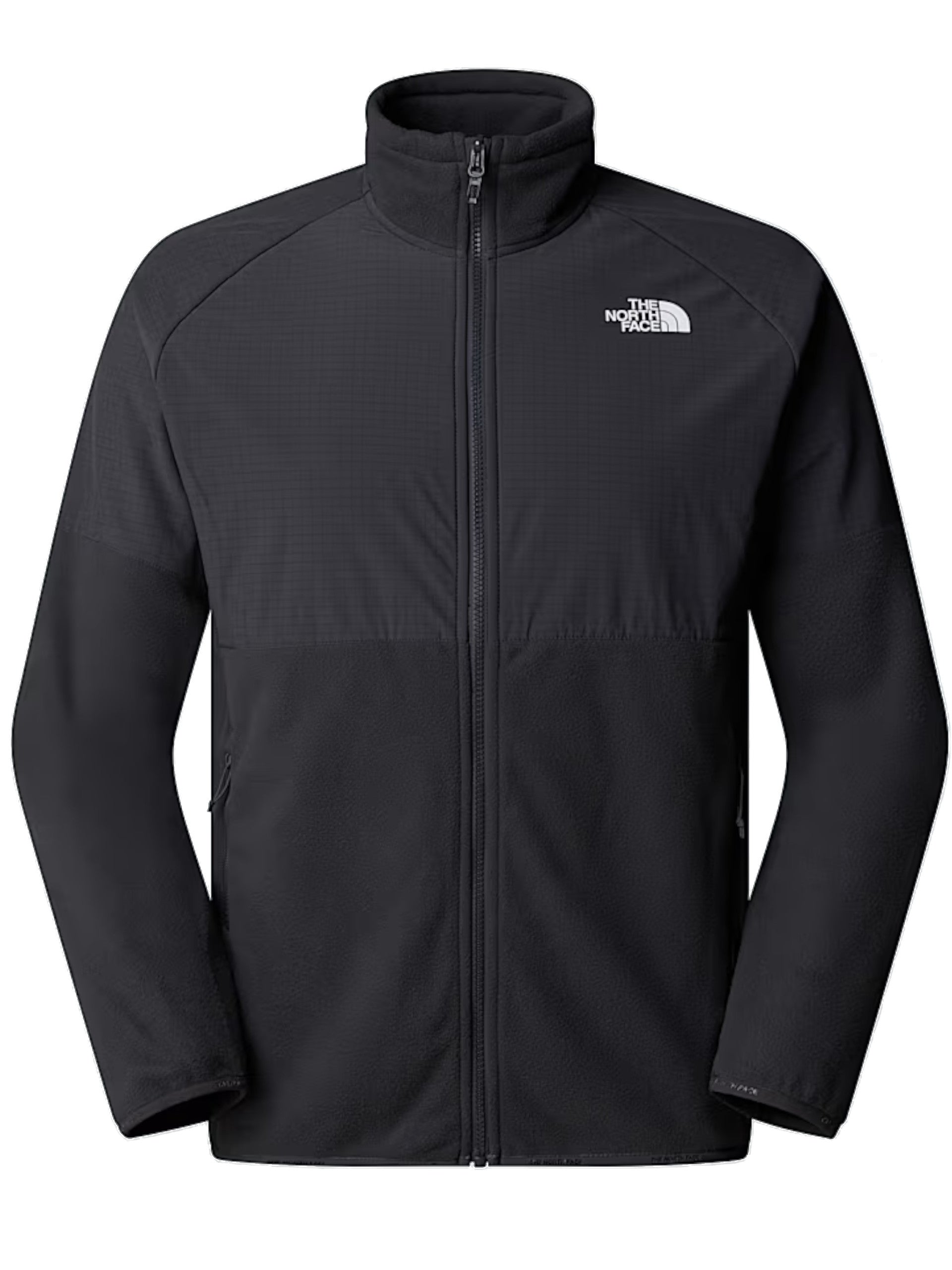 Pile North Face grigio da uomo realizzato in tessuto morbido con inserti in materiale tecnico Glacier. Questo pile North Face da neve ha lo scaldacollo, la chiusura full zip centrale, due tasche laterali con zip, il logo del brand sul cuore a contrasto colore, i polsini e il fondo elasticizzati.