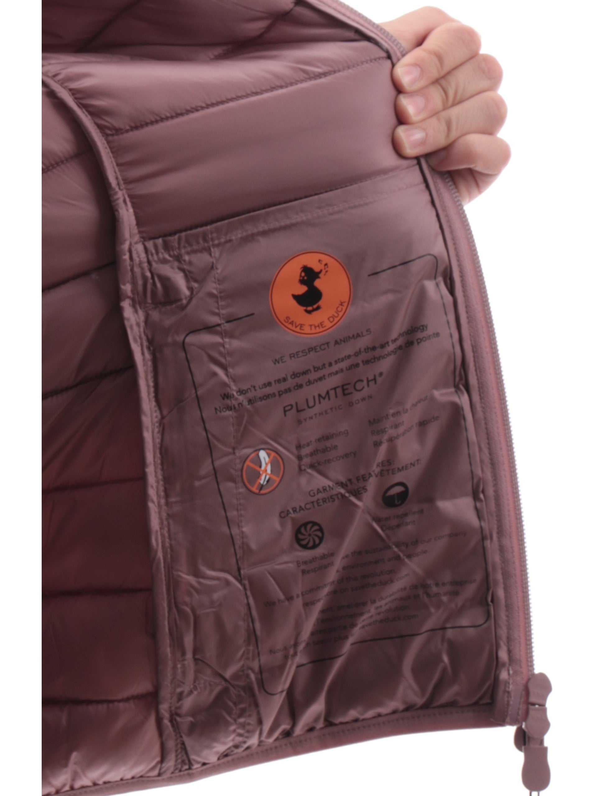 Giubbino Save The Duck rosa cipria da donna Alexis D33620WIRIS . Questo piumino Save The Duck cipria ha la chiusura full zip doppio cursore fino al cappuccio, due tasche laterali con zip a filo, polsini e fondo elasticizzati ed il patch gommato del brand applicato sulla manica sinistra tono su tono .