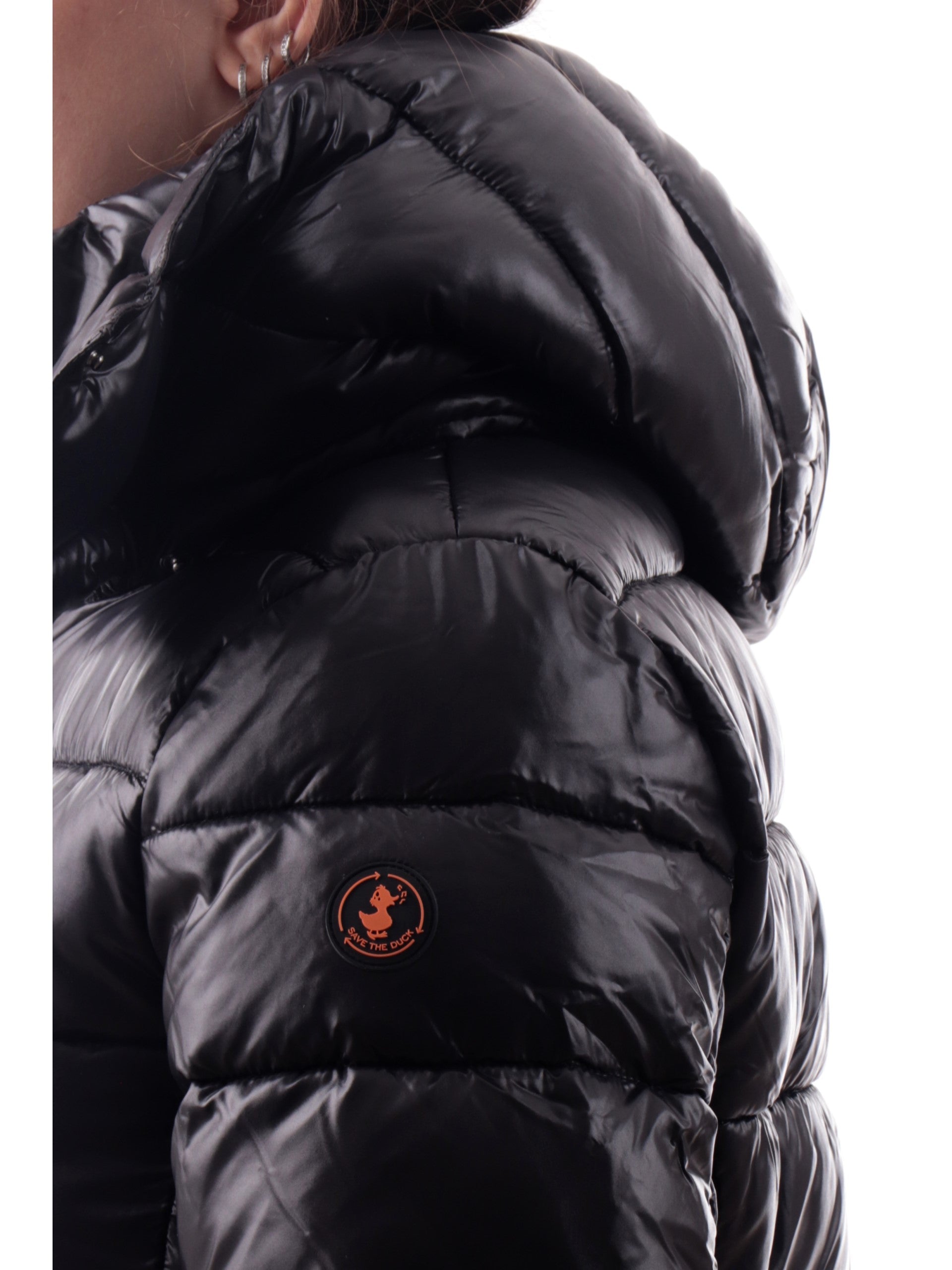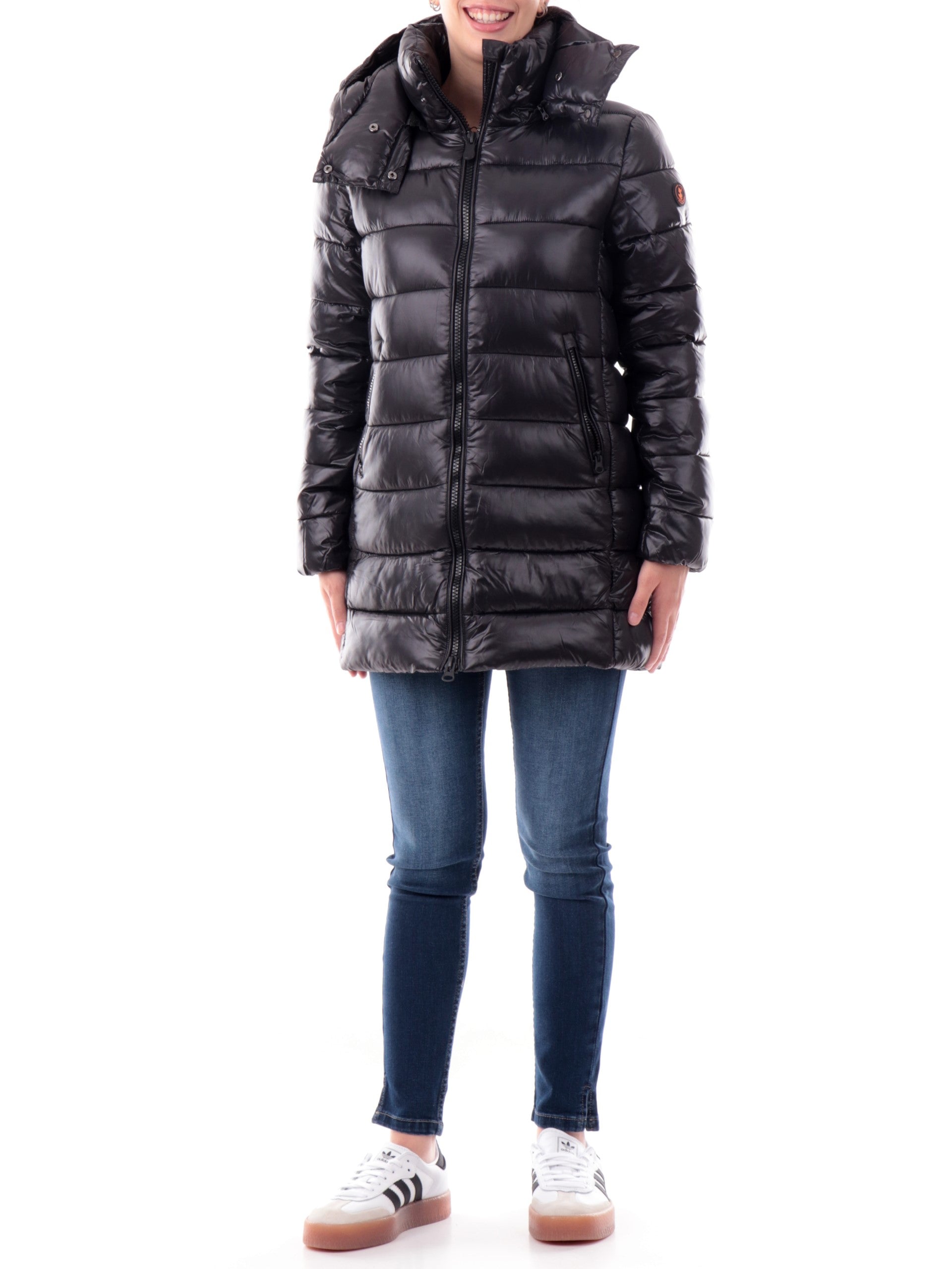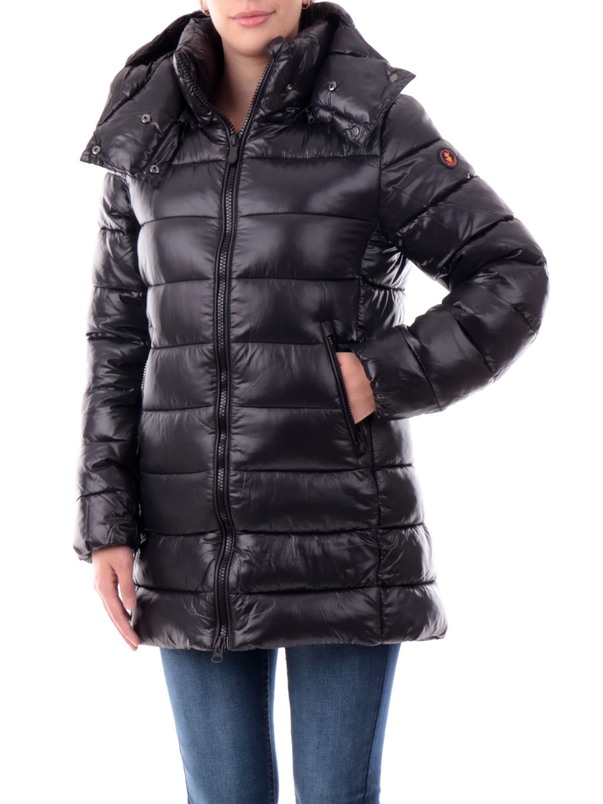Piumino save the Duck lungo nero lucido da donna modello Marjorie. Le caratteristiche del piumino lungo Marjorie Save the Duck nero lucido sono il cappuccio removibile, il collo anti vento, le linee sagomate e femminili. Questo cappotto donna Save the duck è l'unione tra praticità e linee femminili :un vero must have per questo inverno.