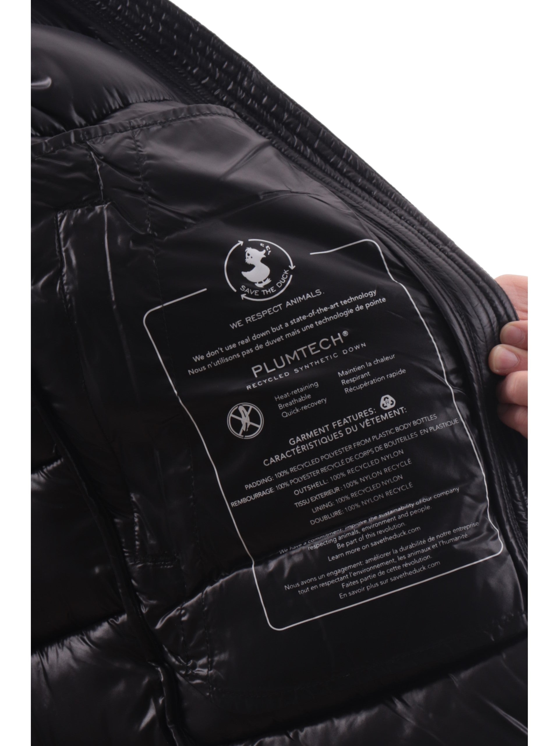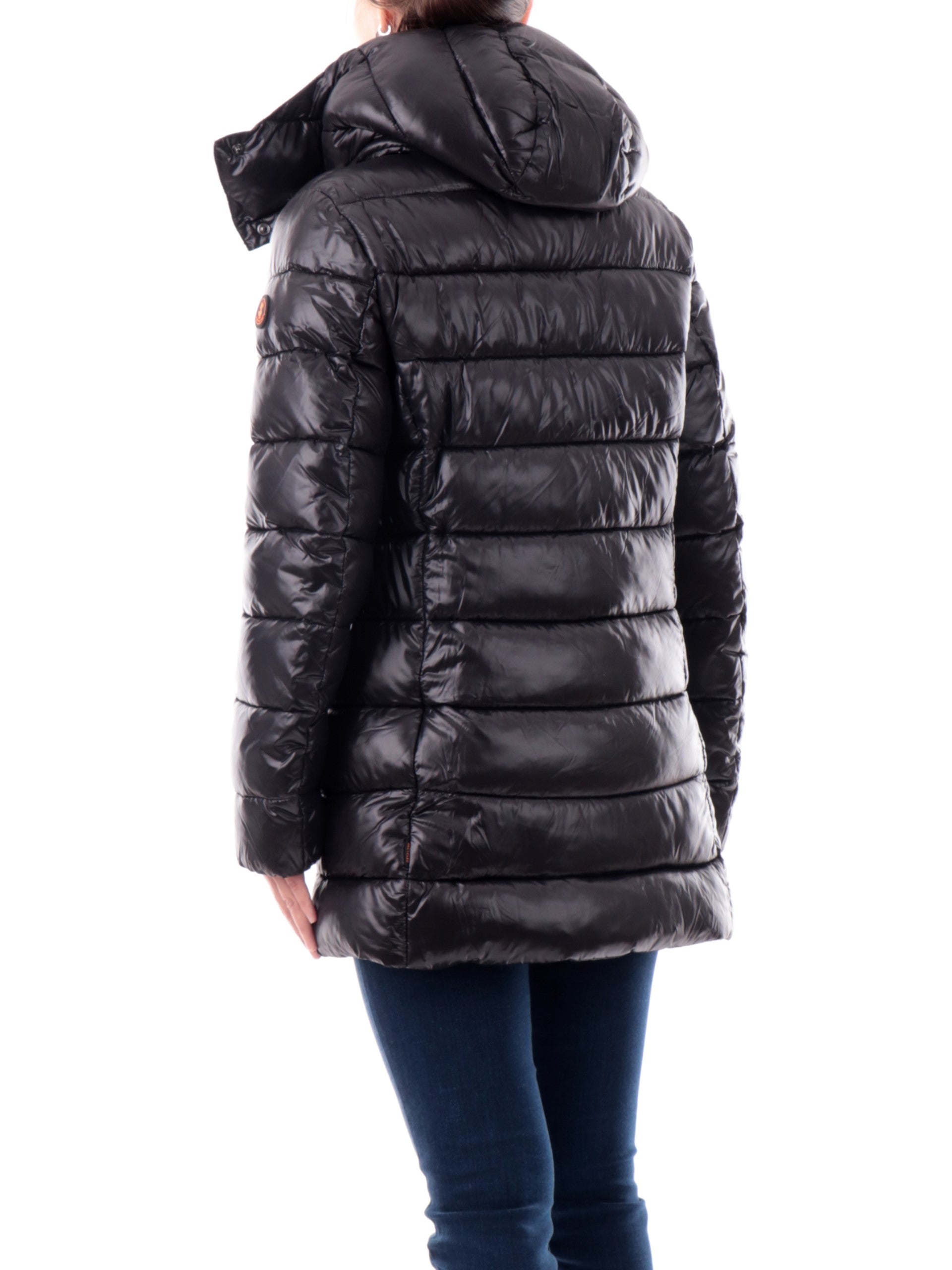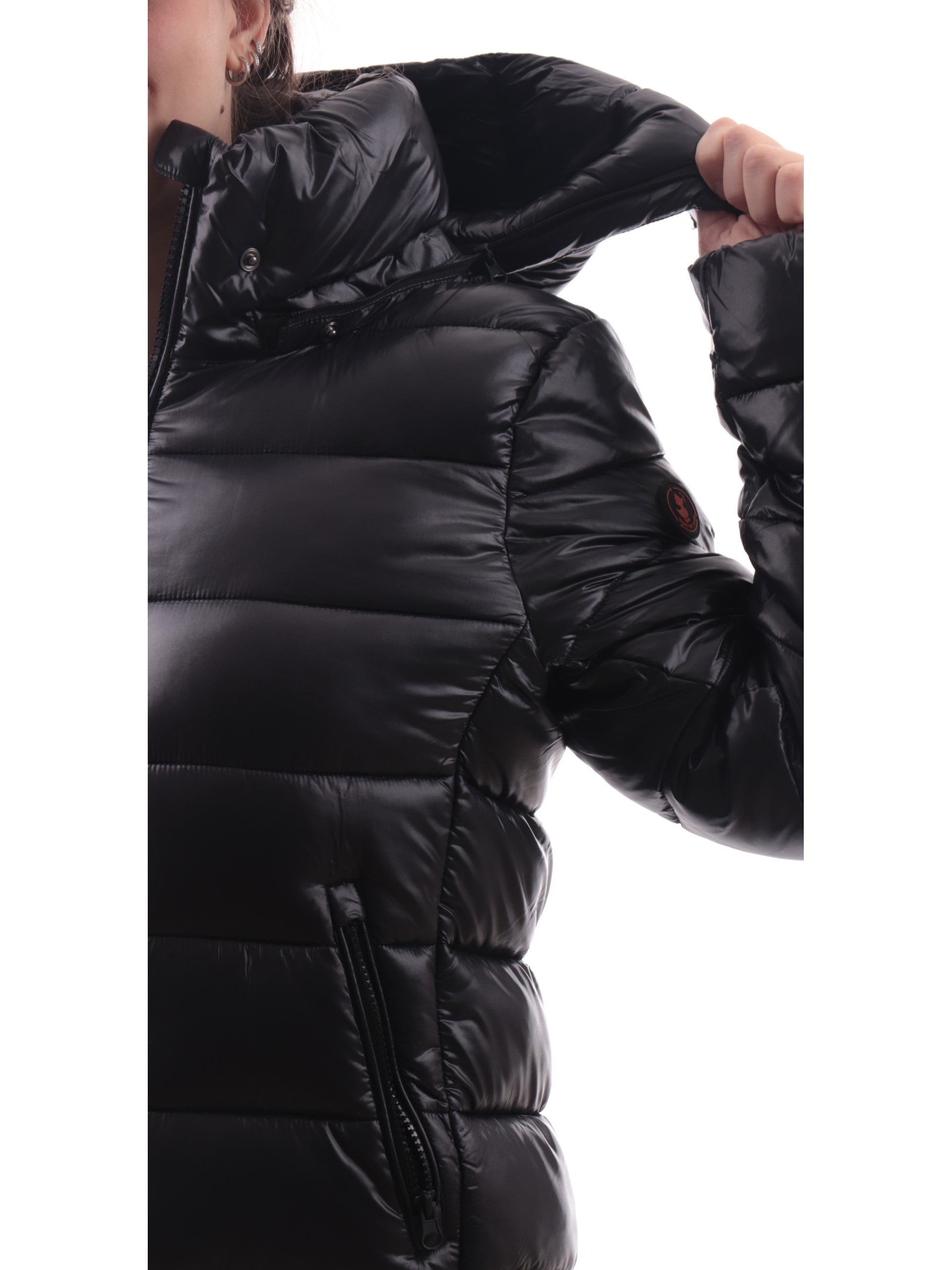 Piumino save the Duck lungo nero lucido da donna modello Marjorie. Le caratteristiche del piumino lungo Marjorie Save the Duck nero lucido sono il cappuccio removibile, il collo anti vento, le linee sagomate e femminili. Questo cappotto donna Save the duck è l'unione tra praticità e linee femminili :un vero must have per questo inverno.
