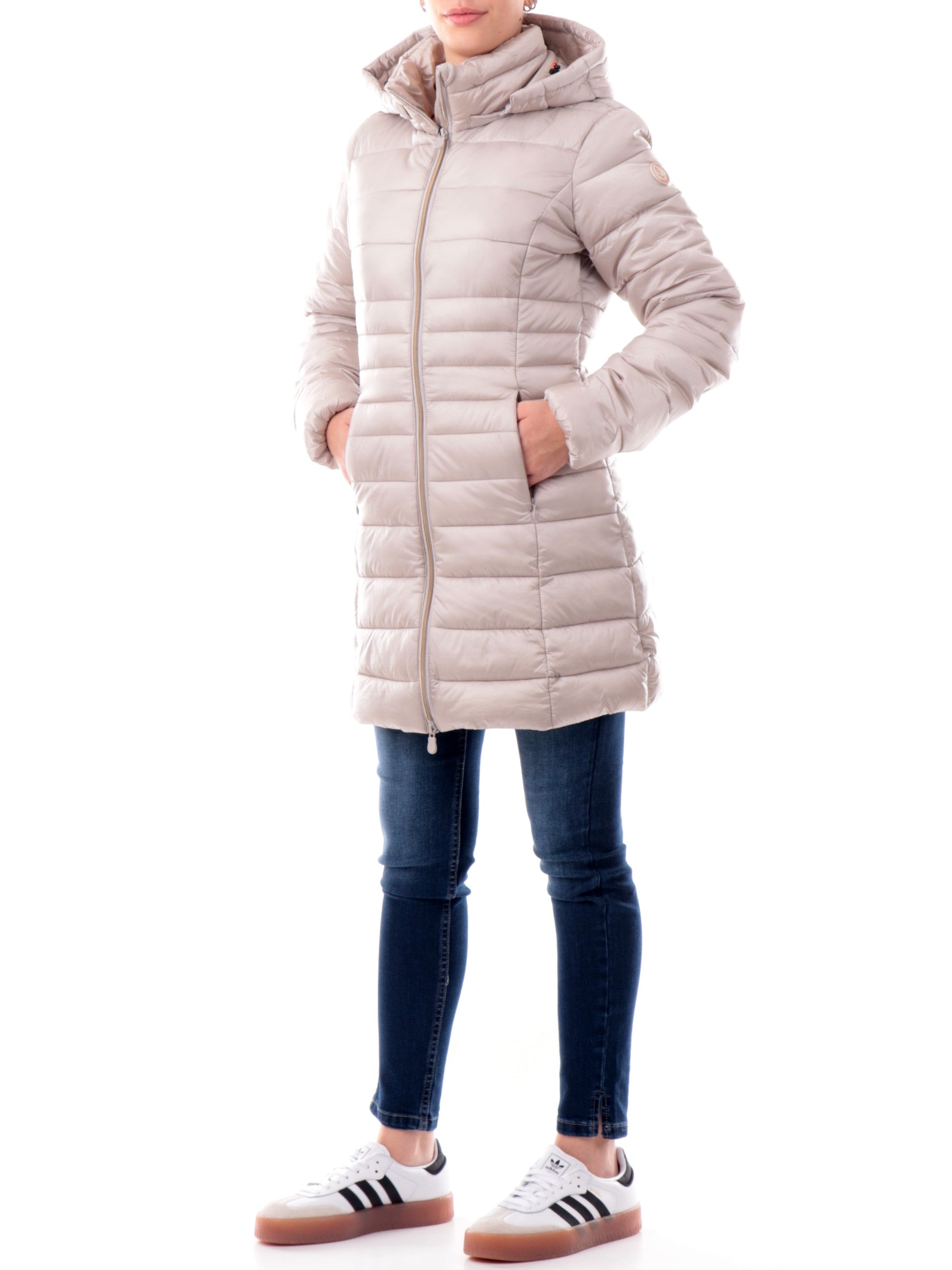 Piumino save the Duck lungo Beige da donna modello REESE. Le caratteristiche del piumino lungo REESE Save the Duck sono il cappuccio removibile, il collo anti vento, le linee sagomate e femminili. Questo cappotto donna Save the duck è l'unione tra praticità e linee femminili :un vero must have per questo inverno.