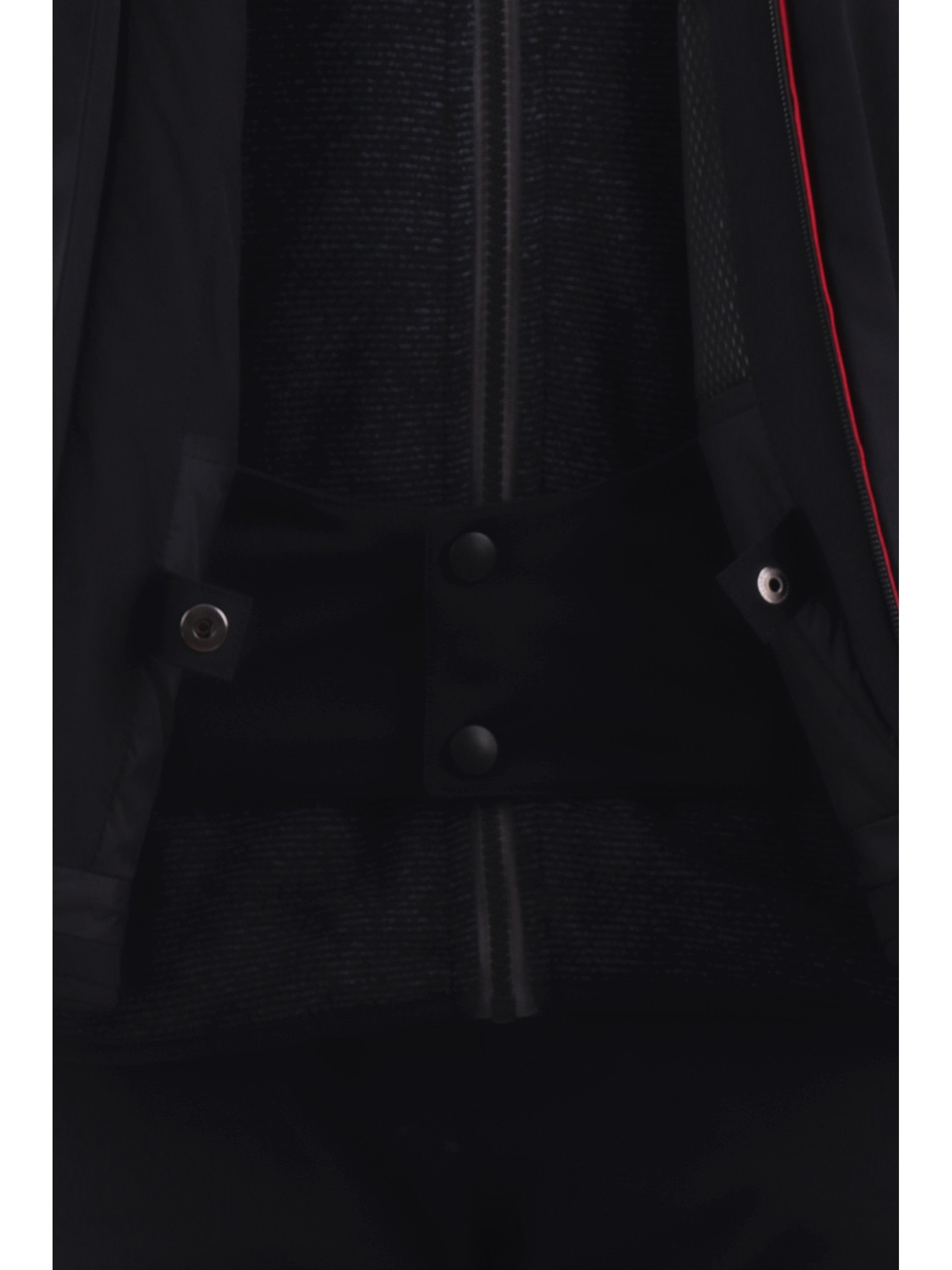Giacca sci ZeroRH nera da uomo Dorado INU3135, realizzata in tessuto tecnico antineve e impermeabile. Questa giacca neve ZeroRH nera ha il cappuccio fisso, la chiusura full zip centrale, cinque tasche frontali con zip, una tasca sulla manica sinistra per lo skipass, la ghetta interna elasticizzata e il logo del brand a contrasto colore.