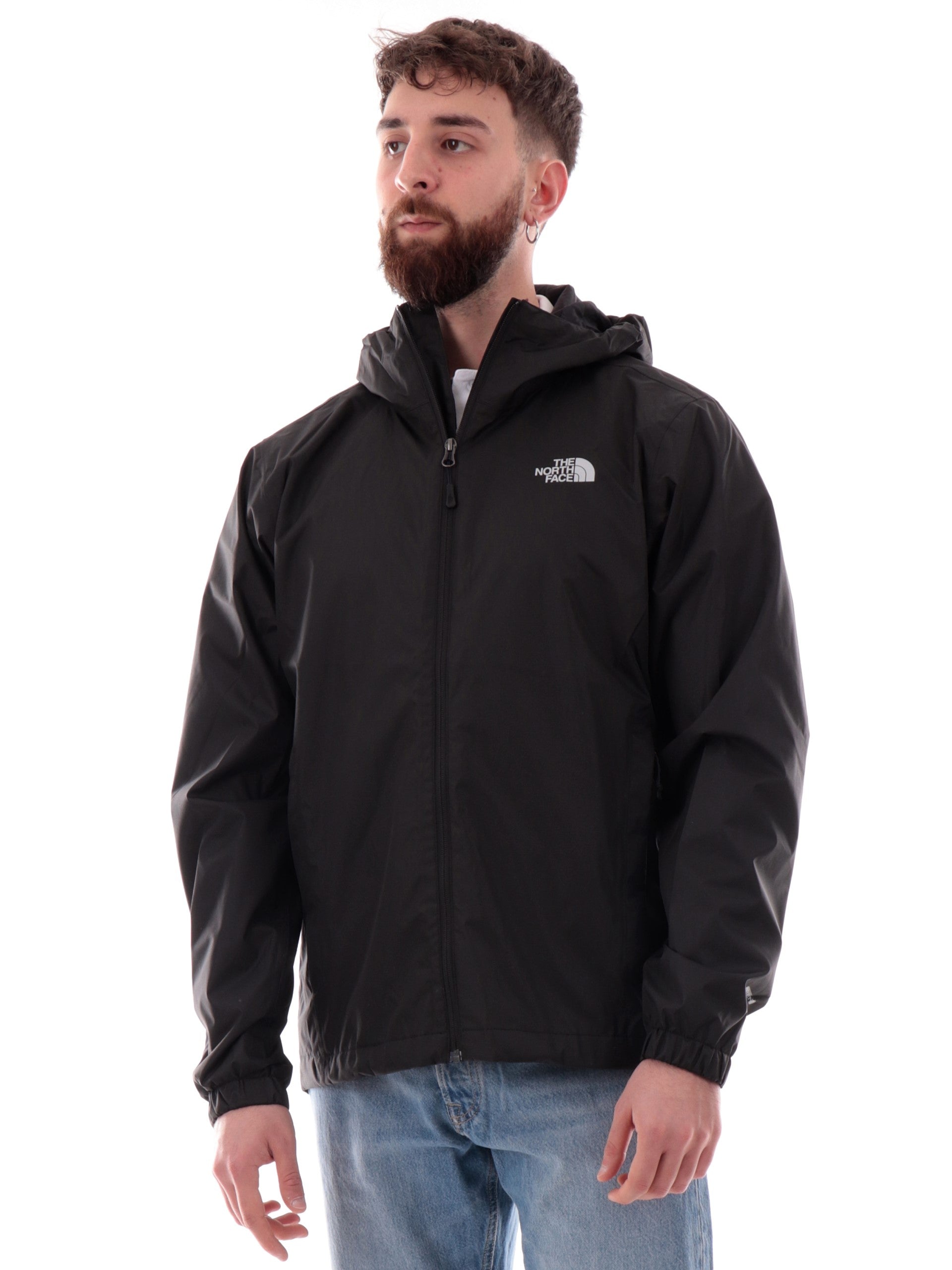 Giacca The North Face tecnica Quest nera da uomo full zip con cappuccio NF00A8AZ. Questa giacca North Face uomo ha il cappuccio fisso, la chiusura full zip centrale, due tasche laterali con zip nascosta da una patta, il logo North Face sul cuore, polsini e fondo elasticizzati.