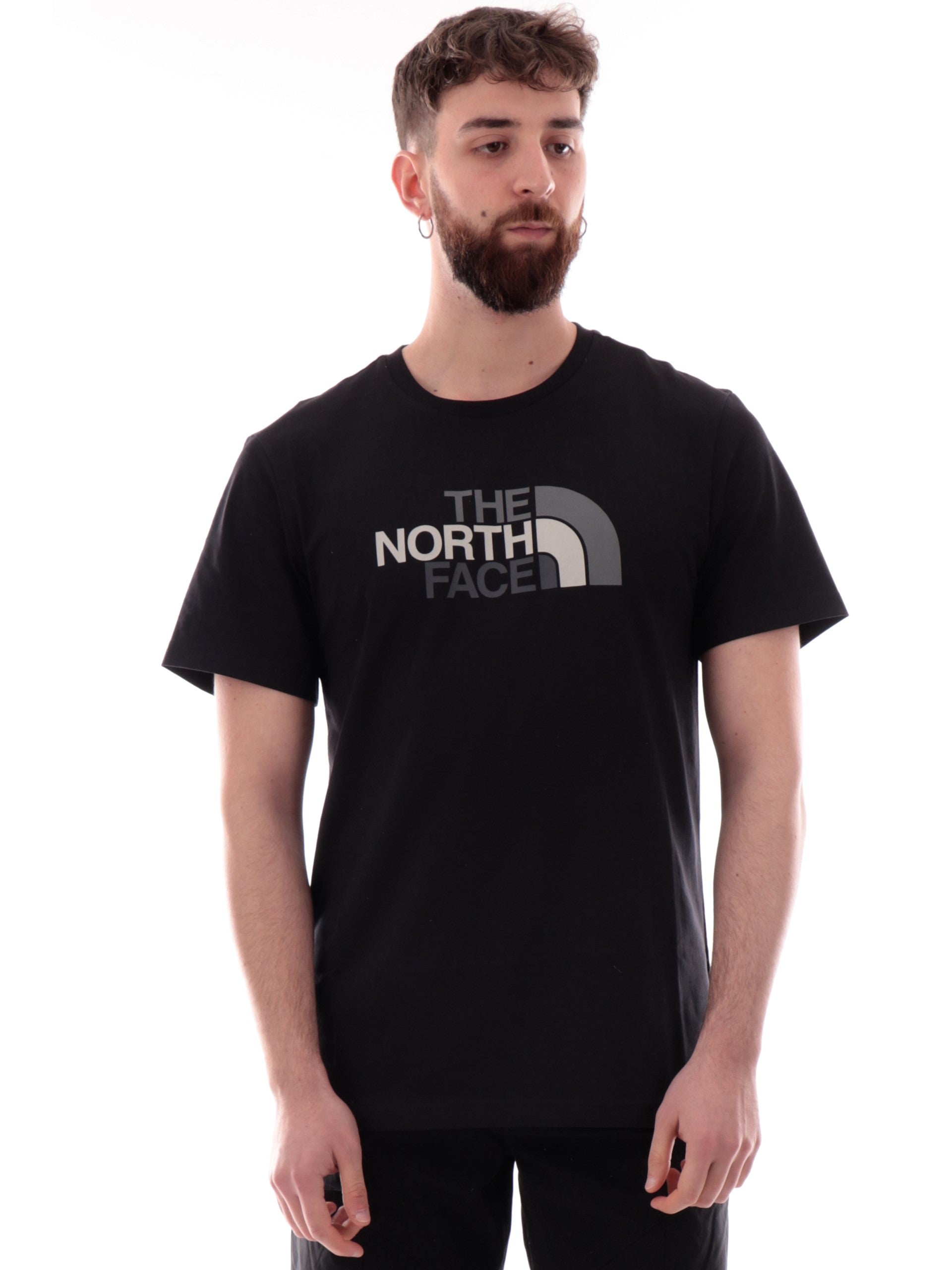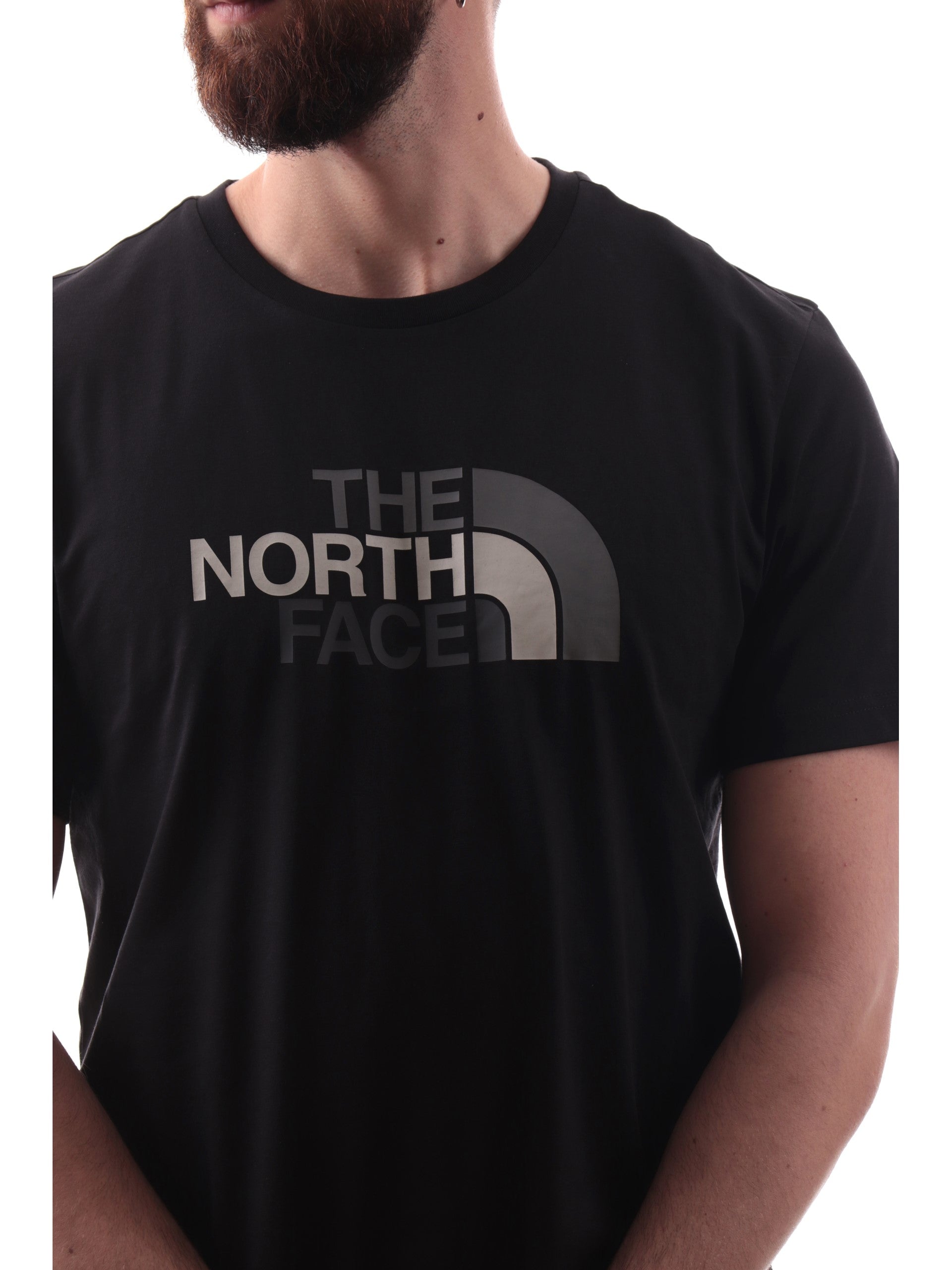 T-shirt North Face Easy Tee nera girocollo da uomo logo North Face stampato NF0A8A6C