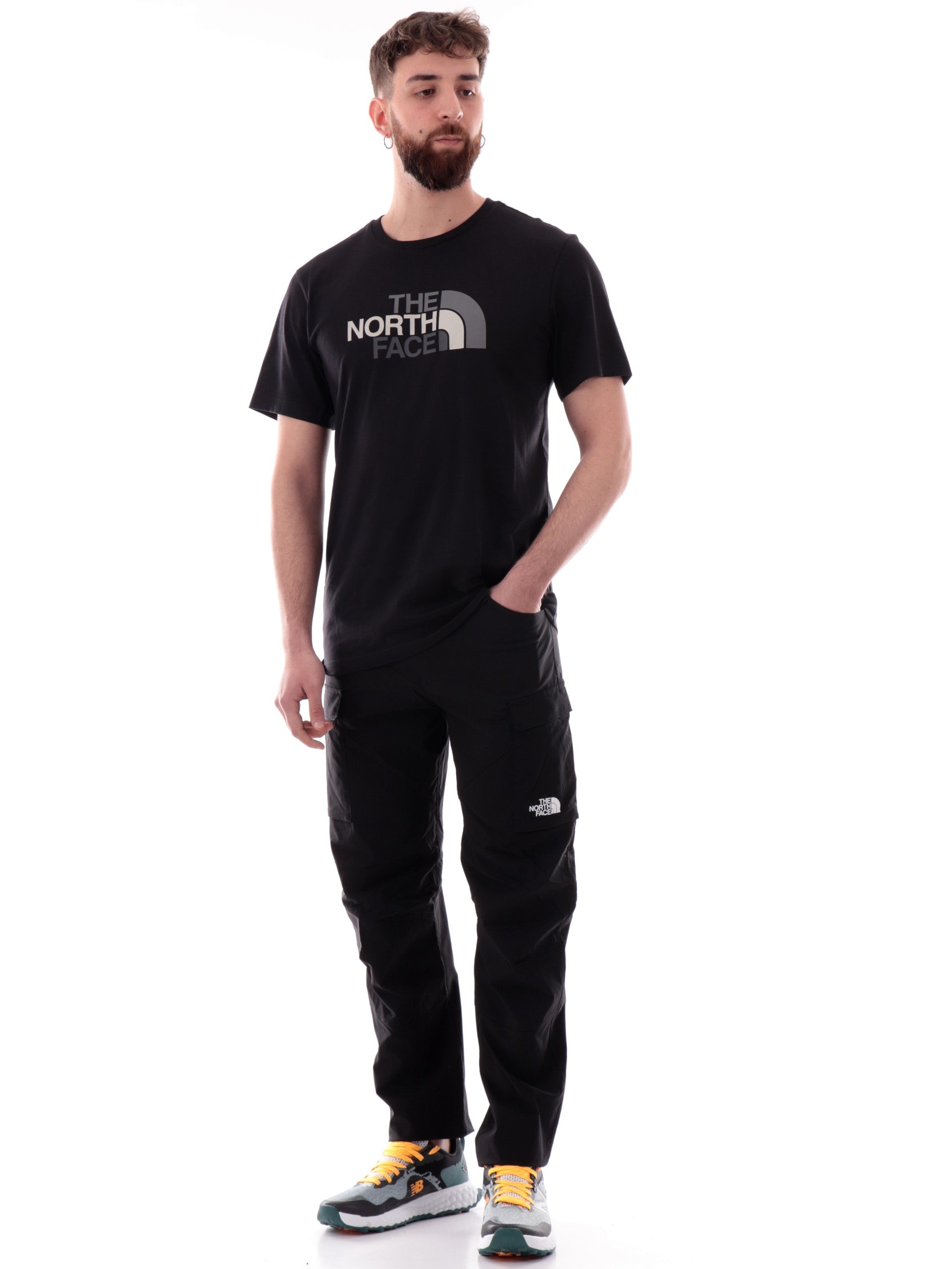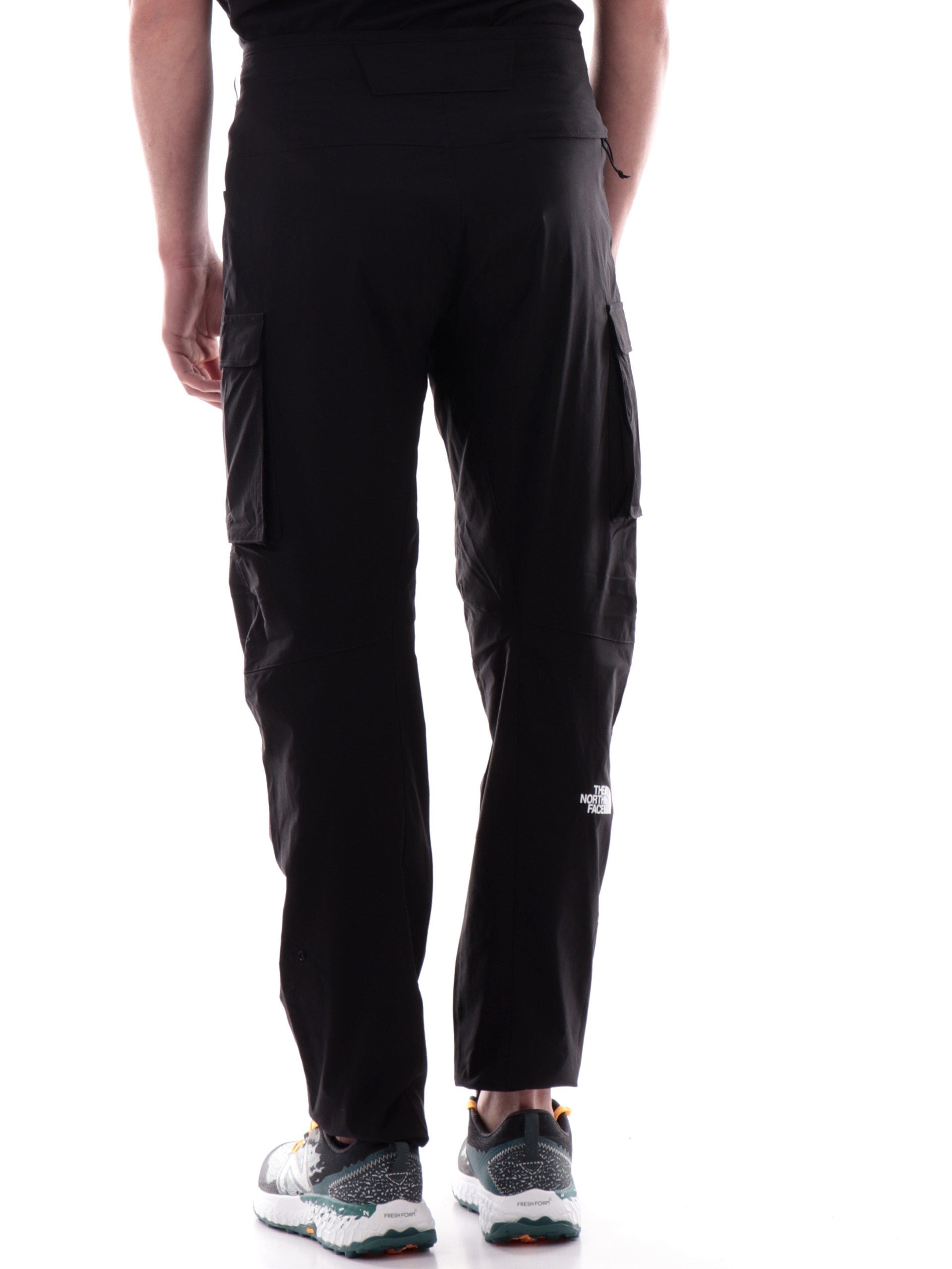 Pantaloni trekking The North Face cargo neri da uomo Exploration NF0A8BGF, realizzati in tessuto tecnico. Questi pantaloni montagna North Face hanno la chiusura con bottone automatico più zip, due tasche laterali, una tasca posteriore con zip, due tasconi altezza ginocchio e il logo North Face stampato a contrasto colore.