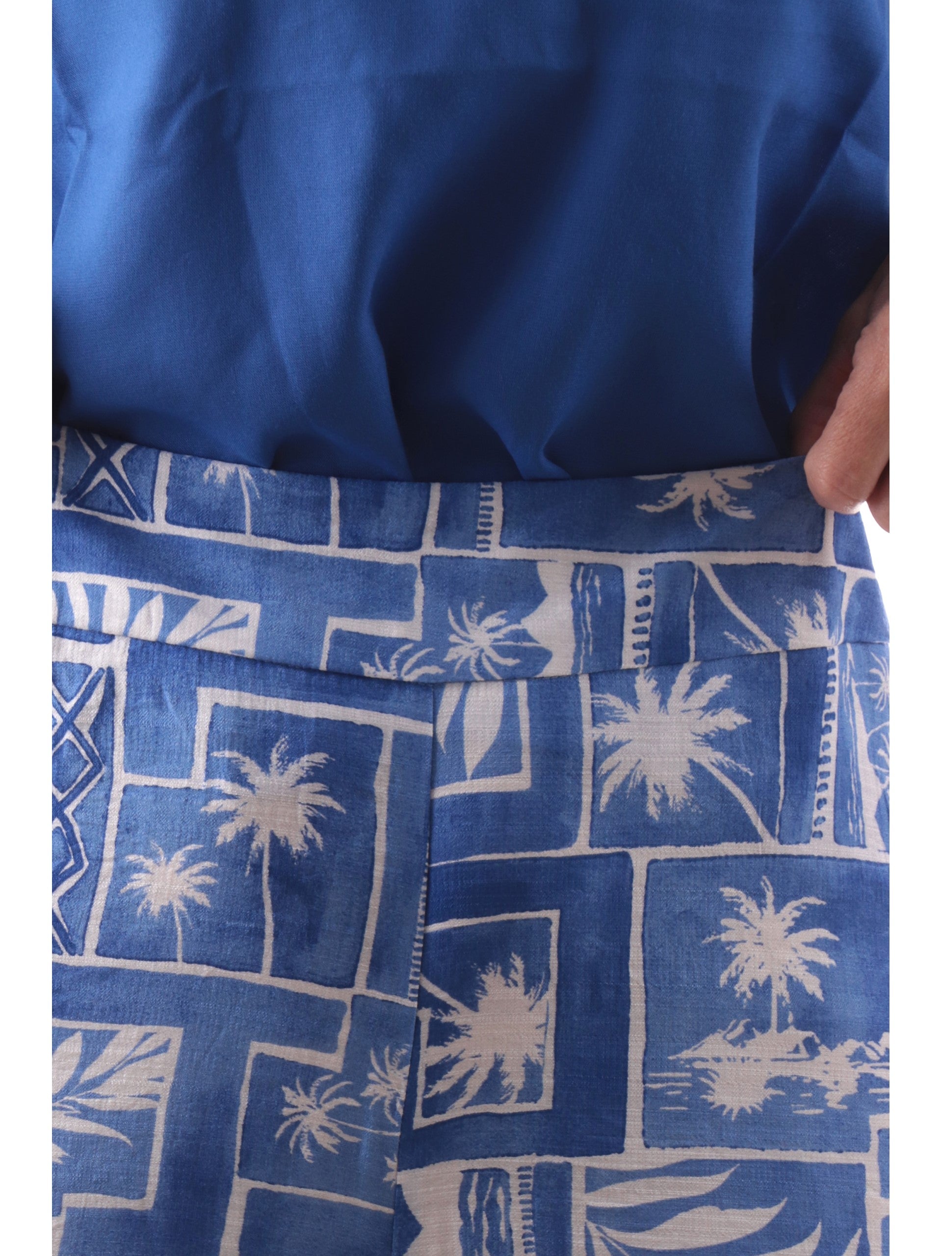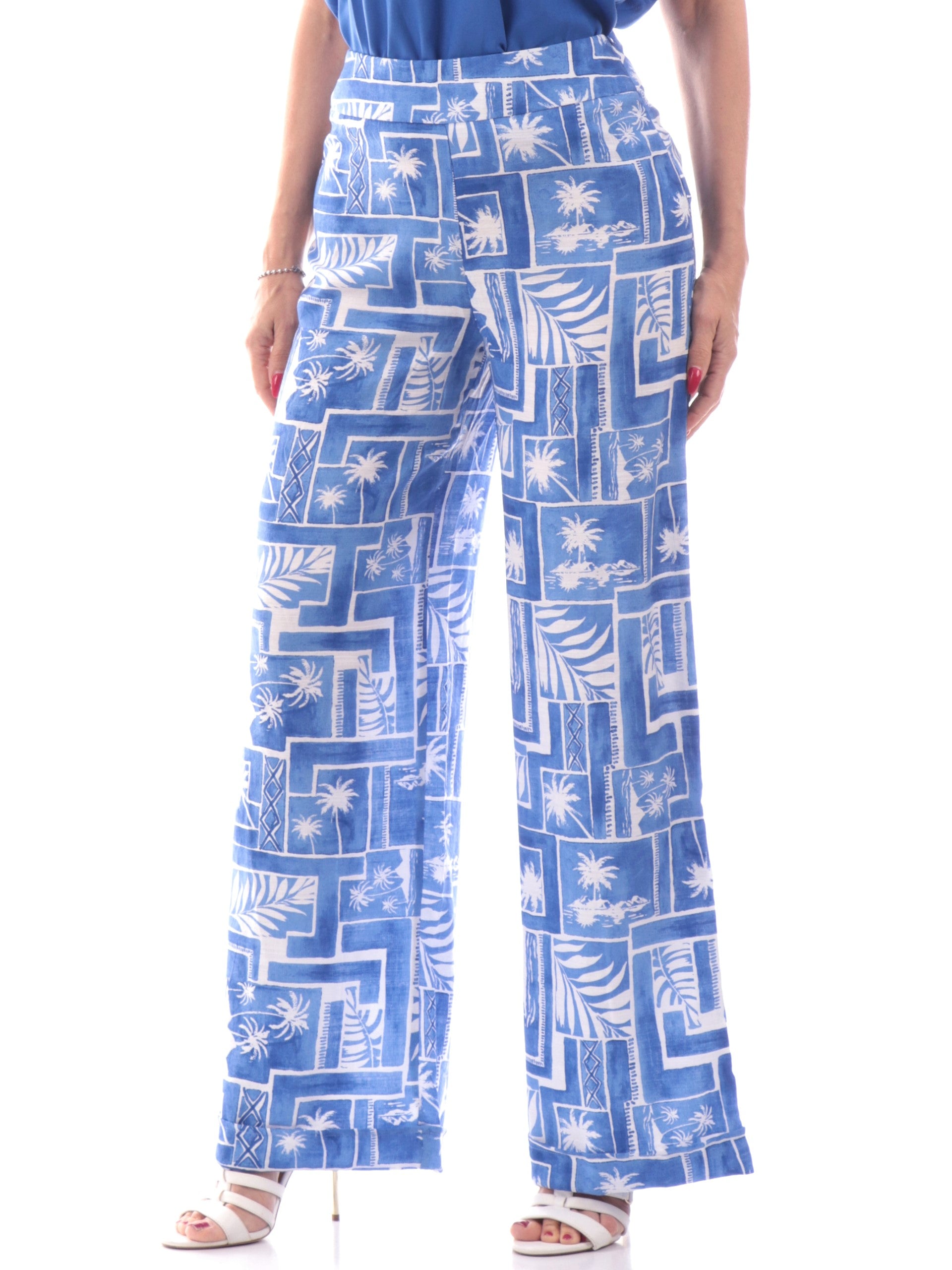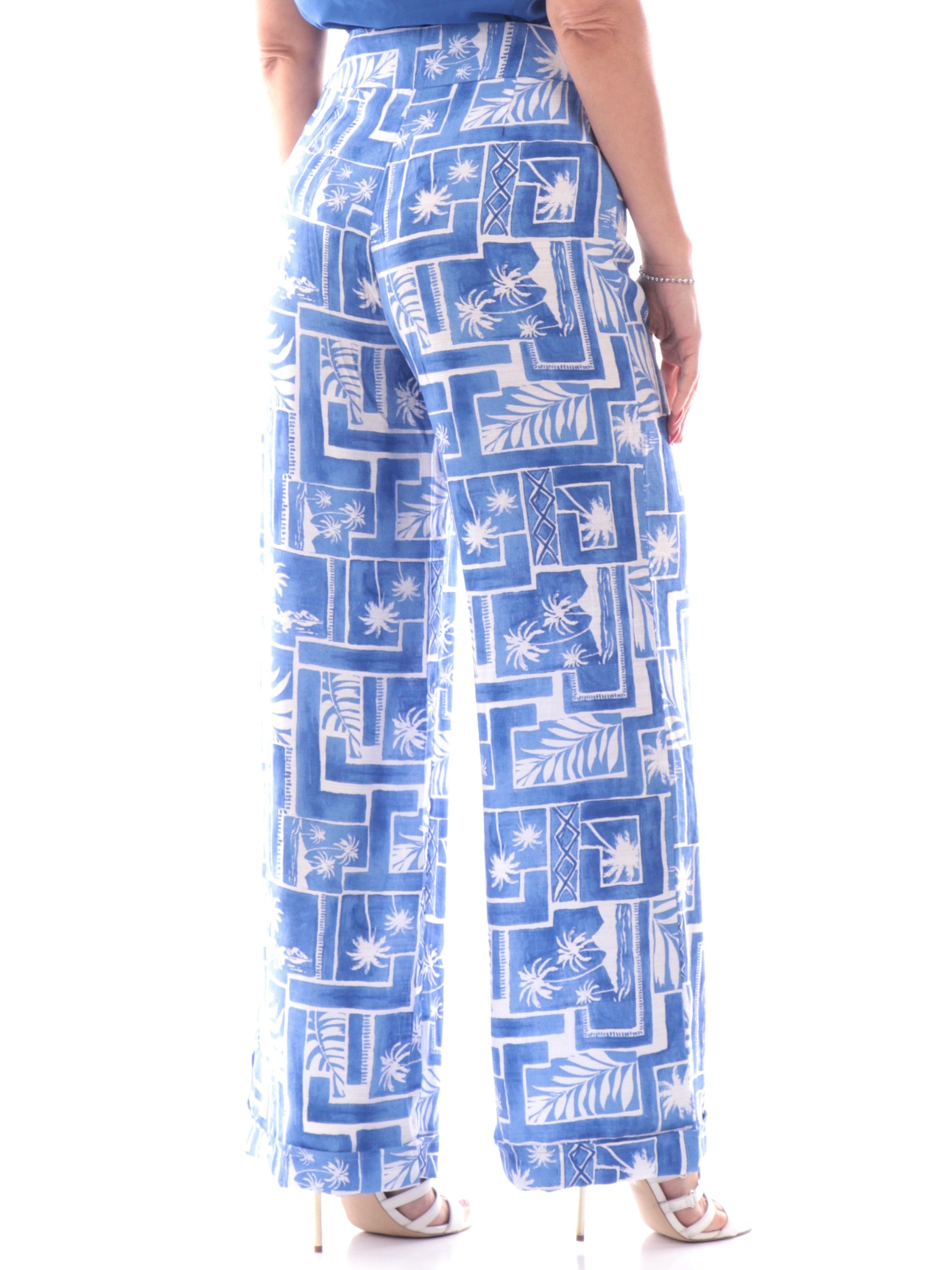 Pantaloni palazzo Tiffosi blu fantasia foulard da donna vita alta Positano 3B 10059995