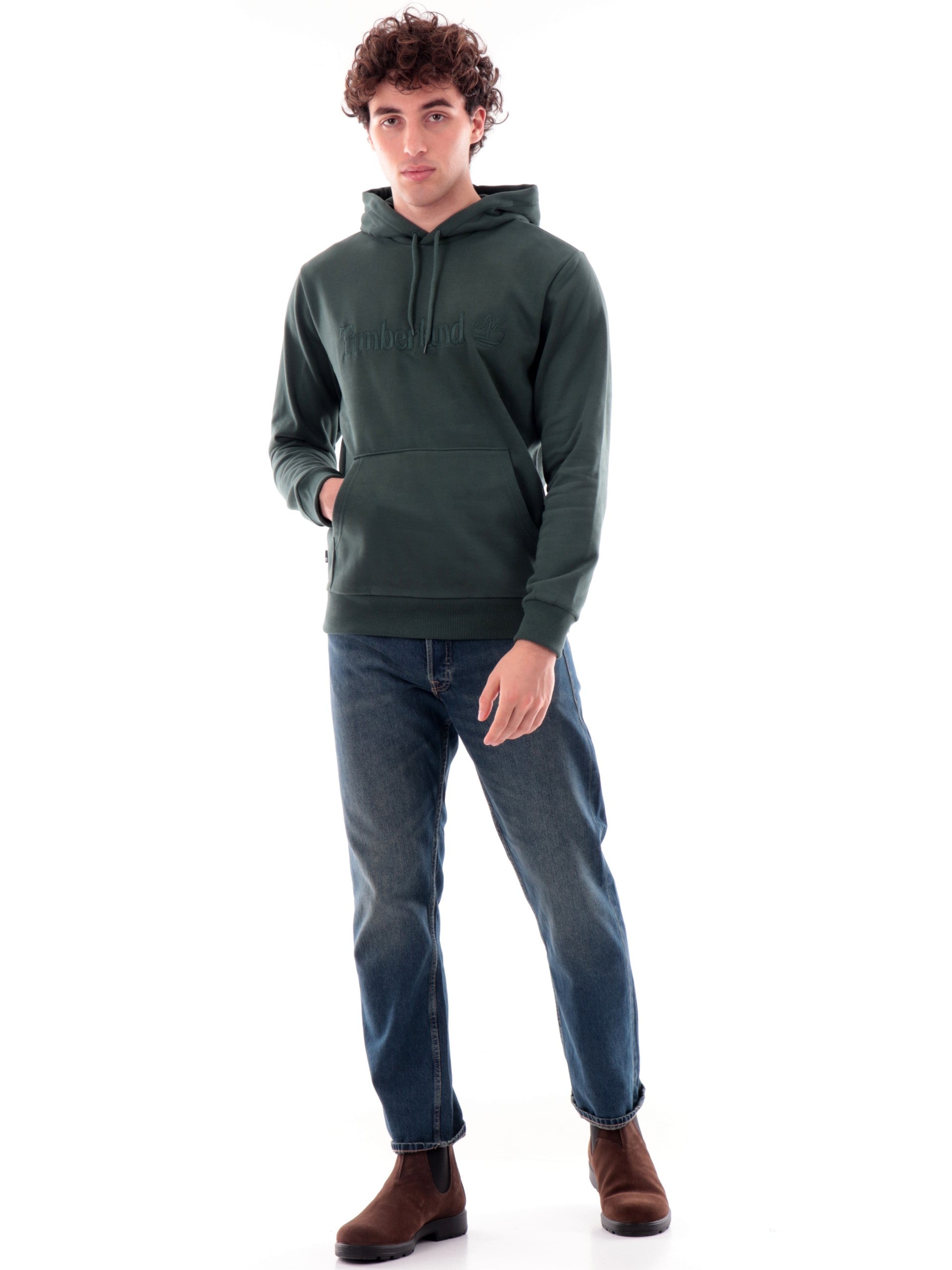 Felpa Timberland verde con cappuccio da uomo felpata Hampthon TB0A6VFJ, realizzata in cotone. Questa felpa uomo Timberland verde ha il cappuccio fisso regolabile con laccetti, una comoda tasca a marsupio, il maxi logo Timberland ricamato sul davanti, polsini e fondo elasticizzati.