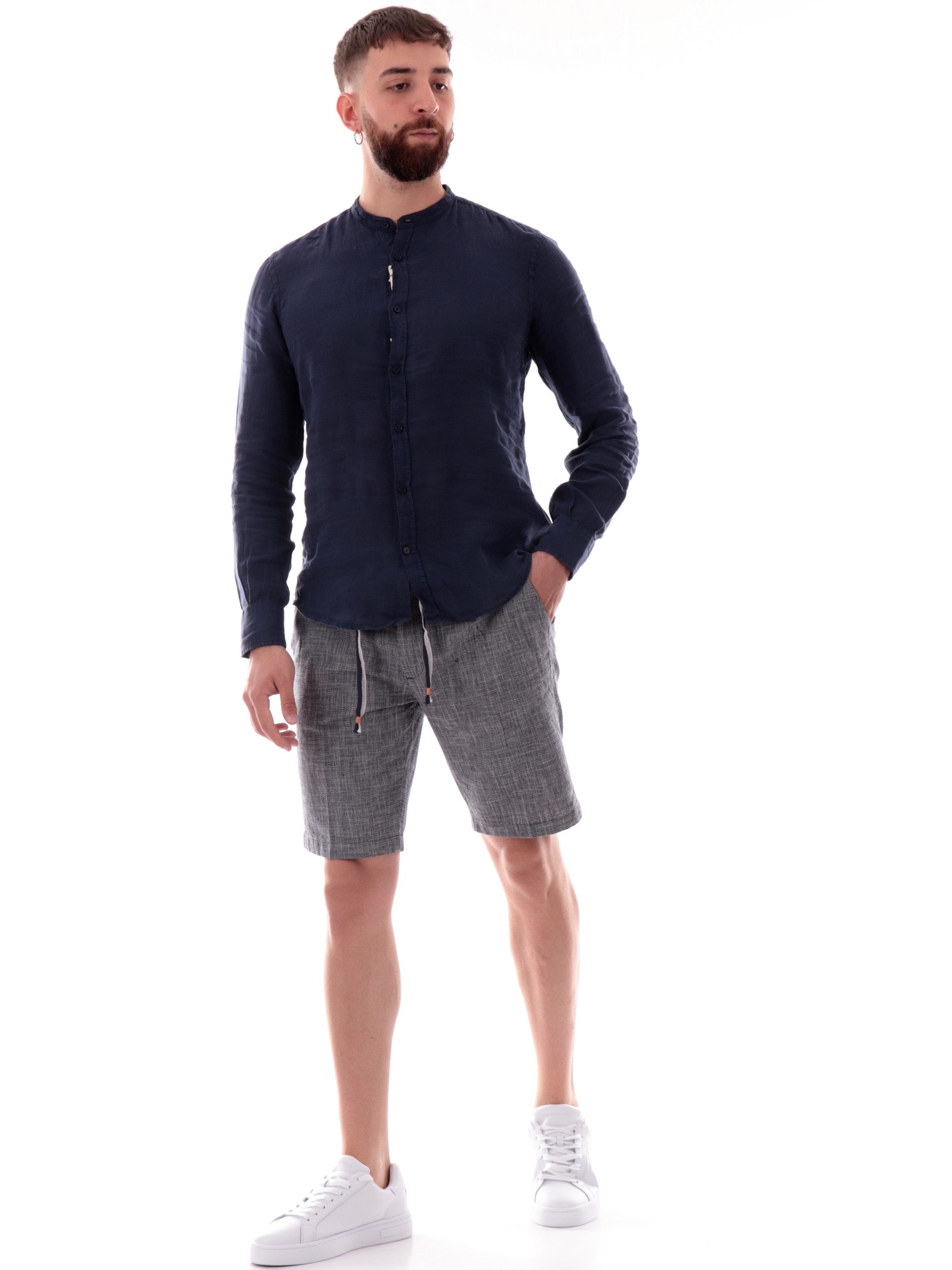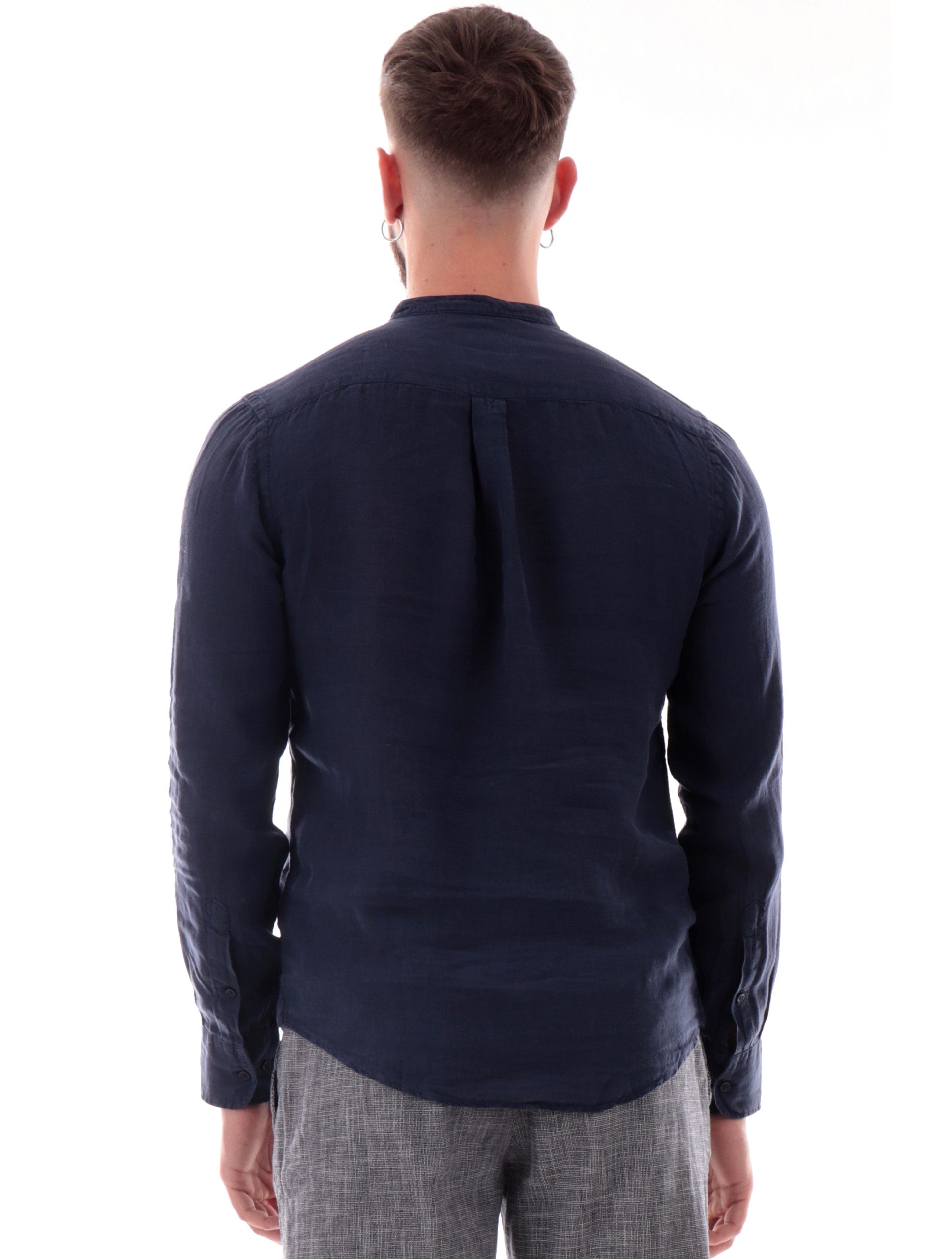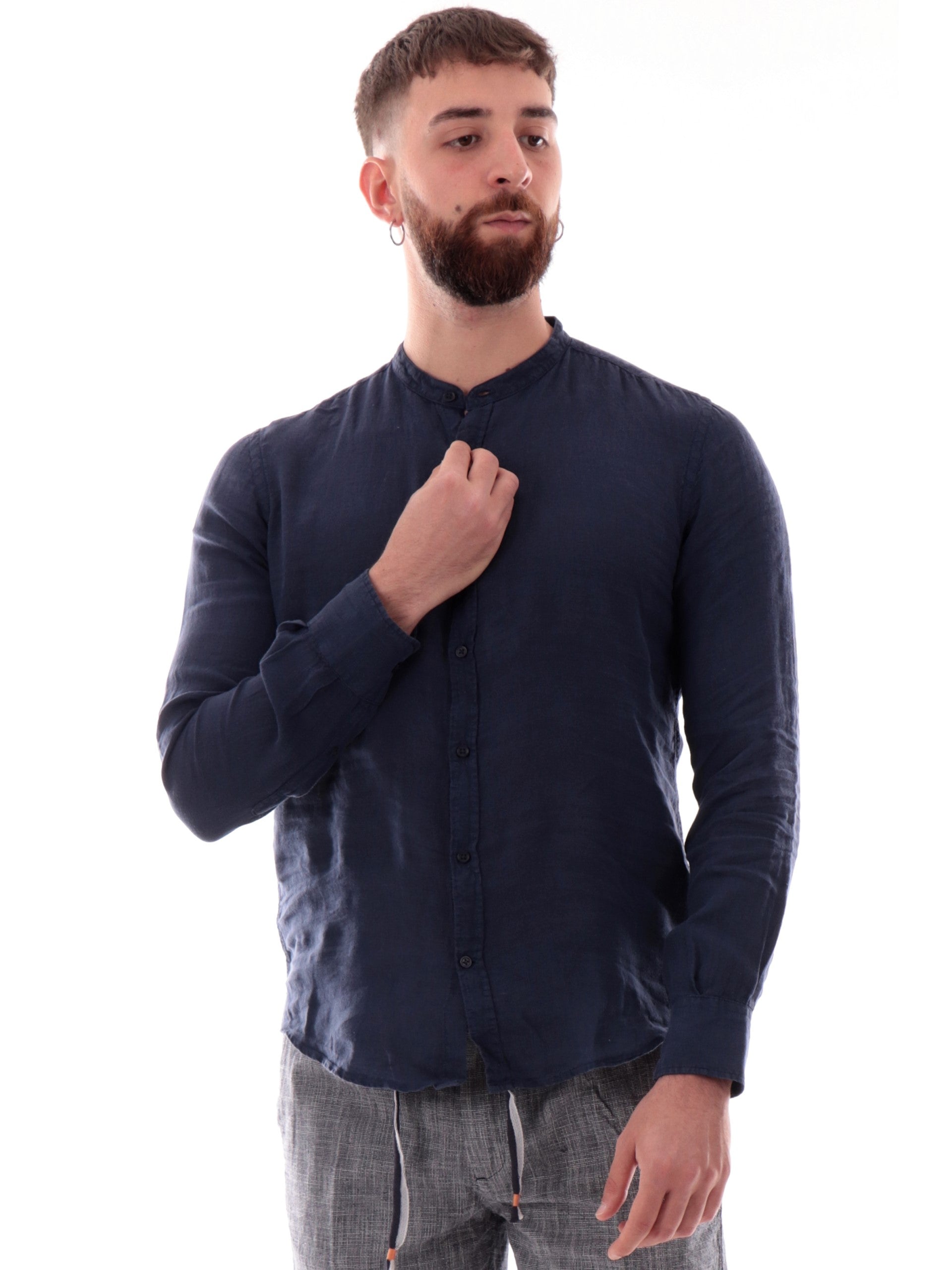 Camicia lino coreana Borghese blu da uomo in lino 5SCA0209LI101