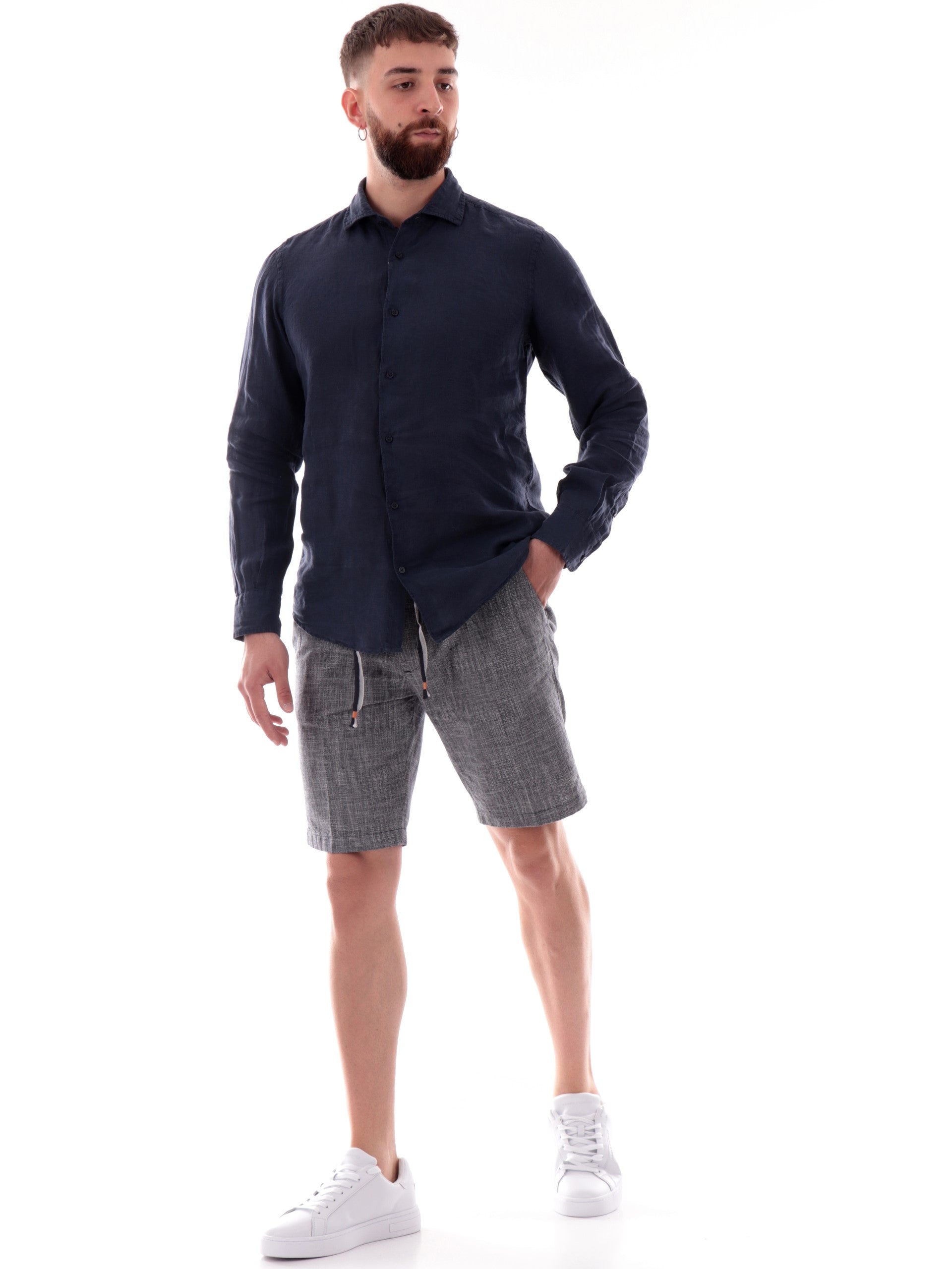 Camicia uomo Lino Borghese blu 5SCA0109LI101-MN