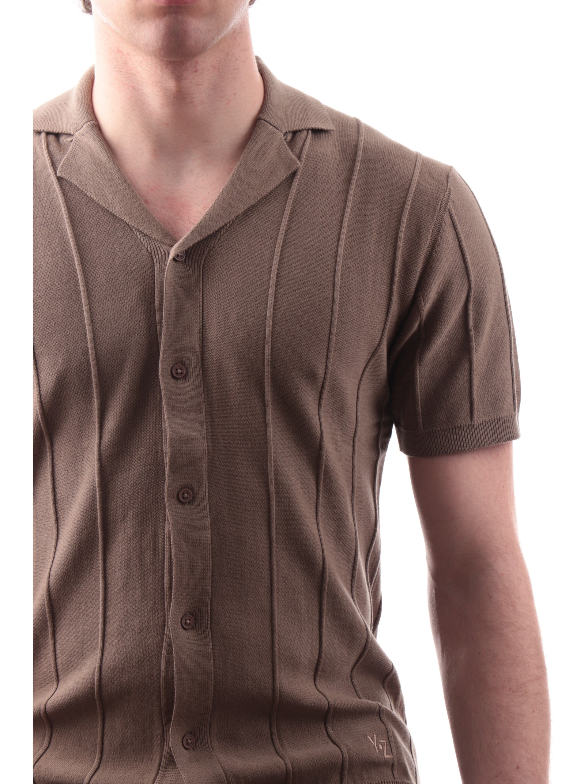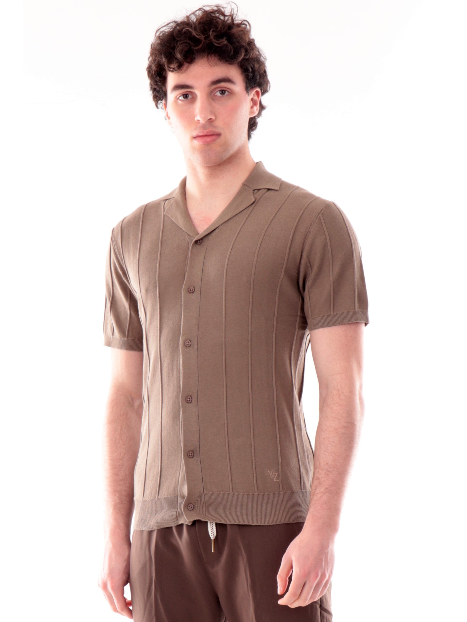 Camicia verde in maglia maniche corte da uomo scollo a V Yes Zee Bowling C713H5000209